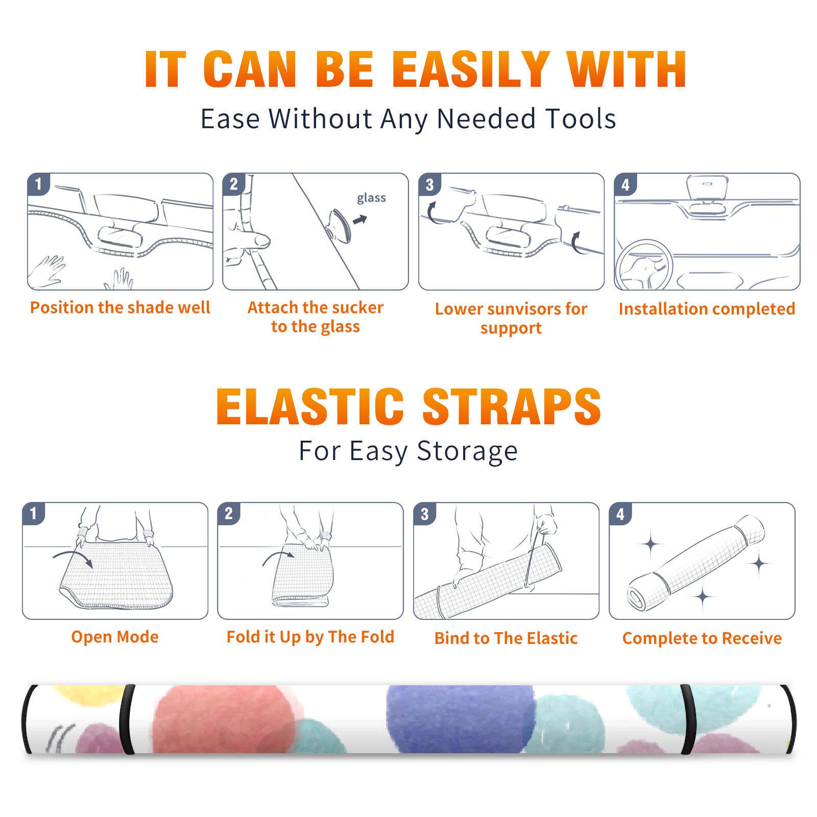 • Diameter /Size 63"L x 33.5"W Made from excellent materials which makes it sturdy and protects the car from the sun. Easy to use and pack. Makes the interior of the car cooler.You can easily stash the sunshade in the storage bag or store long term.It open and closes easy. Also the leather storage bag is durable and easy to put the umbrella back into.This windshield sunshade provides complete coverage and keeps your car interior cool under direct sun. It is easy to open and position under the windshield and around the rear-view mirror. Makes Your Car Easy To Identify, Perfect For Finding Your Car In Crowded Parking Lots And Garages.Great Choice: It Is A Great Gift For Dad, Boyfriend, Brother, Brother And Uncle, Friends, Classmates, Family And So On. Notice: Due To Difference Computer Monitors, The Color Maybe Slightly Different From Picture. As Different Measurement Methods, Measurement Data Will Float Within 2%.I Hope You Understand. If You Have Any Question About The Item Please Do Not Hesitate To Contact Us Immediately And We Will Give You A Satisfactory Reply Within 24 Hours.