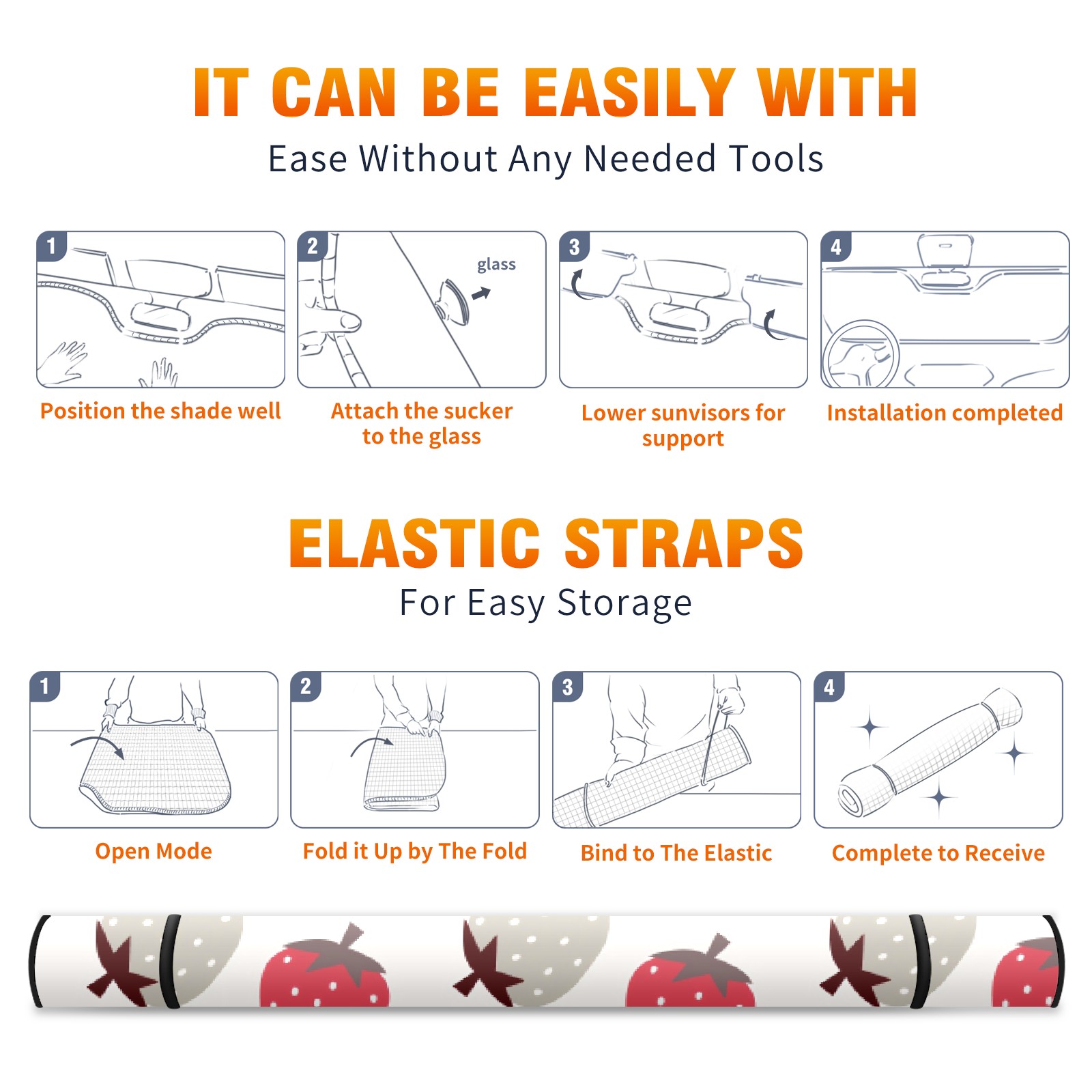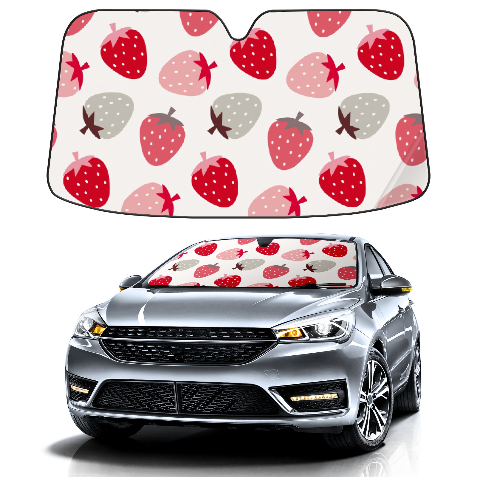 Car Windshield Sun Shade For Front Window Tricolor Strawberry Foldable Vehicle Windshield Car Sun Visor Covers Automotive Window Protector Car Camping Privacy Sun Blocker
