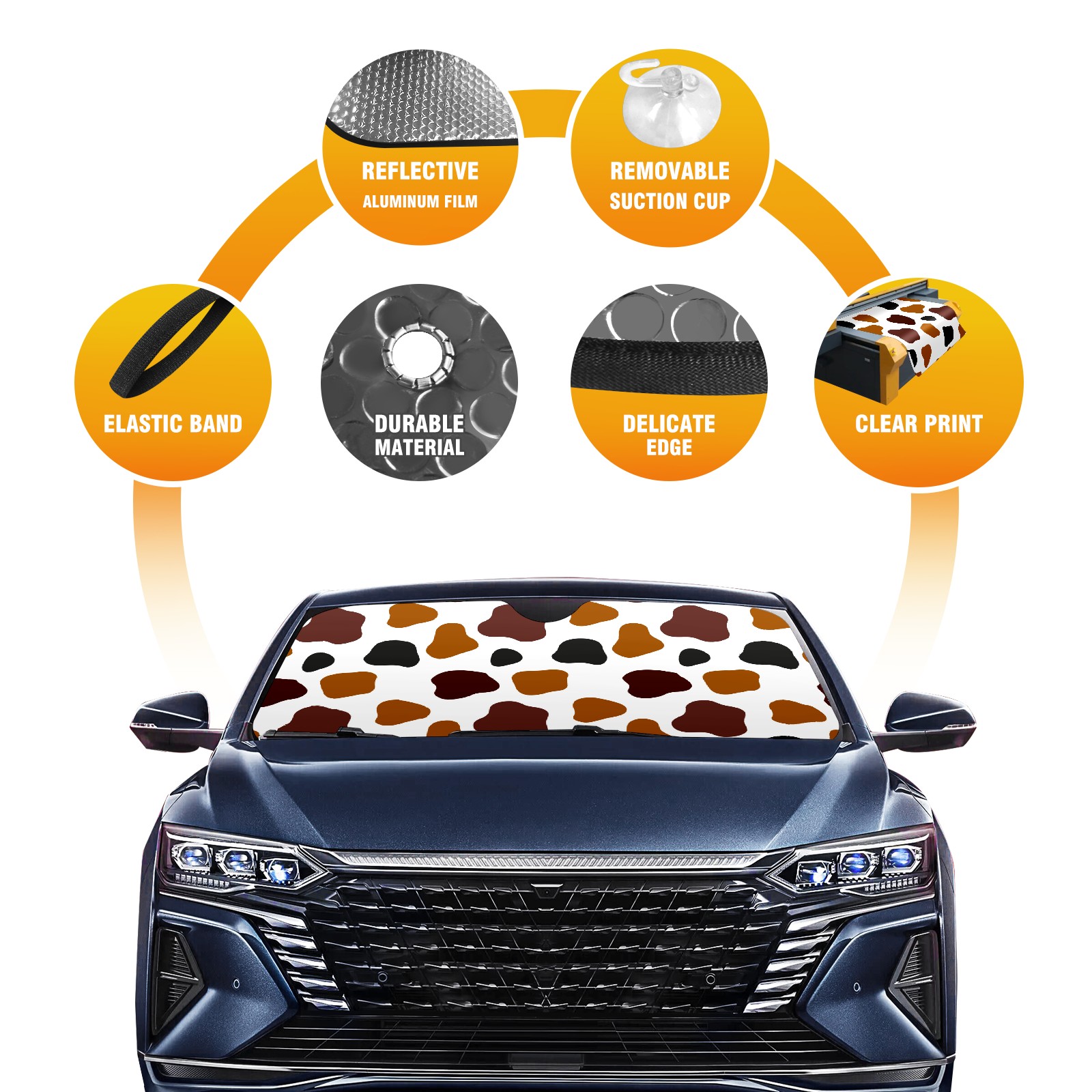 Car Windshield Sun Shade For Front Window Brown Black Cow Print Foldable Vehicle Windshield Car Sun Visor Covers Automotive Window Protector Car Camping Privacy Sun Blocker