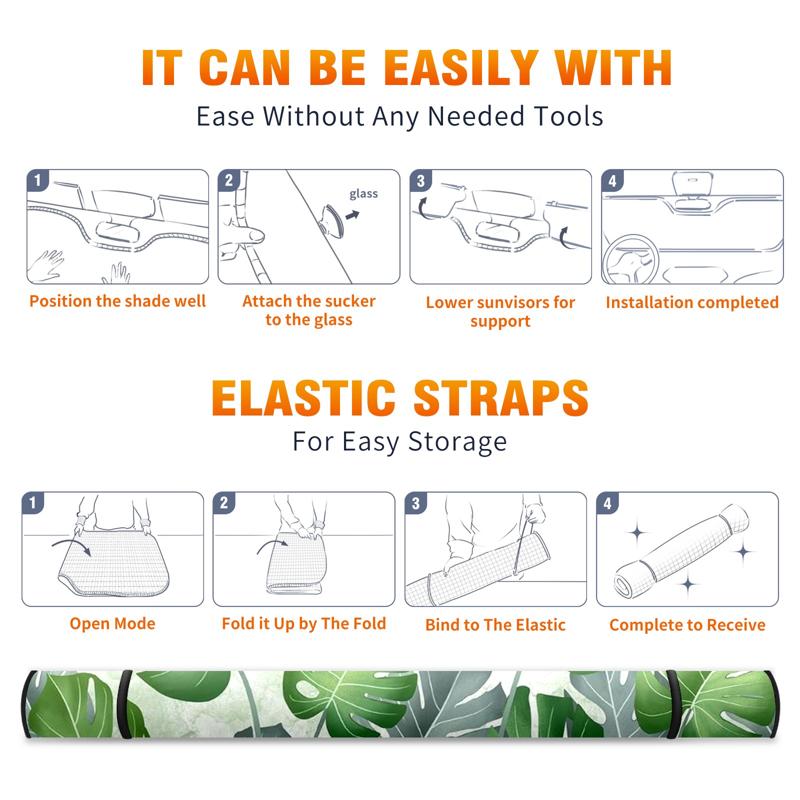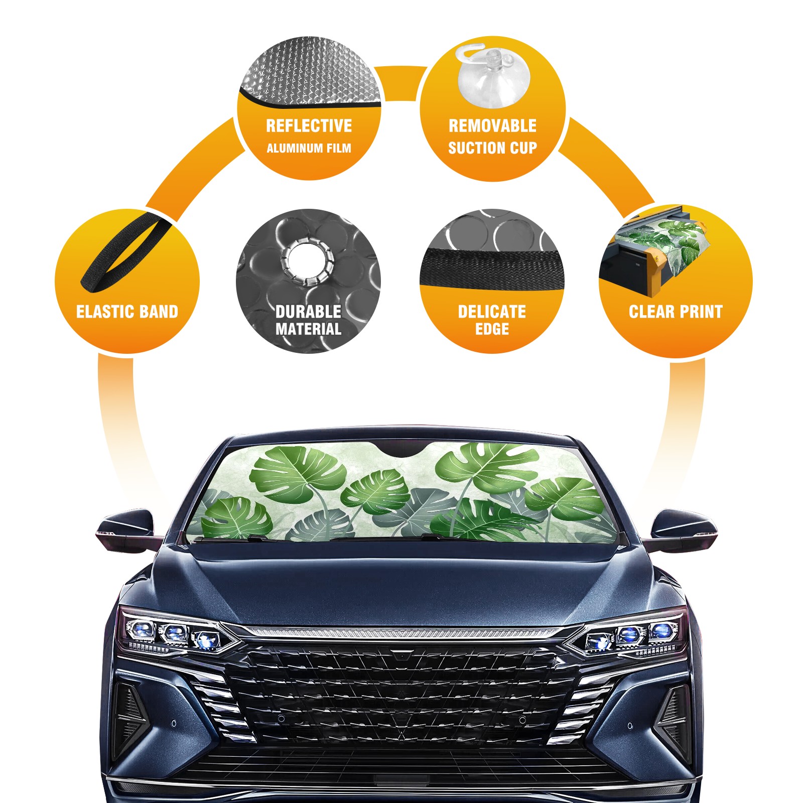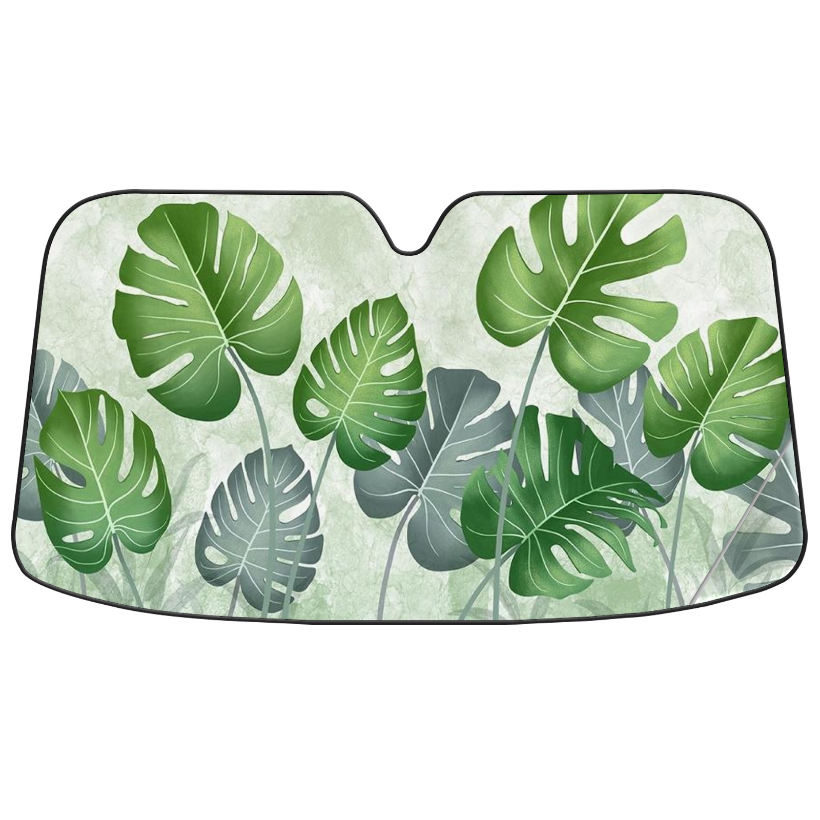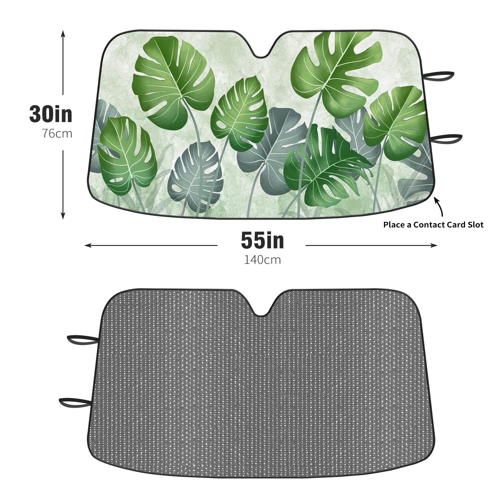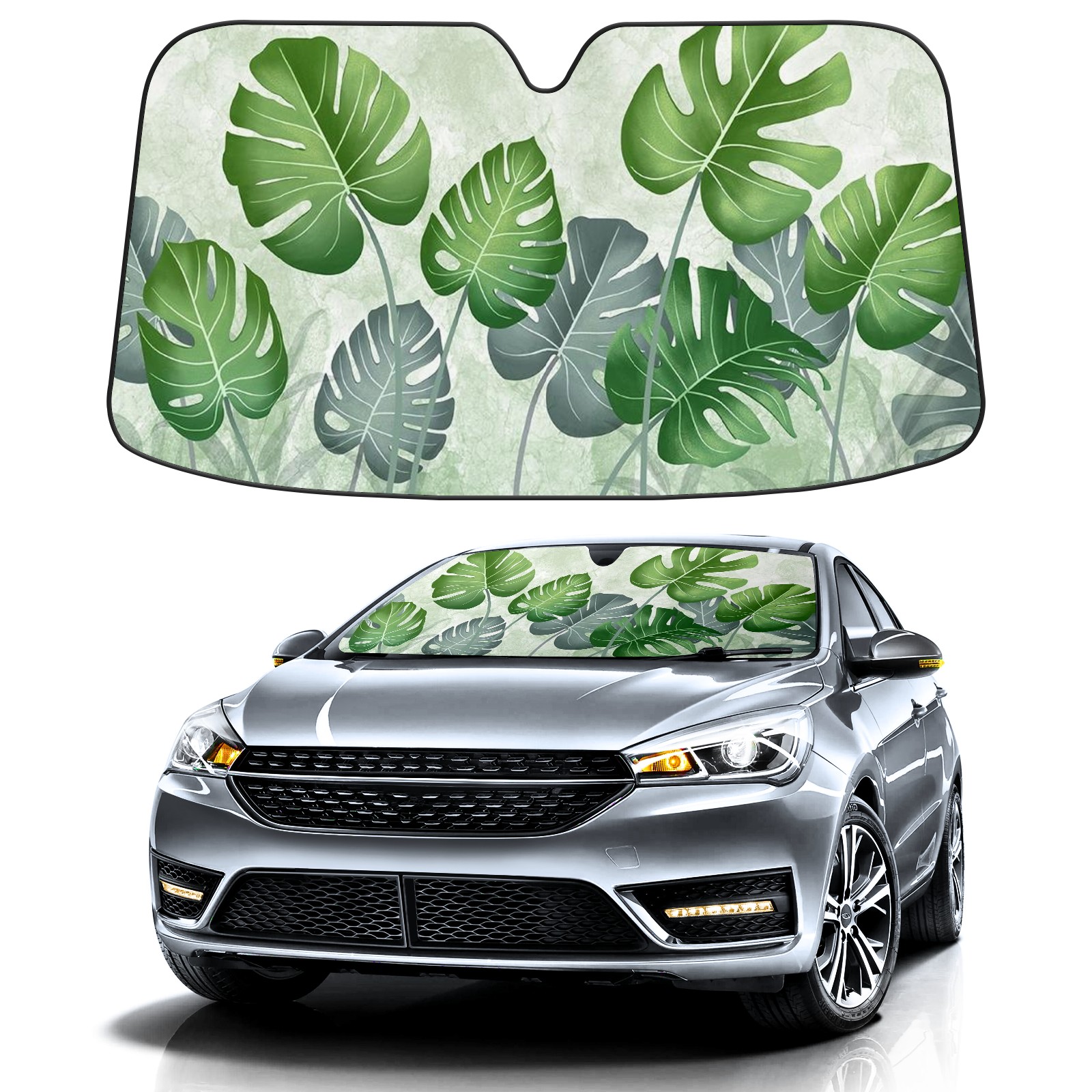 Car Windshield Sun Shade For Front Window Tropical Leaf Foldable Vehicle Windshield Car Sun Visor Covers Automotive Window Protector Car Camping Privacy Sun Blocker