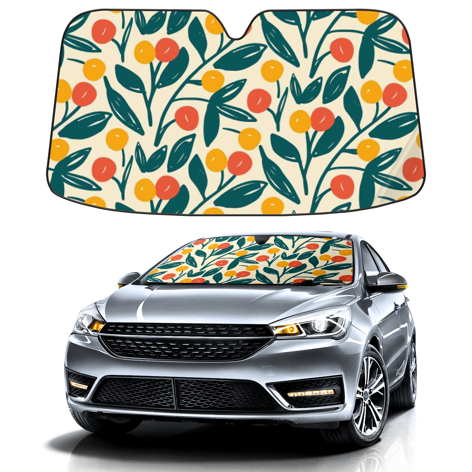 Car Windshield Sun Shade For Front Window Plant Orange Foldable Vehicle Windshield Car Sun Visor Covers Automotive Window Protector Car Camping Privacy Sun Blocker