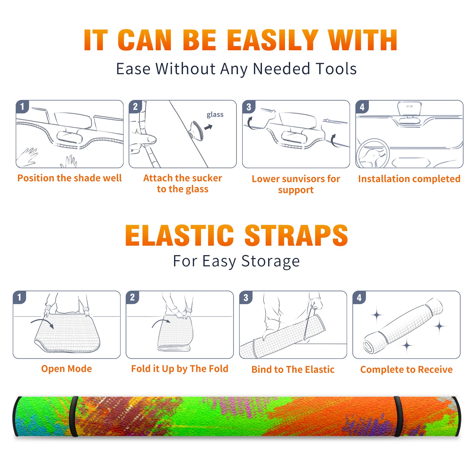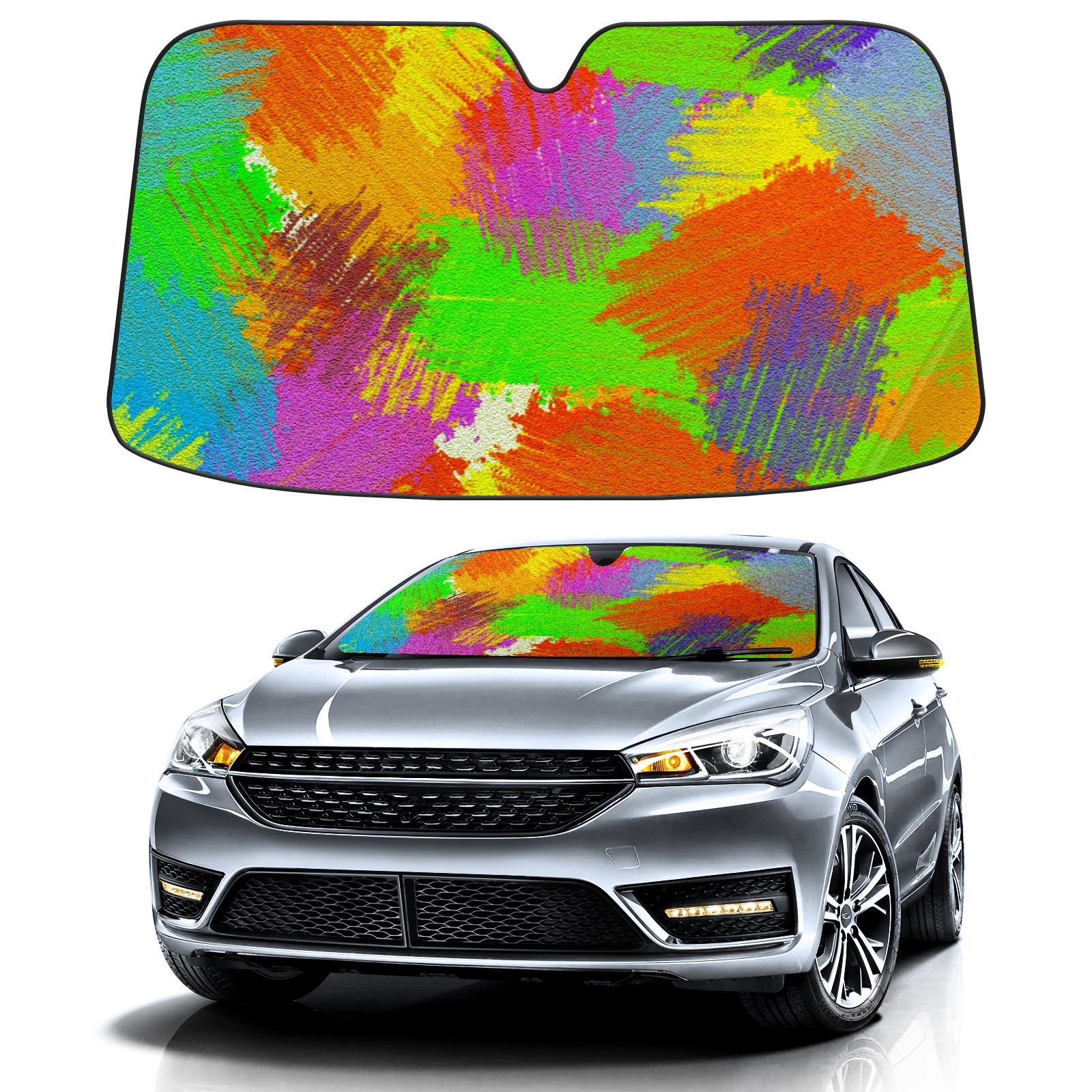 Car Windshield Sun Shade For Front Window Color Splash Foldable Vehicle Windshield Car Sun Visor Covers Automotive Window Protector Car Camping Privacy Sun Blocker
