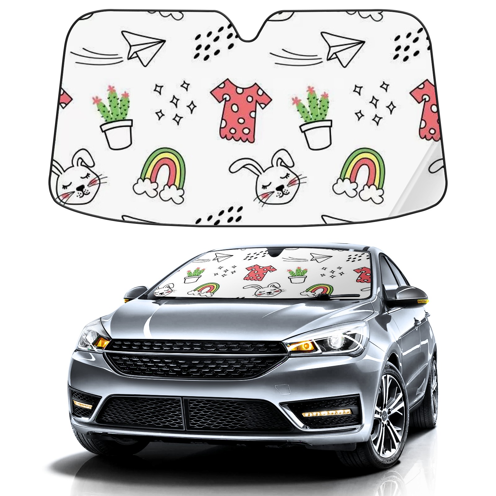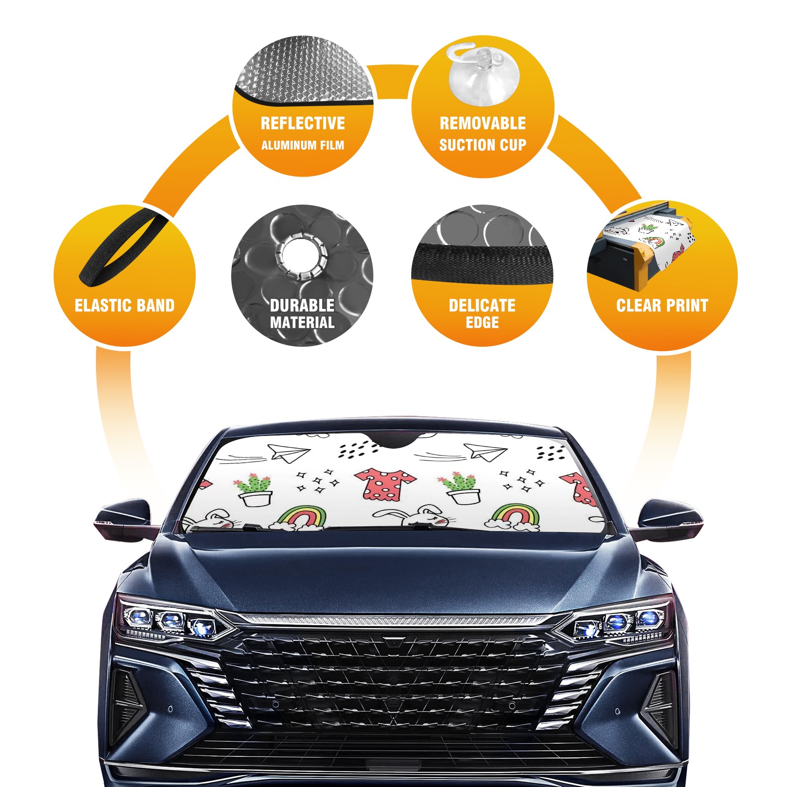 Car Windshield Sun Shade For Front Window Printed Image Foldable Vehicle Windshield Car Sun Visor Covers Automotive Window Protector Car Camping Privacy Sun Blocker