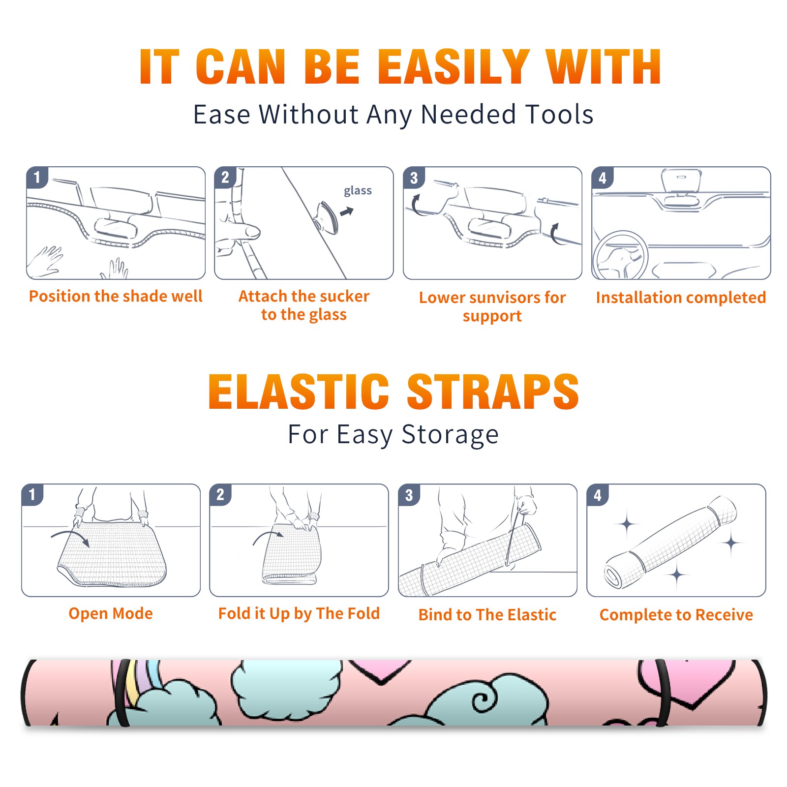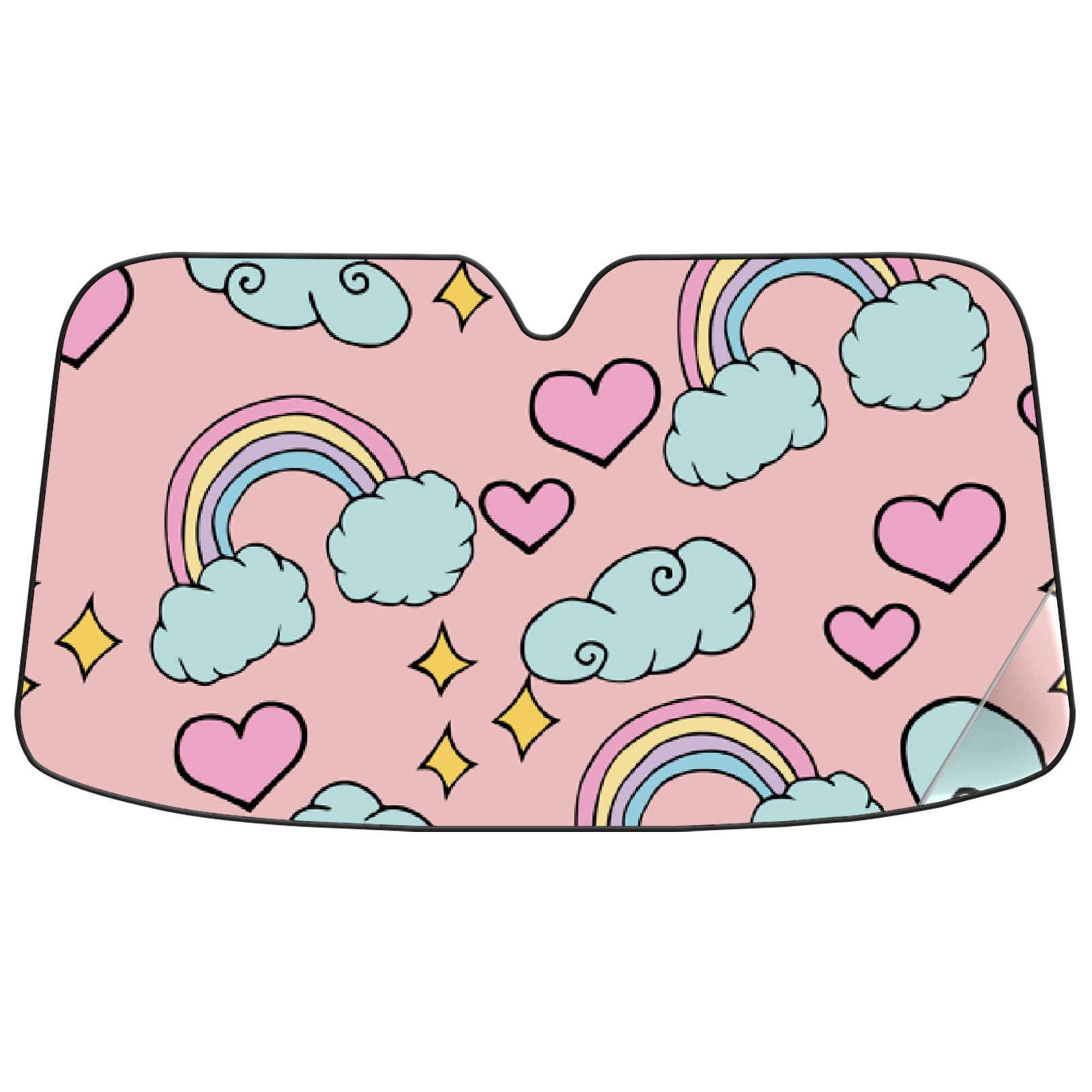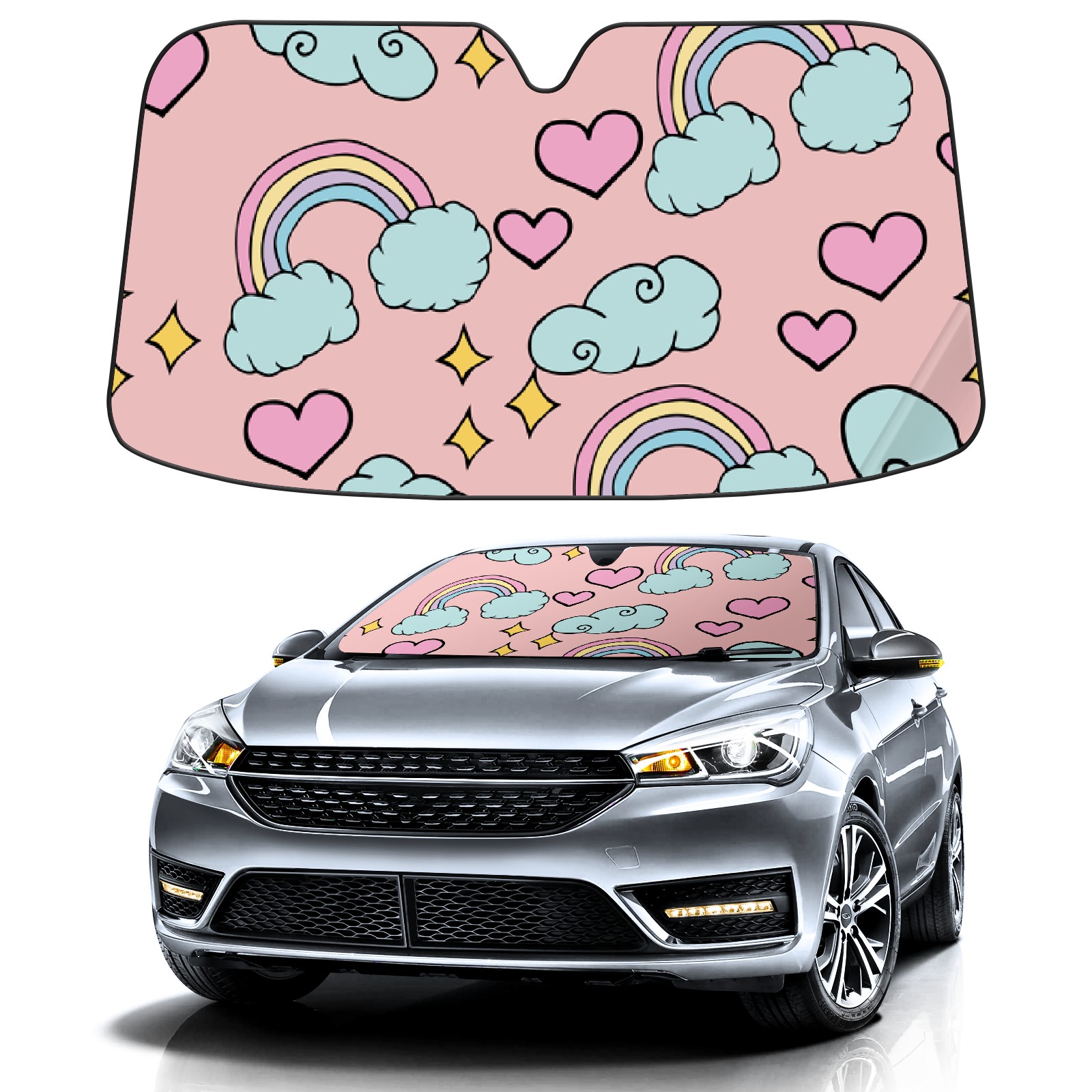 Car Windshield Sun Shade For Front Window Rainbow Heart Star Foldable Vehicle Windshield Car Sun Visor Covers Automotive Window Protector Car Camping Privacy Sun Blocker