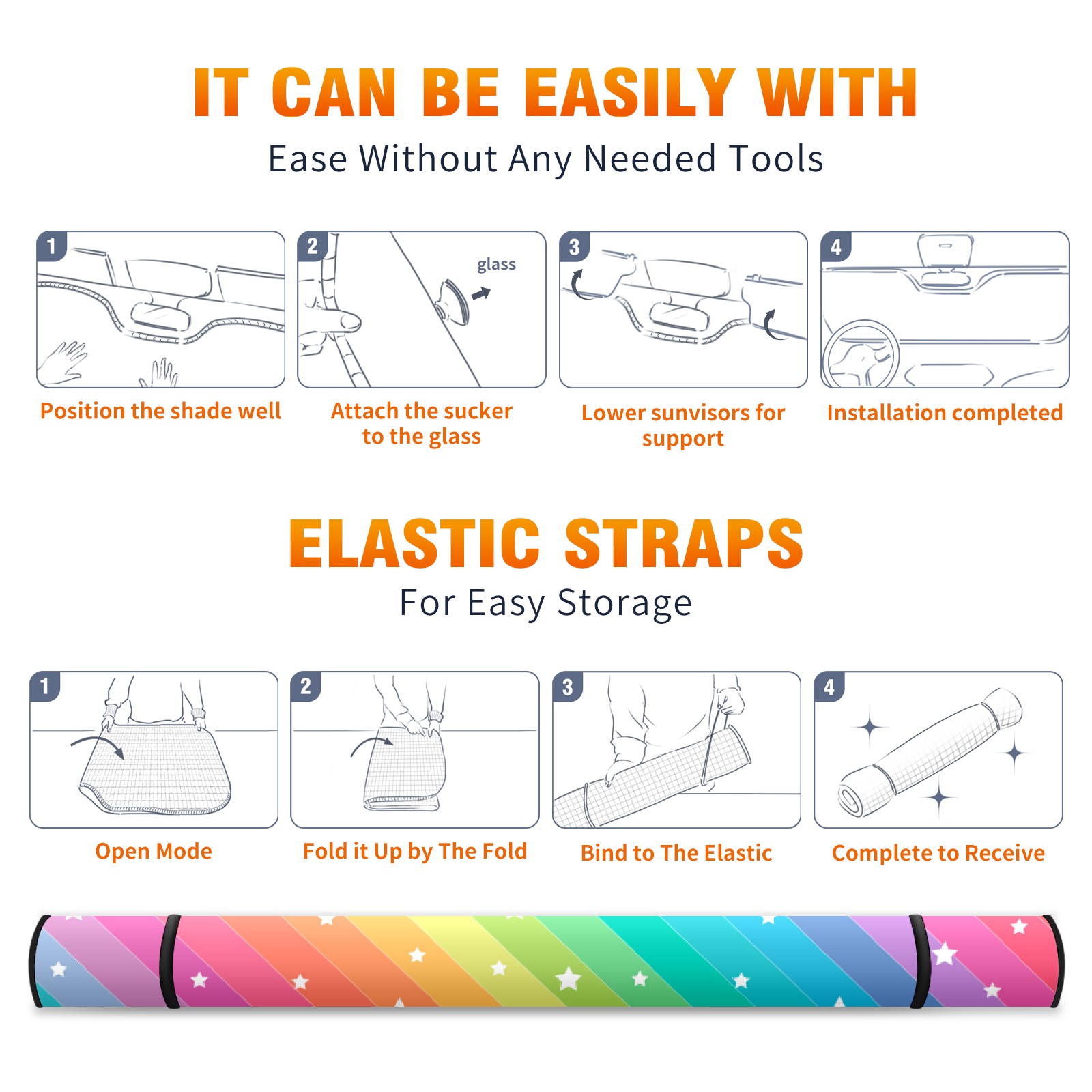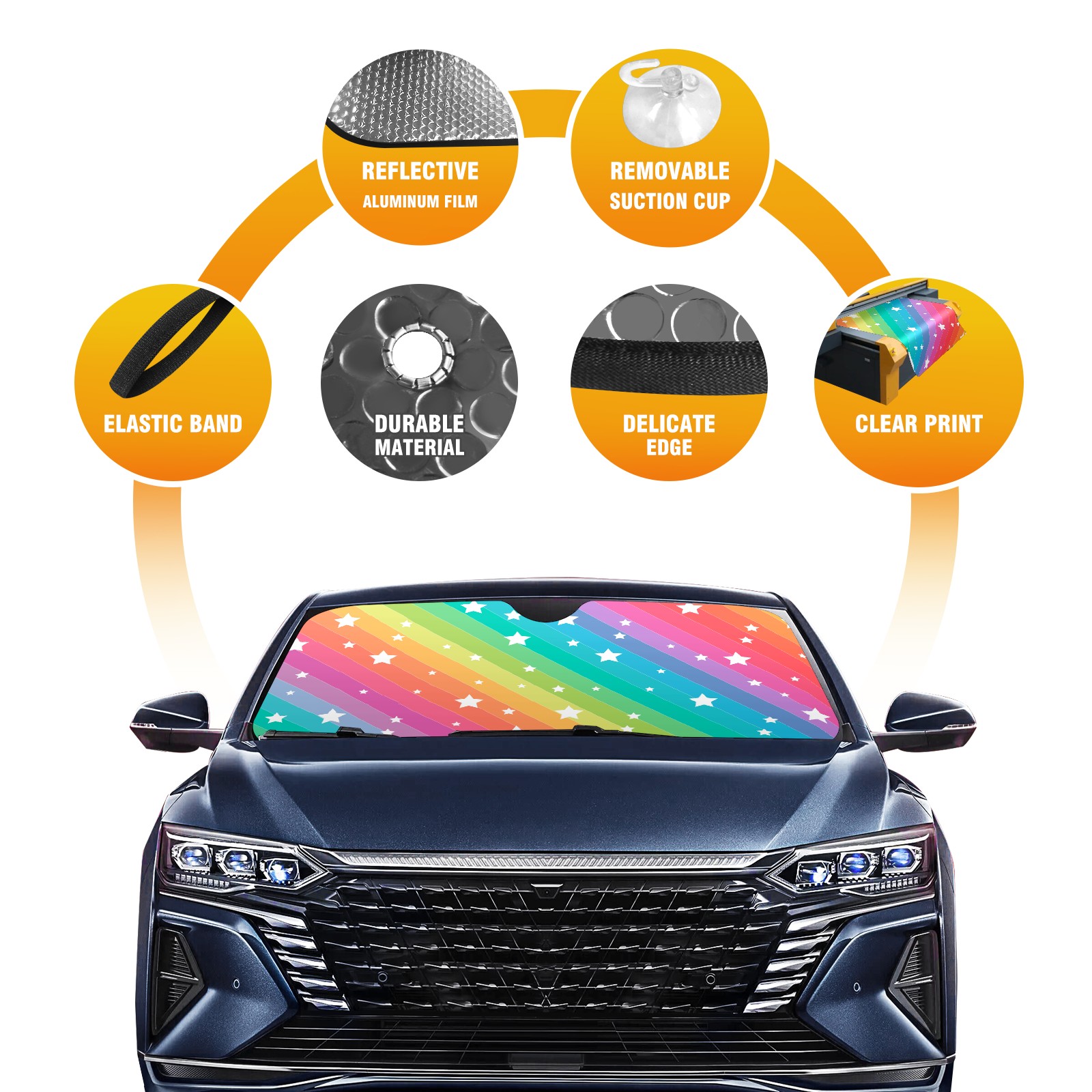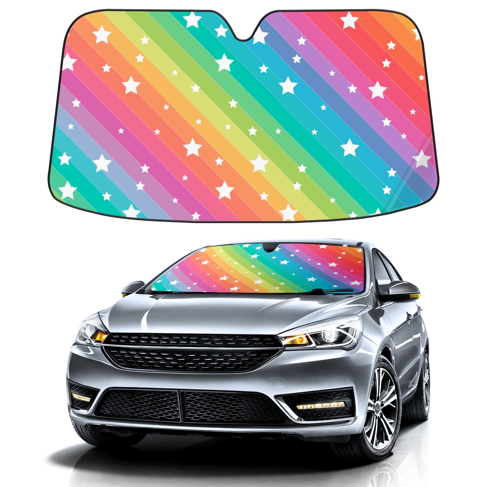 Car Windshield Sun Shade For Front Window Rainbow Star Foldable Vehicle Windshield Car Sun Visor Covers Automotive Window Protector Car Camping Privacy Sun Blocker