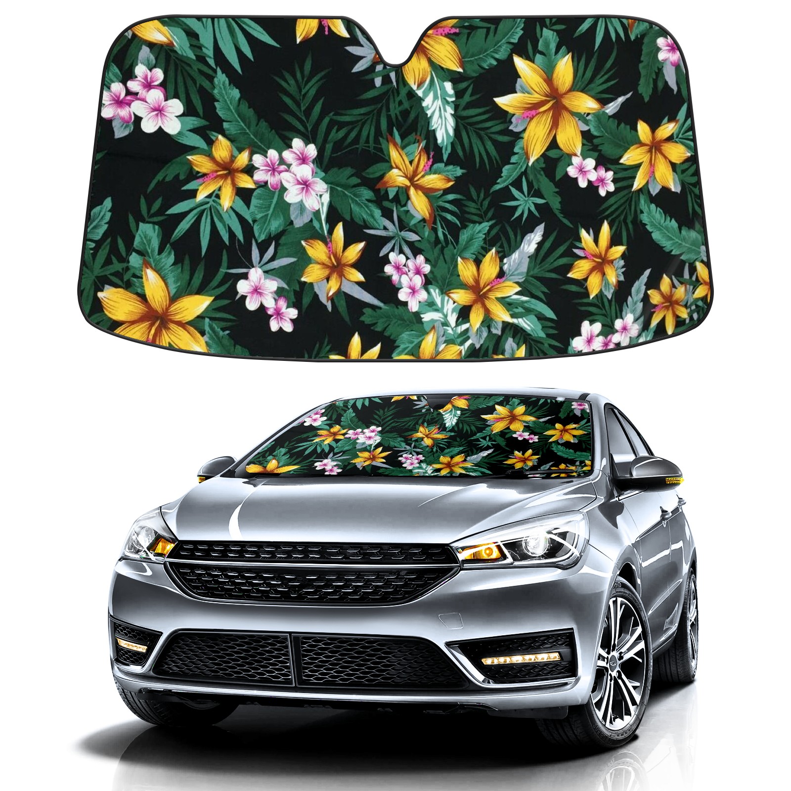 Car Windshield Sun Shade For Front Window Golden Pattern Foldable Vehicle Windshield Car Sun Visor Covers Automotive Window Protector Car Camping Privacy Sun Blocker