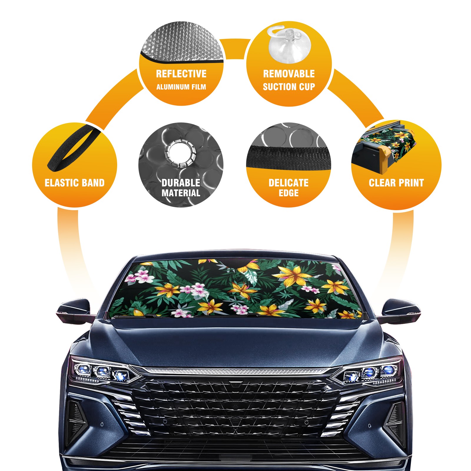 • Diameter /Size 63"L x 33.5"W Made from excellent materials which makes it sturdy and protects the car from the sun. Easy to use and pack. Makes the interior of the car cooler.You can easily stash the sunshade in the storage bag or store long term.It open and closes easy. Also the leather storage bag is durable and easy to put the umbrella back into.This windshield sunshade provides complete coverage and keeps your car interior cool under direct sun. It is easy to open and position under the windshield and around the rear-view mirror. Makes Your Car Easy To Identify, Perfect For Finding Your Car In Crowded Parking Lots And Garages.Great Choice: It Is A Great Gift For Dad, Boyfriend, Brother, Brother And Uncle, Friends, Classmates, Family And So On. Notice: Due To Difference Computer Monitors, The Color Maybe Slightly Different From Picture. As Different Measurement Methods, Measurement Data Will Float Within 2%.I Hope You Understand. If You Have Any Question About The Item Please Do Not Hesitate To Contact Us Immediately And We Will Give You A Satisfactory Reply Within 24 Hours.