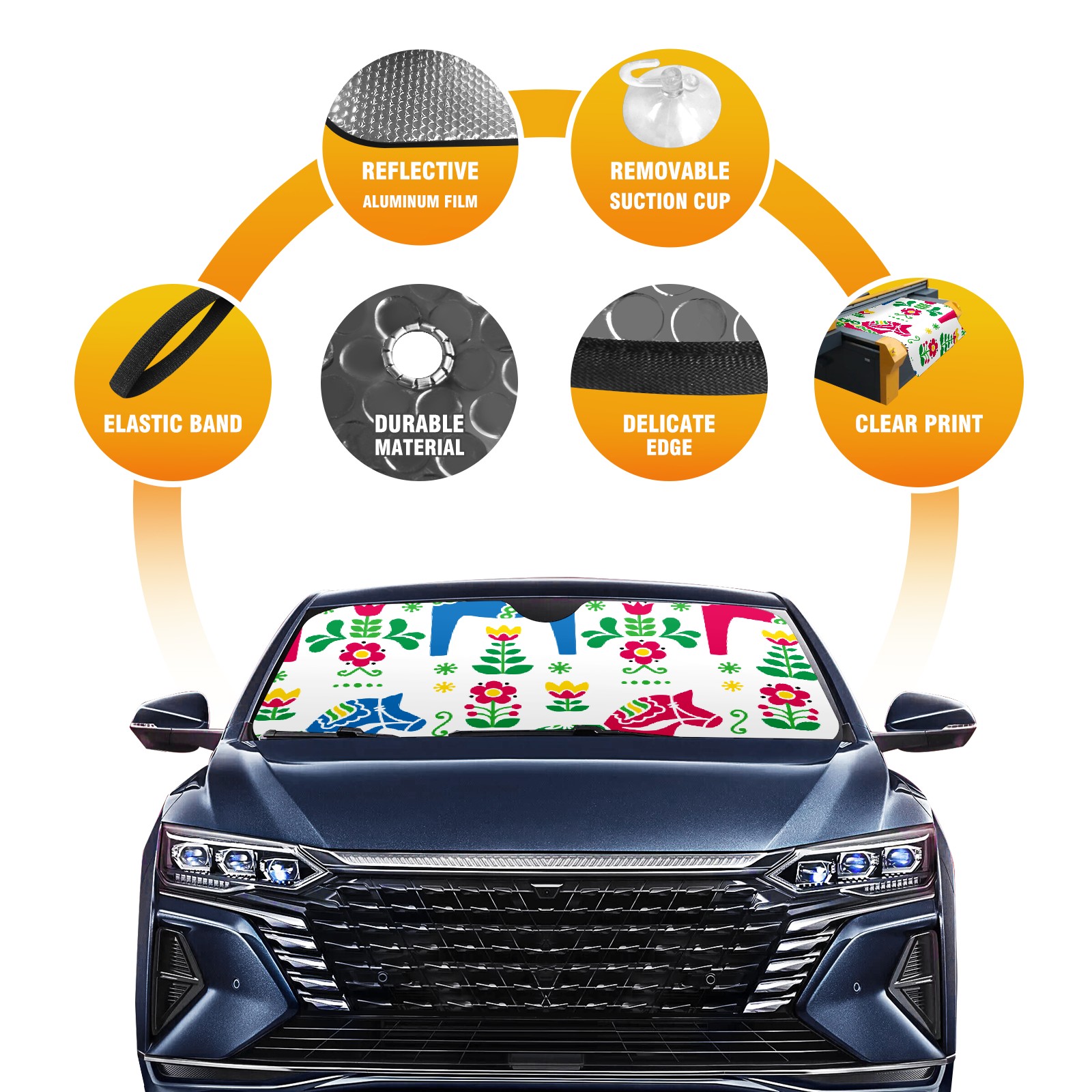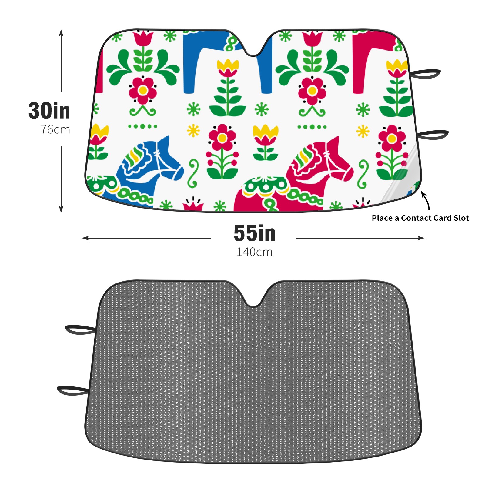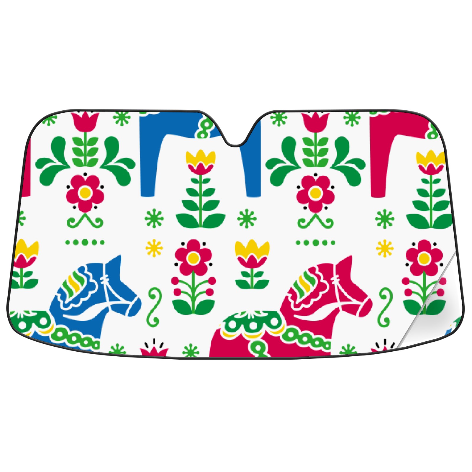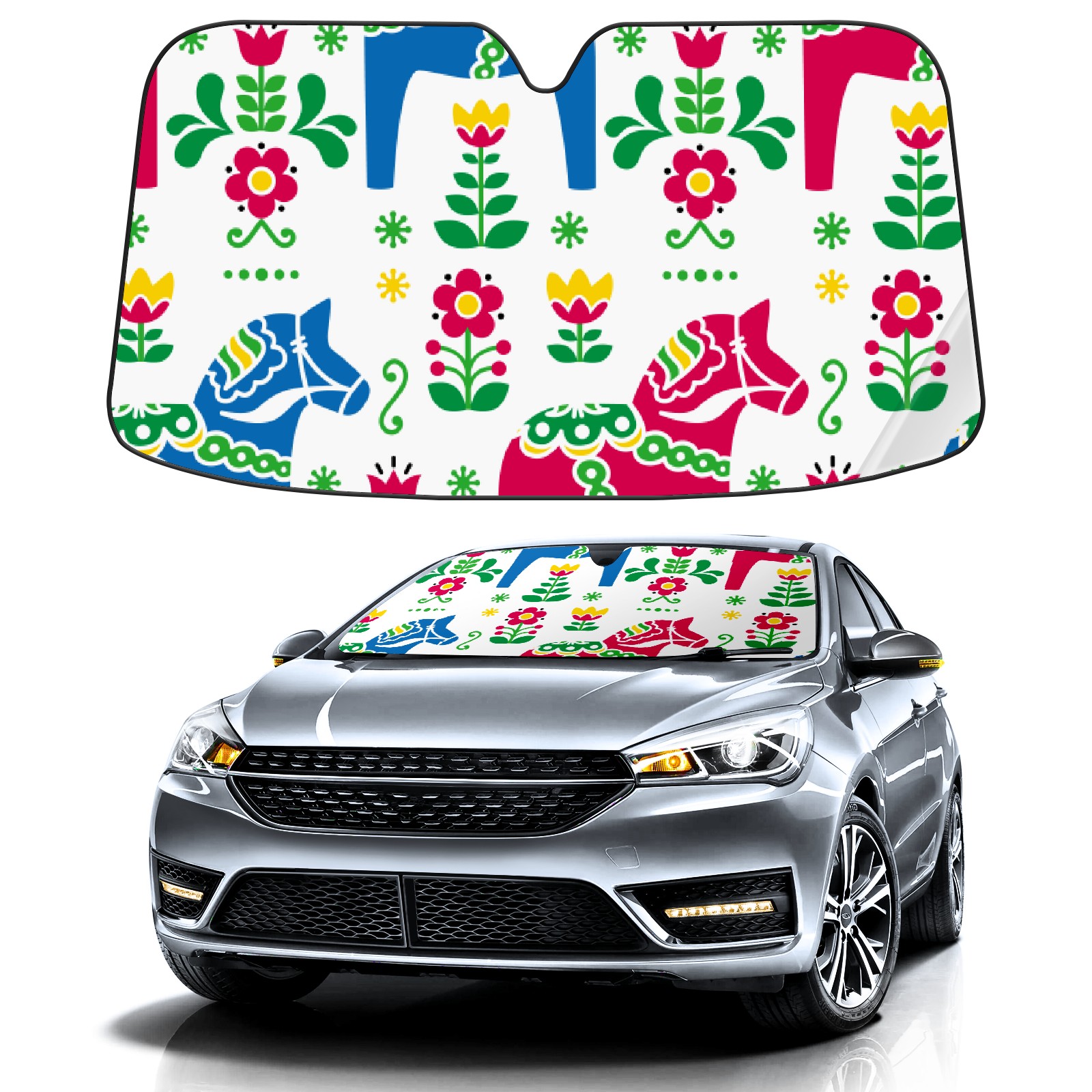 Car Windshield Sun Shade For Front Window Scandinavian Christmas Horses And Flowers Foldable Vehicle Windshield Car Sun Visor Covers Automotive Window Protector Car Camping Privacy Sun Blocker