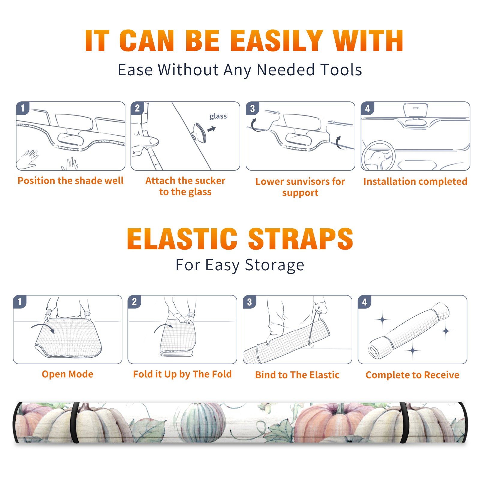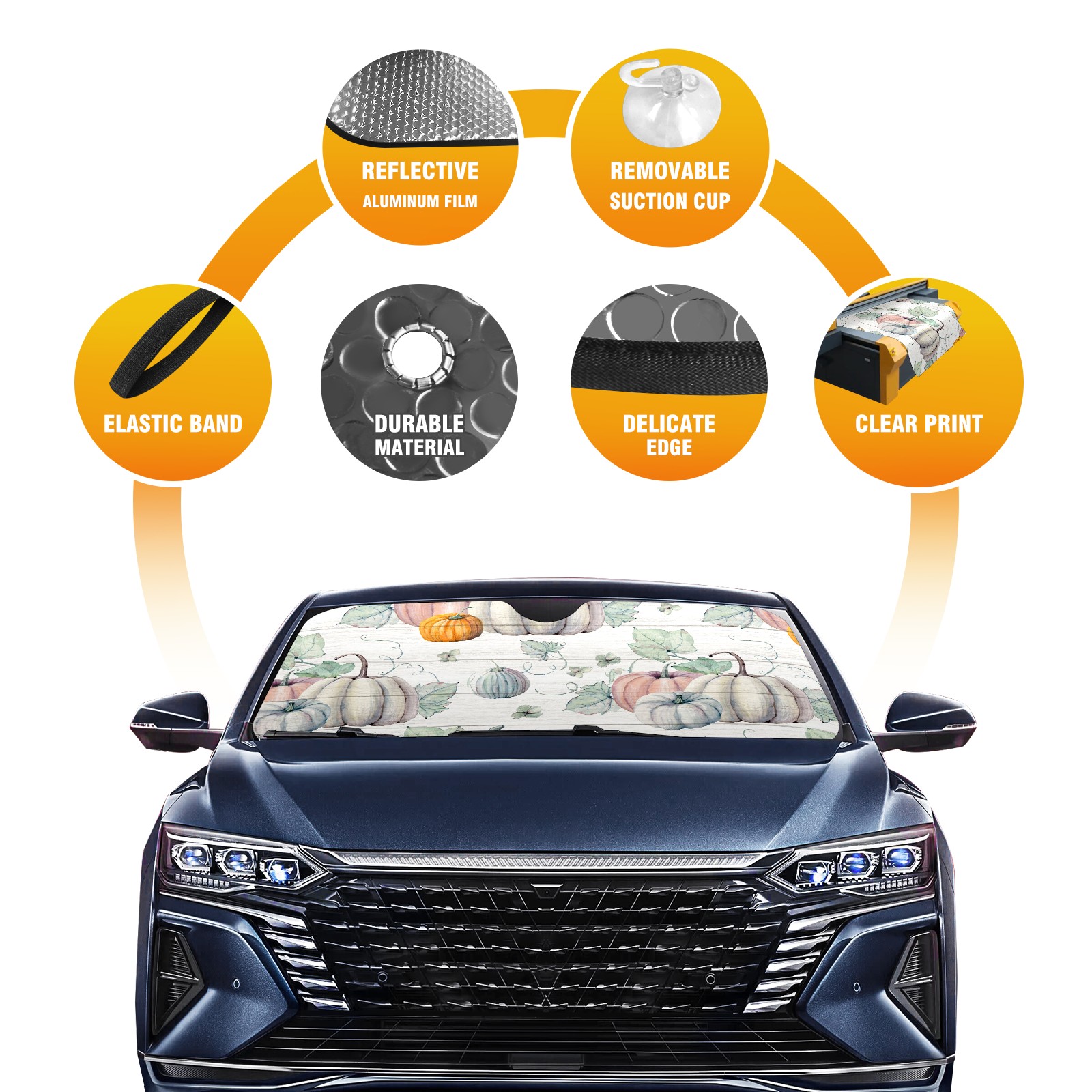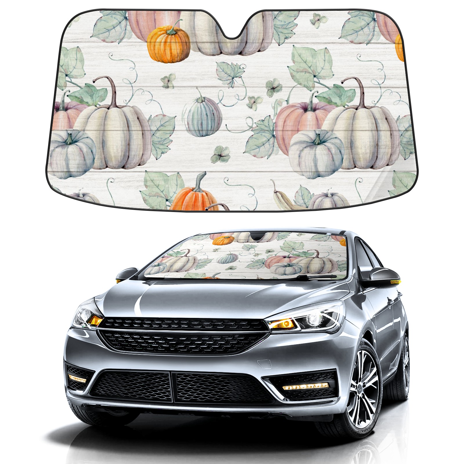 Car Windshield Sun Shade For Front Window Watercolor Fall Pumpkins Foldable Vehicle Windshield Car Sun Visor Covers Automotive Window Protector Car Camping Privacy Sun Blocker