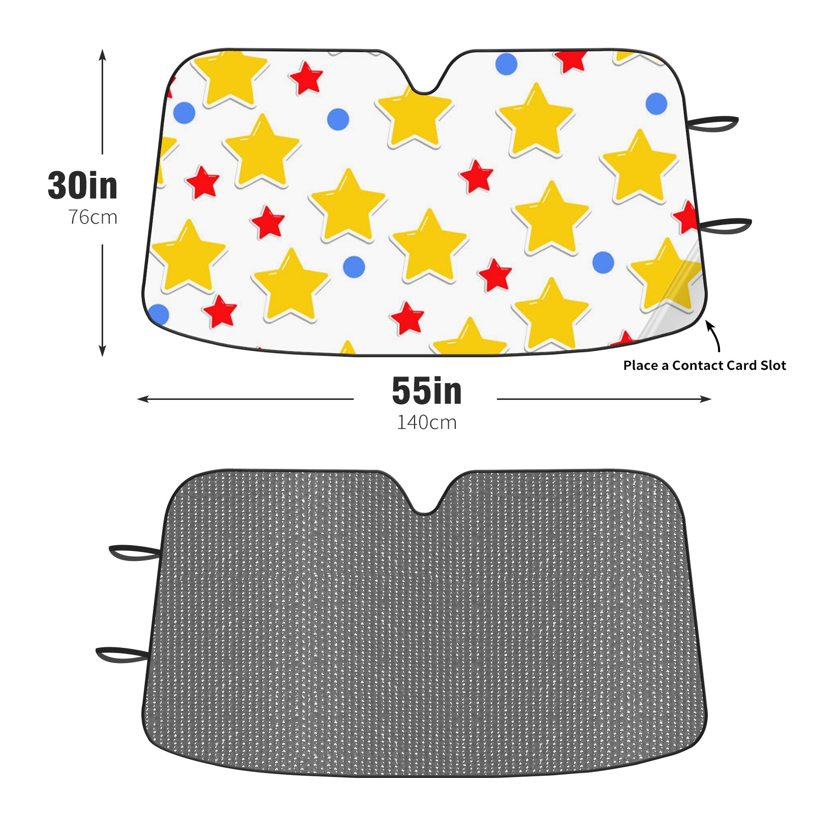 Diameter /Size 63"L x 33.5"W Made from excellent materials which makes it sturdy and protects the car from the sun. Easy to use and pack. Makes the interior of the car cooler.You can easily stash the sunshade in the storage bag or store long term.It open and closes easy. Also the leather storage bag is durable and easy to put the umbrella back into.This windshield sunshade provides complete coverage and keeps your car interior cool under direct sun. It is easy to open and position under the windshield and around the rear-view mirror. Makes Your Car Easy To Identify, Perfect For Finding Your Car In Crowded Parking Lots And Garages.Great Choice: It Is A Great Gift For Dad, Boyfriend, Brother, Brother And Uncle, Friends, Classmates, Family And So On. Notice: Due To Difference Computer Monitors, The Color Maybe Slightly Different From Picture. As Different Measurement Methods, Measurement Data Will Float Within 2%.I Hope You Understand. If You Have Any Question About The Item Please Do Not Hesitate To Contact Us Immediately And We Will Give You A Satisfactory Reply Within 24 Hours.