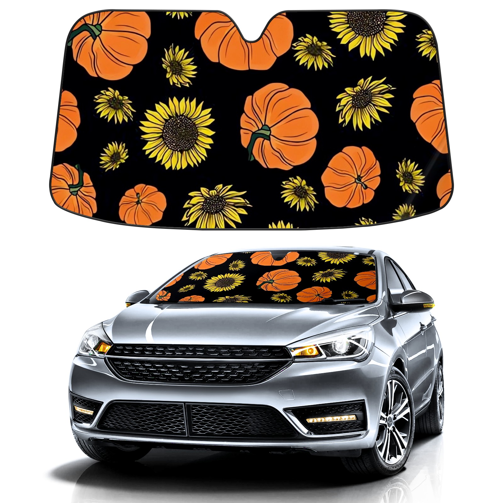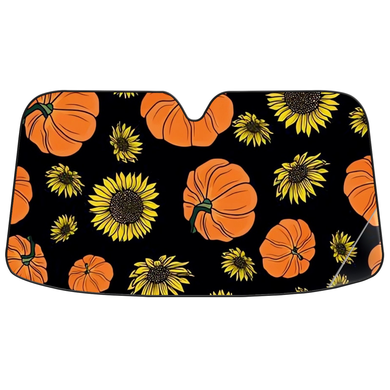 Car Windshield Sun Shade For Front Window Fall Pumpkin Sunflower Foldable Vehicle Windshield Car Sun Visor Covers Automotive Window Protector Car Camping Privacy Sun Blocker