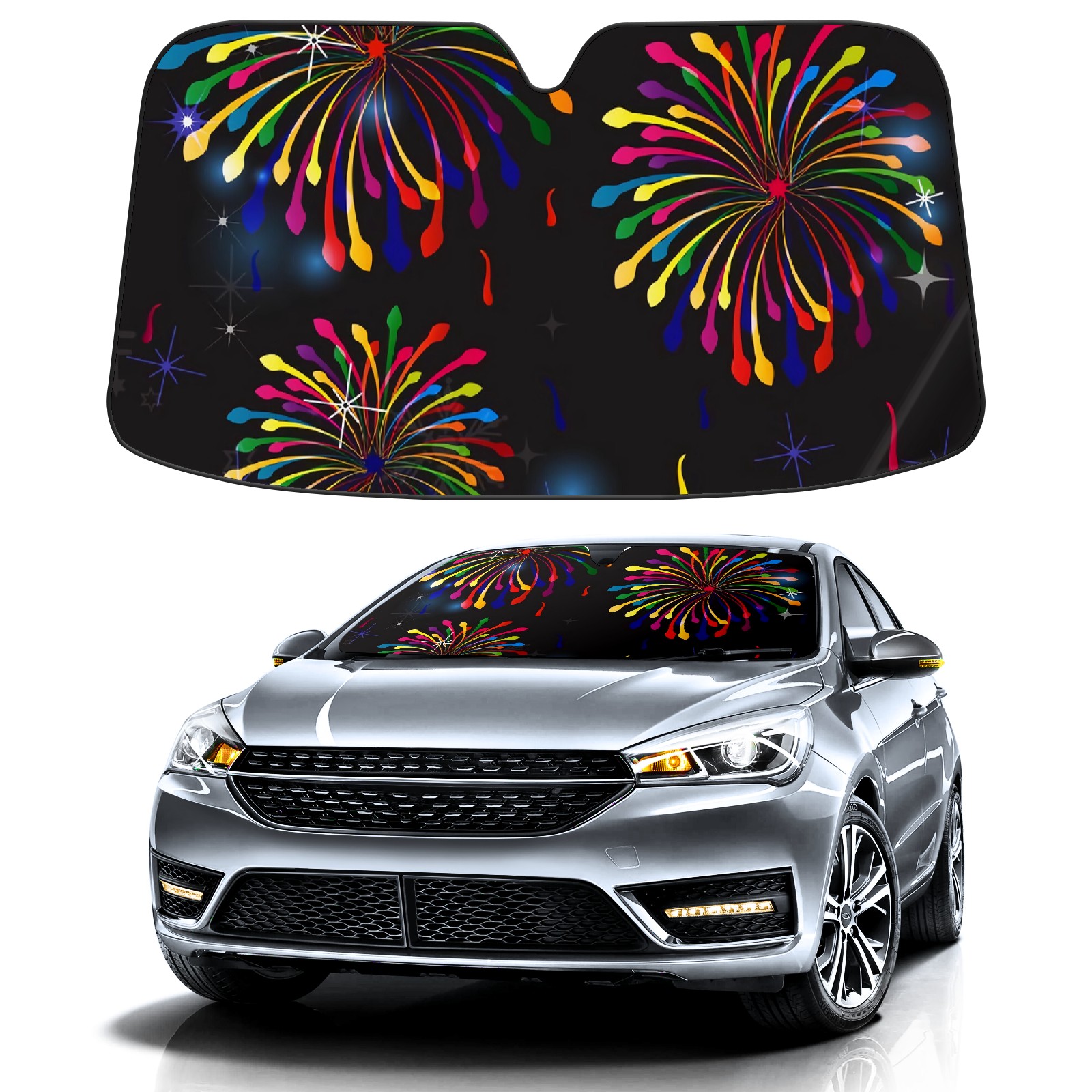 Car Windshield Sun Shade For Front Window Firecrackers Foldable Vehicle Windshield Car Sun Visor Covers Automotive Window Protector Car Camping Privacy Sun Blocker