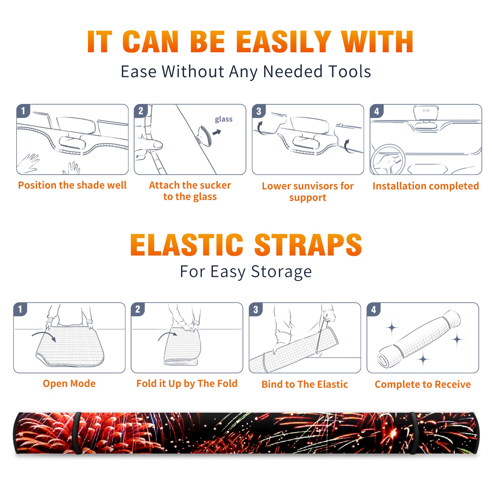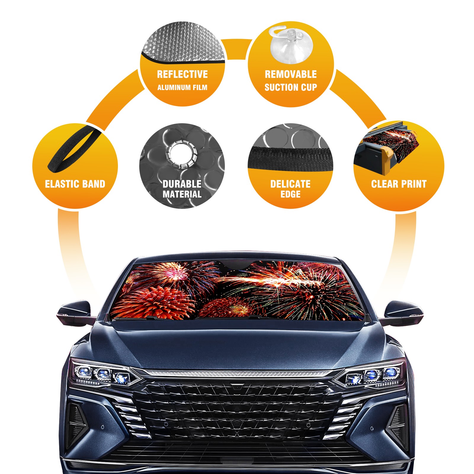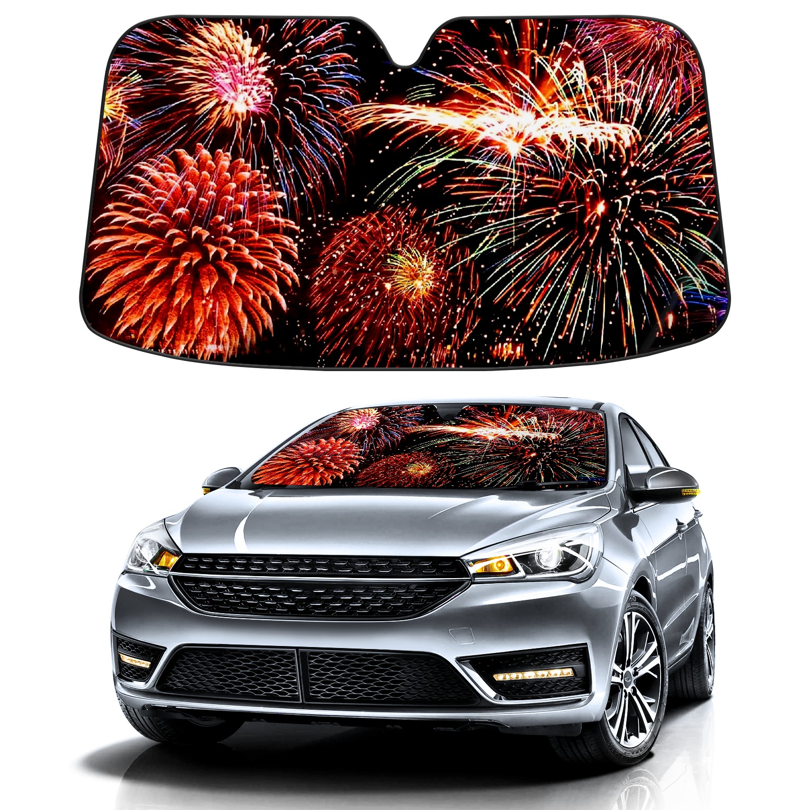 Car Windshield Sun Shade For Front Window Celebrate With Fireworks Foldable Vehicle Windshield Car Sun Visor Covers Automotive Window Protector Car Camping Privacy Sun Blocker