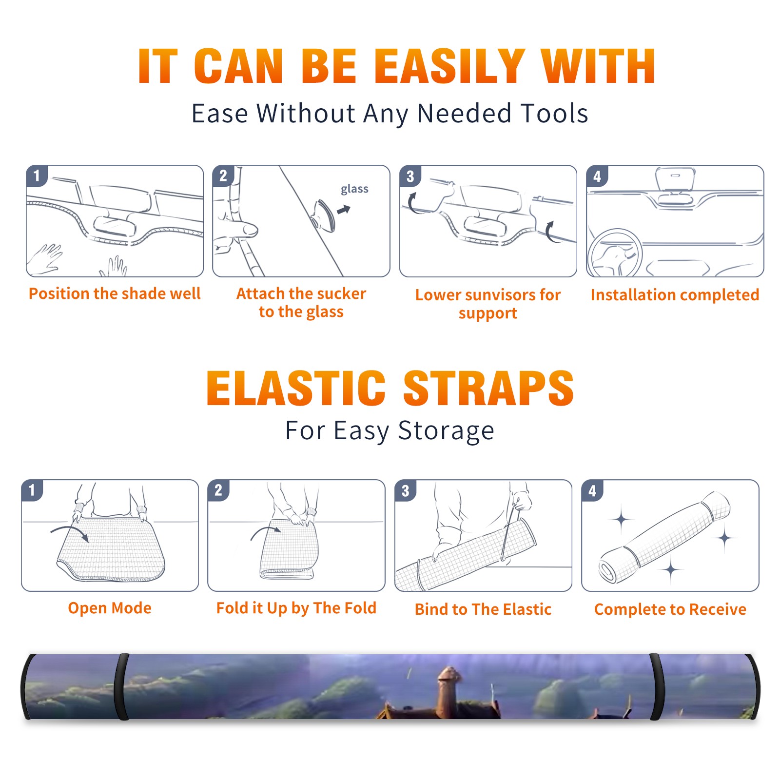 • Diameter /Size 63"L x 33.5"W Made from excellent materials which makes it sturdy and protects the car from the sun. Easy to use and pack. Makes the interior of the car cooler.You can easily stash the sunshade in the storage bag or store long term.It open and closes easy. Also the leather storage bag is durable and easy to put the umbrella back into.This windshield sunshade provides complete coverage and keeps your car interior cool under direct sun. It is easy to open and position under the windshield and around the rear-view mirror. Makes Your Car Easy To Identify, Perfect For Finding Your Car In Crowded Parking Lots And Garages.Great Choice: It Is A Great Gift For Dad, Boyfriend, Brother, Brother And Uncle, Friends, Classmates, Family And So On. Notice: Due To Difference Computer Monitors, The Color Maybe Slightly Different From Picture. As Different Measurement Methods, Measurement Data Will Float Within 2%.I Hope You Understand. If You Have Any Question About The Item Please Do Not Hesitate To Contact Us Immediately And We Will Give You A Satisfactory Reply Within 24 Hours.