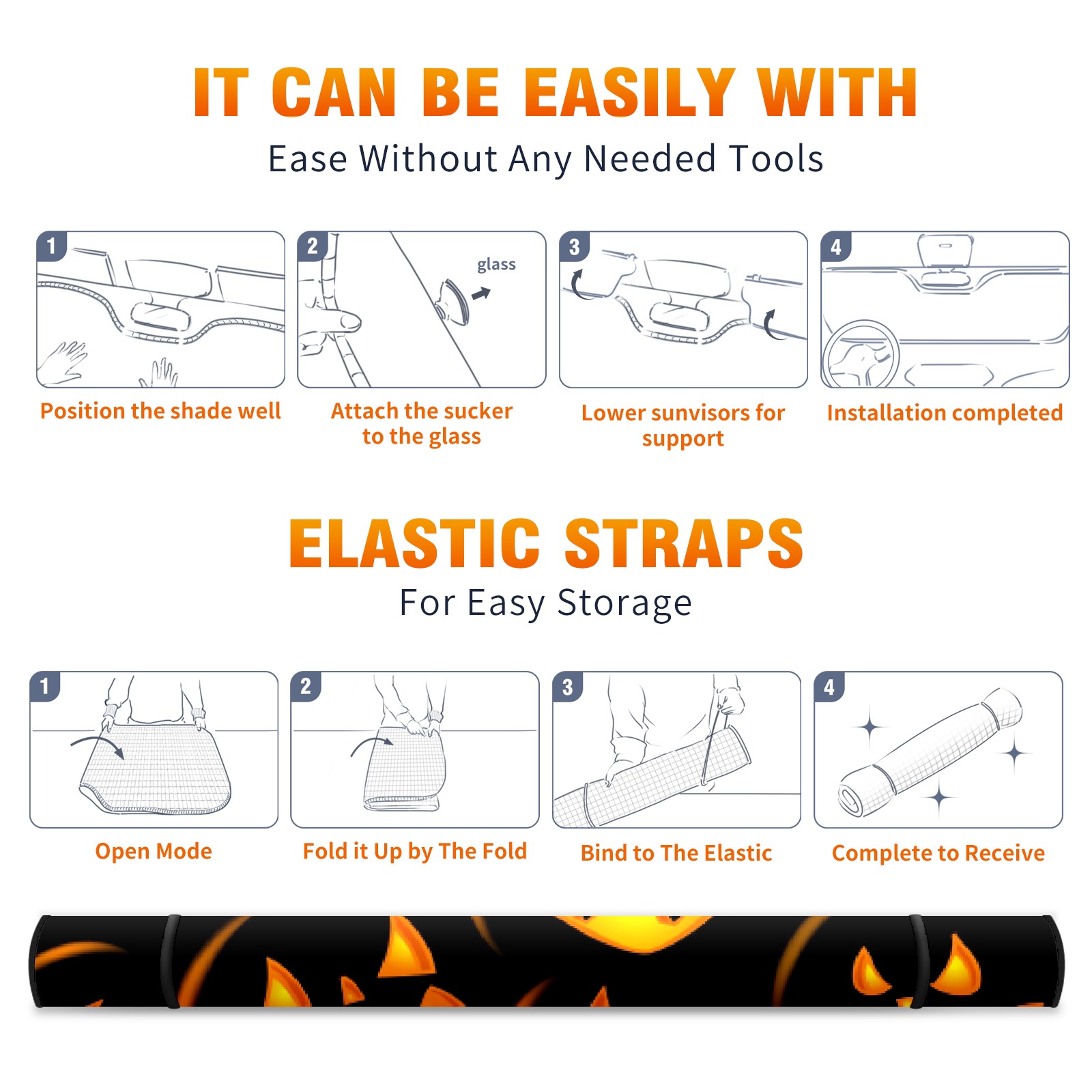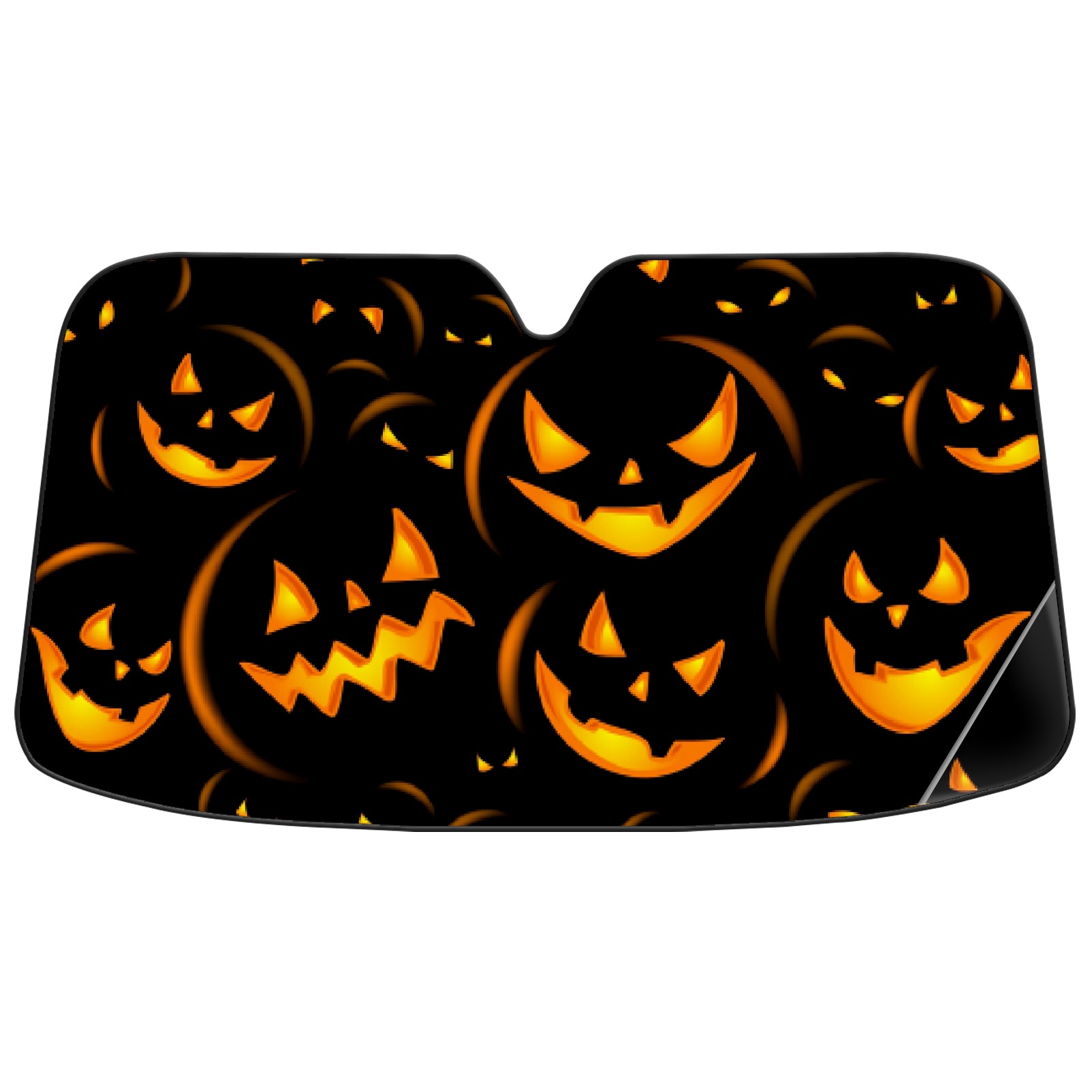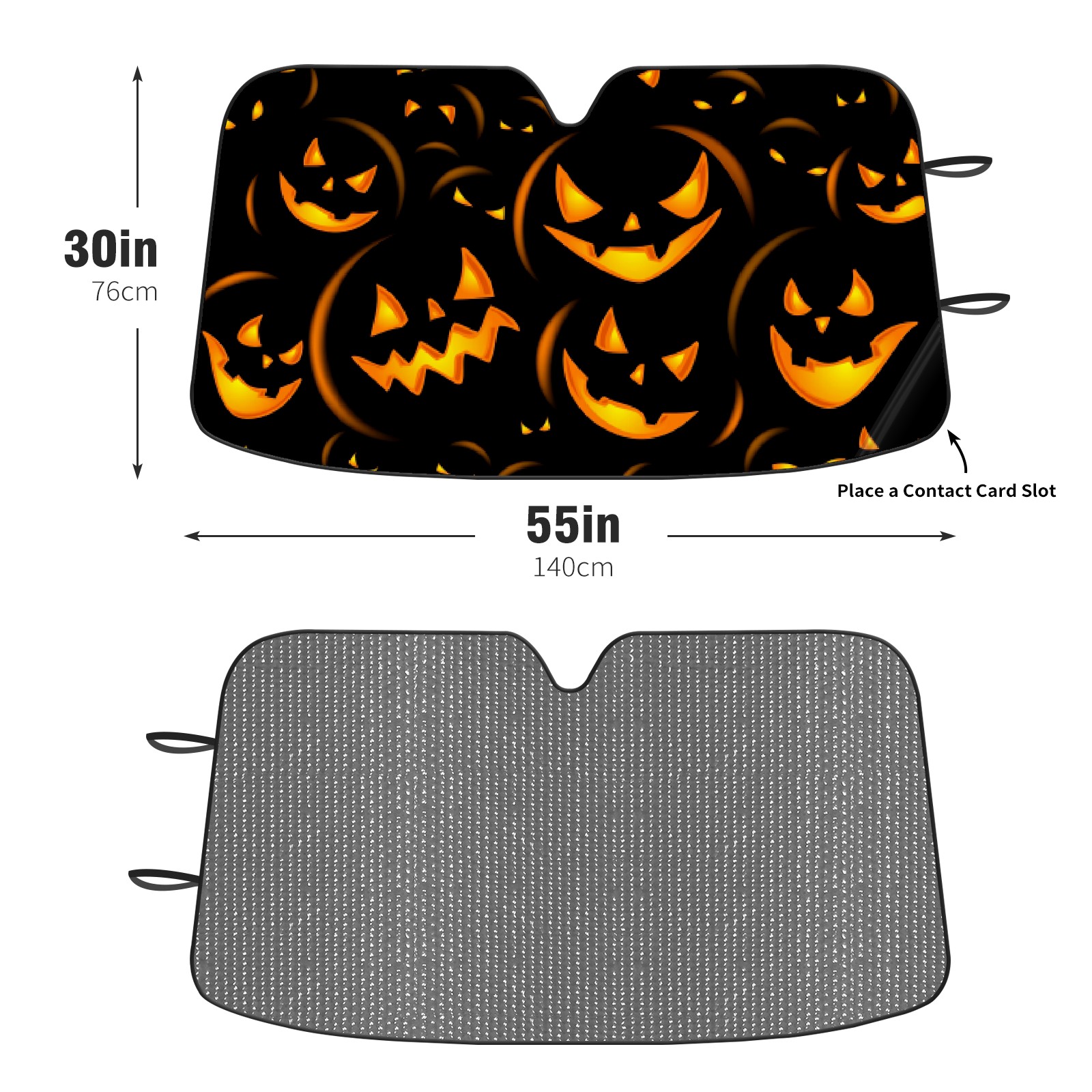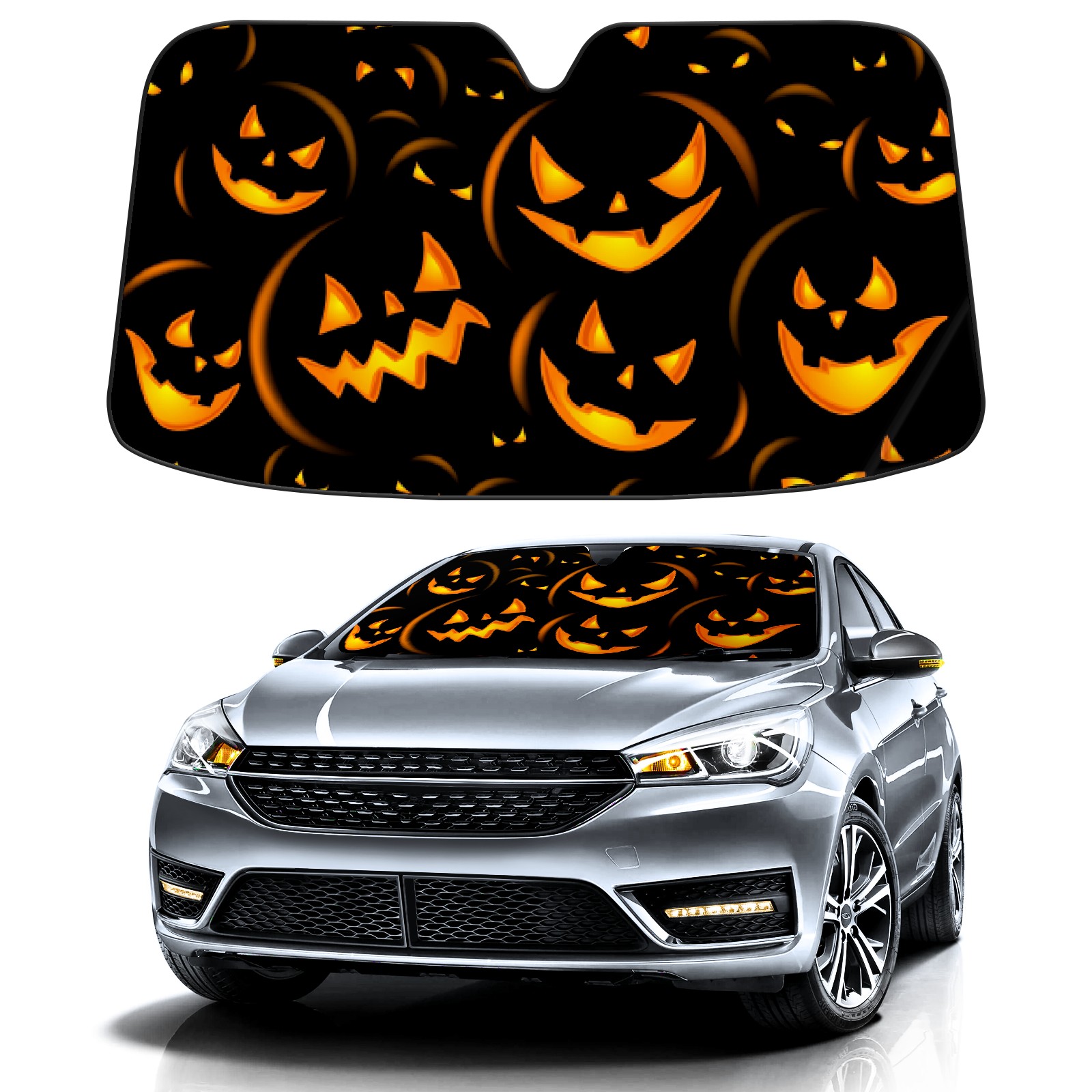 Car Windshield Sun Shade For Front Window Pumpkin Face Halloween Foldable Vehicle Windshield Car Sun Visor Covers Automotive Window Protector Car Camping Privacy Sun Blocker