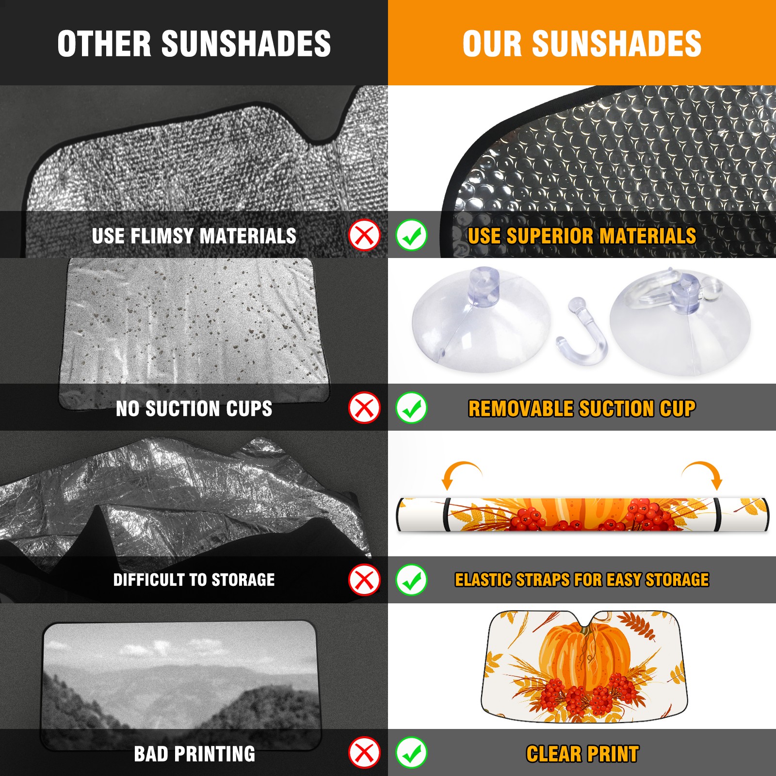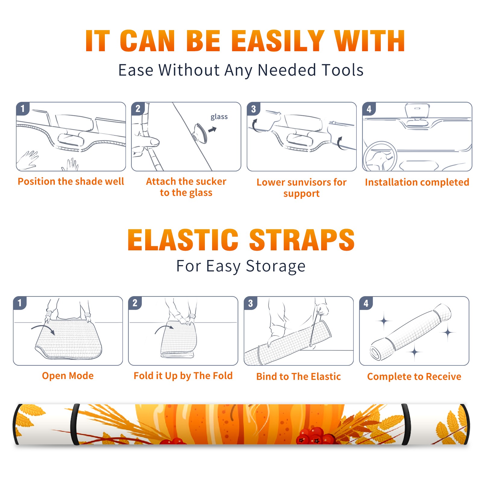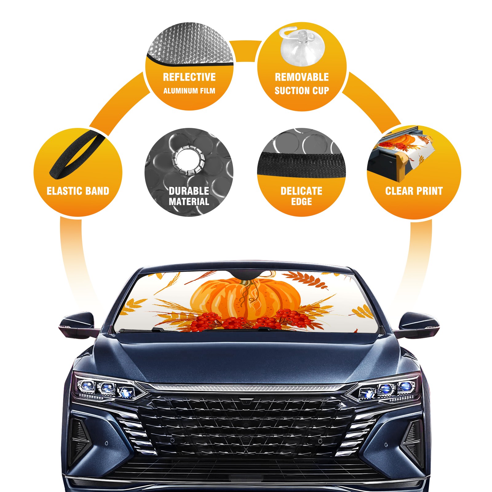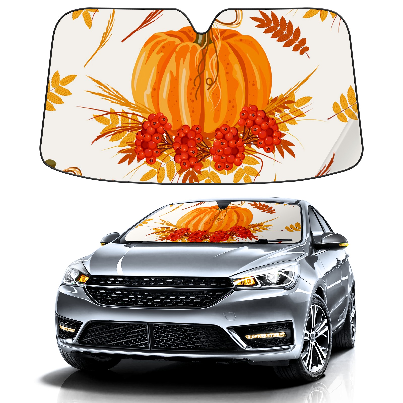 Car Windshield Sun Shade For Front Window Autumn Pumpkin Foldable Vehicle Windshield Car Sun Visor Covers Automotive Window Protector Car Camping Privacy Sun Blocker