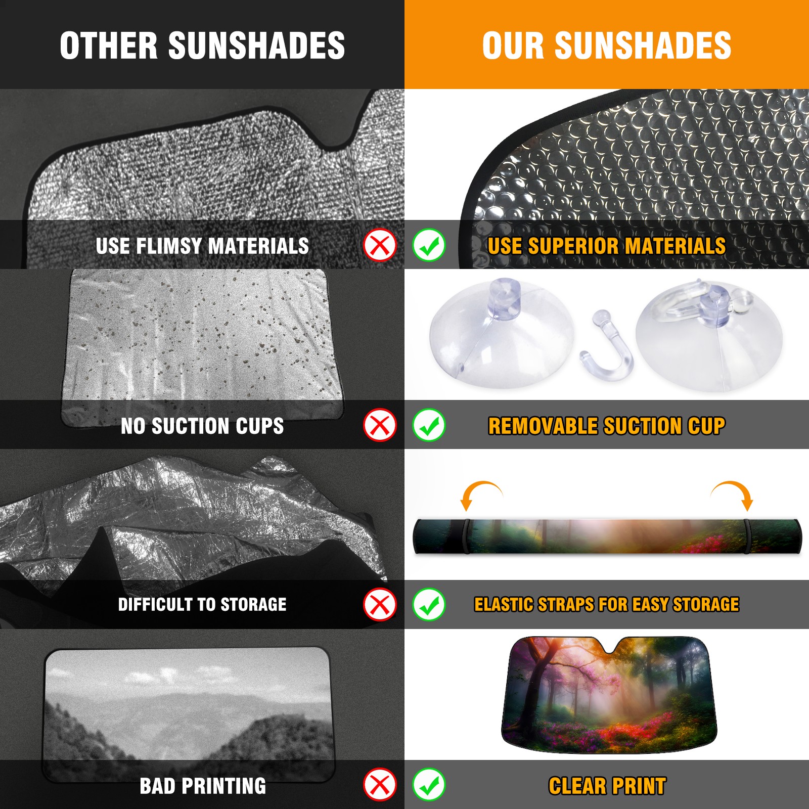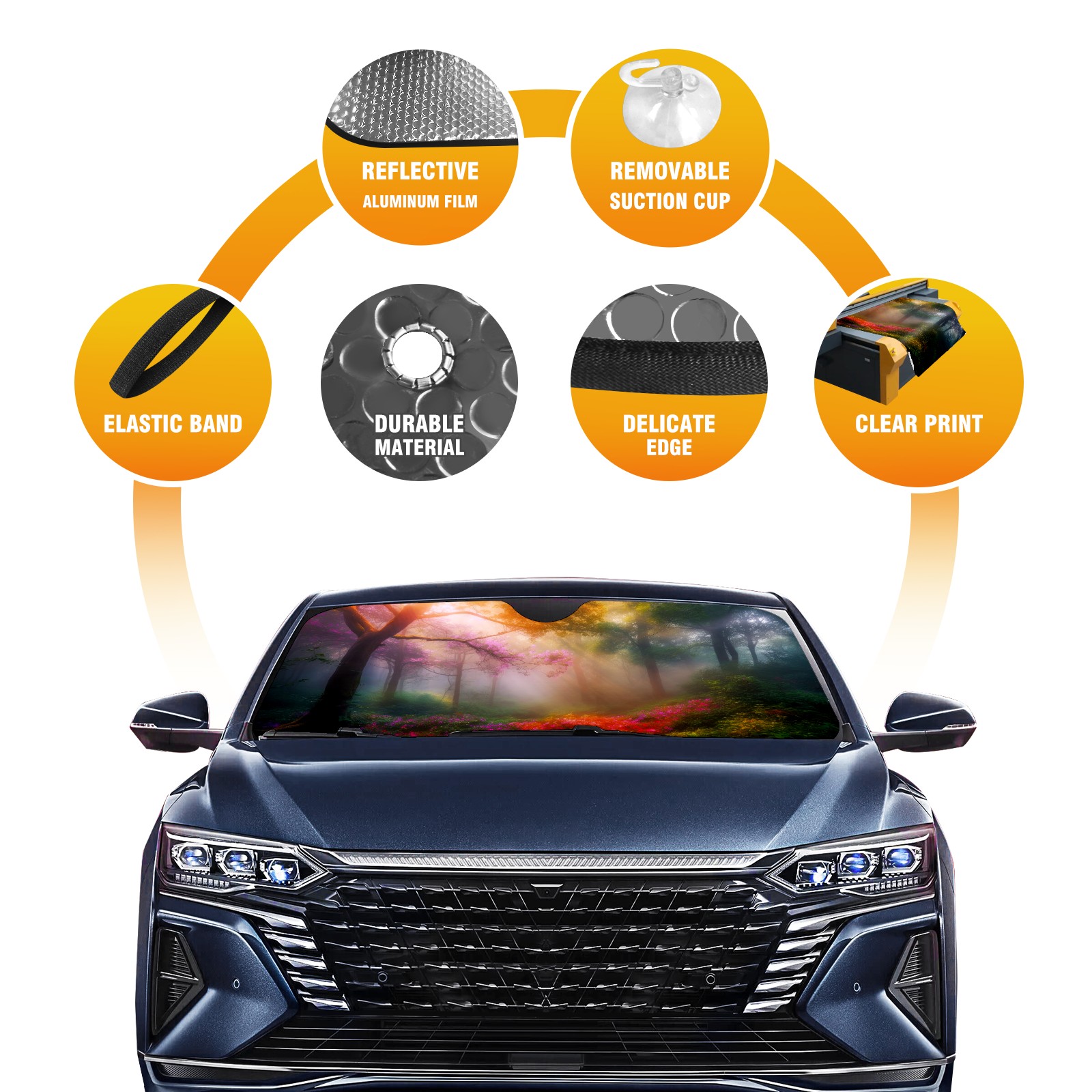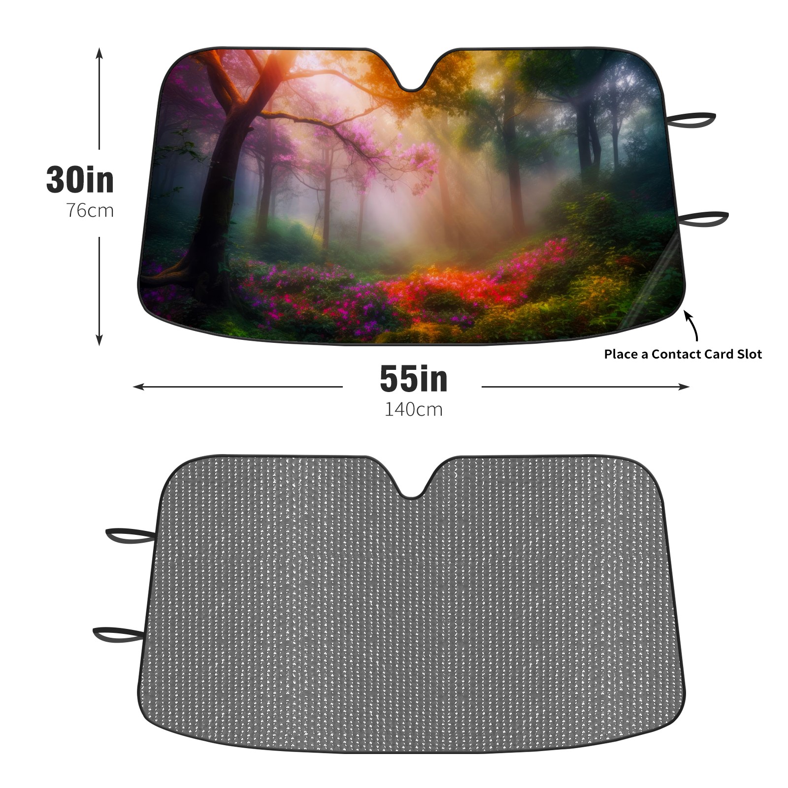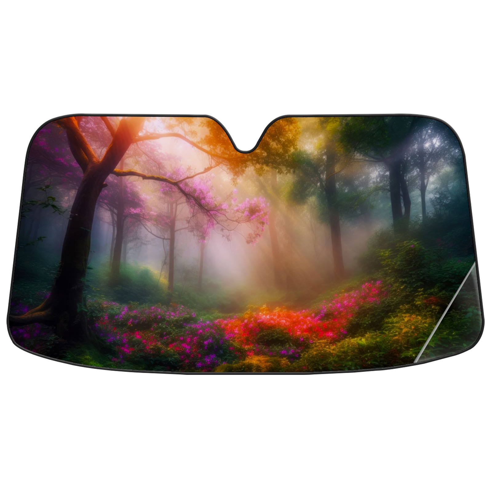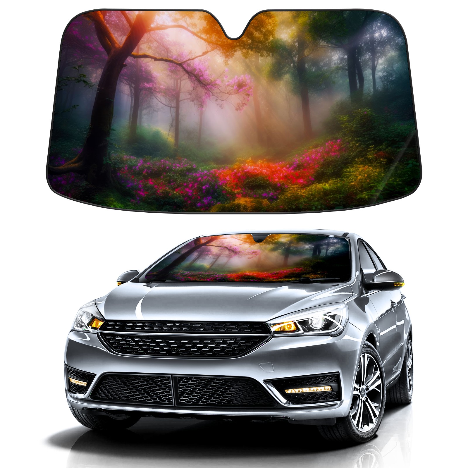 Car Windshield Sun Shade For Front Window Colorful Flower Forest Foldable Vehicle Windshield Car Sun Visor Covers Automotive Window Protector Car Camping Privacy Sun Blocker