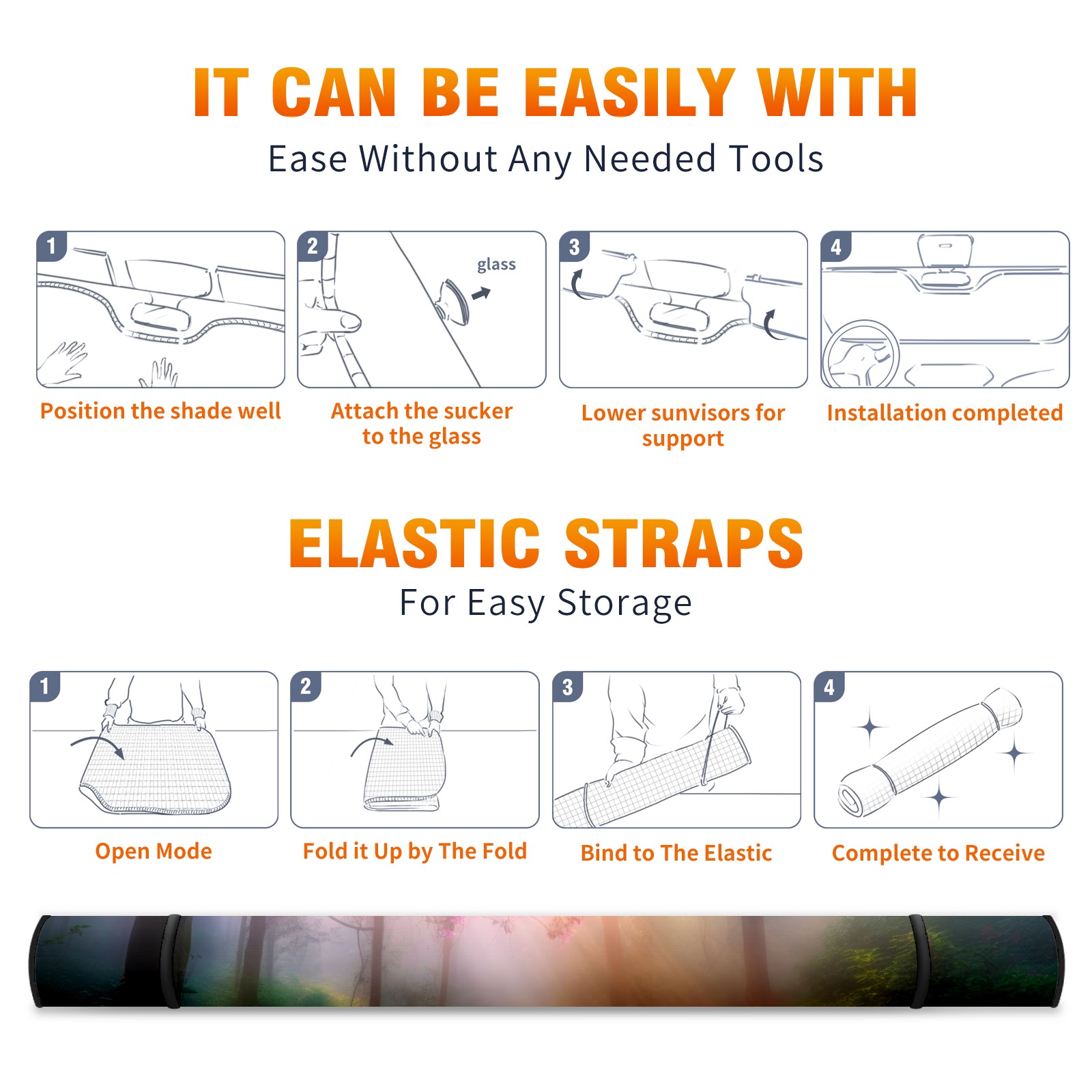 • Diameter /Size 63"L x 33.5"W Made from excellent materials which makes it sturdy and protects the car from the sun. Easy to use and pack. Makes the interior of the car cooler.You can easily stash the sunshade in the storage bag or store long term.It open and closes easy. Also the leather storage bag is durable and easy to put the umbrella back into.This windshield sunshade provides complete coverage and keeps your car interior cool under direct sun. It is easy to open and position under the windshield and around the rear-view mirror. Makes Your Car Easy To Identify, Perfect For Finding Your Car In Crowded Parking Lots And Garages.Great Choice: It Is A Great Gift For Dad, Boyfriend, Brother, Brother And Uncle, Friends, Classmates, Family And So On. Notice: Due To Difference Computer Monitors, The Color Maybe Slightly Different From Picture. As Different Measurement Methods, Measurement Data Will Float Within 2%.I Hope You Understand. If You Have Any Question About The Item Please Do Not Hesitate To Contact Us Immediately And We Will Give You A Satisfactory Reply Within 24 Hours.