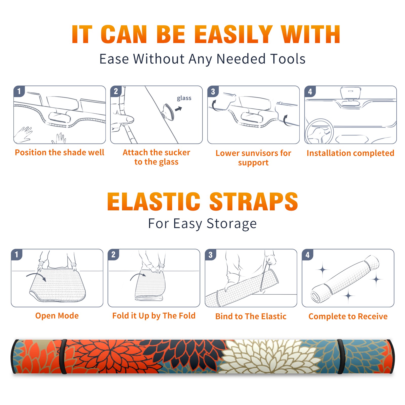 • Diameter /Size 63"L x 33.5"W Made from excellent materials which makes it sturdy and protects the car from the sun. Easy to use and pack. Makes the interior of the car cooler.You can easily stash the sunshade in the storage bag or store long term.It open and closes easy. Also the leather storage bag is durable and easy to put the umbrella back into.This windshield sunshade provides complete coverage and keeps your car interior cool under direct sun. It is easy to open and position under the windshield and around the rear-view mirror. Makes Your Car Easy To Identify, Perfect For Finding Your Car In Crowded Parking Lots And Garages.Great Choice: It Is A Great Gift For Dad, Boyfriend, Brother, Brother And Uncle, Friends, Classmates, Family And So On. Notice: Due To Difference Computer Monitors, The Color Maybe Slightly Different From Picture. As Different Measurement Methods, Measurement Data Will Float Within 2%.I Hope You Understand. If You Have Any Question About The Item Please Do Not Hesitate To Contact Us Immediately And We Will Give You A Satisfactory Reply Within 24 Hours.