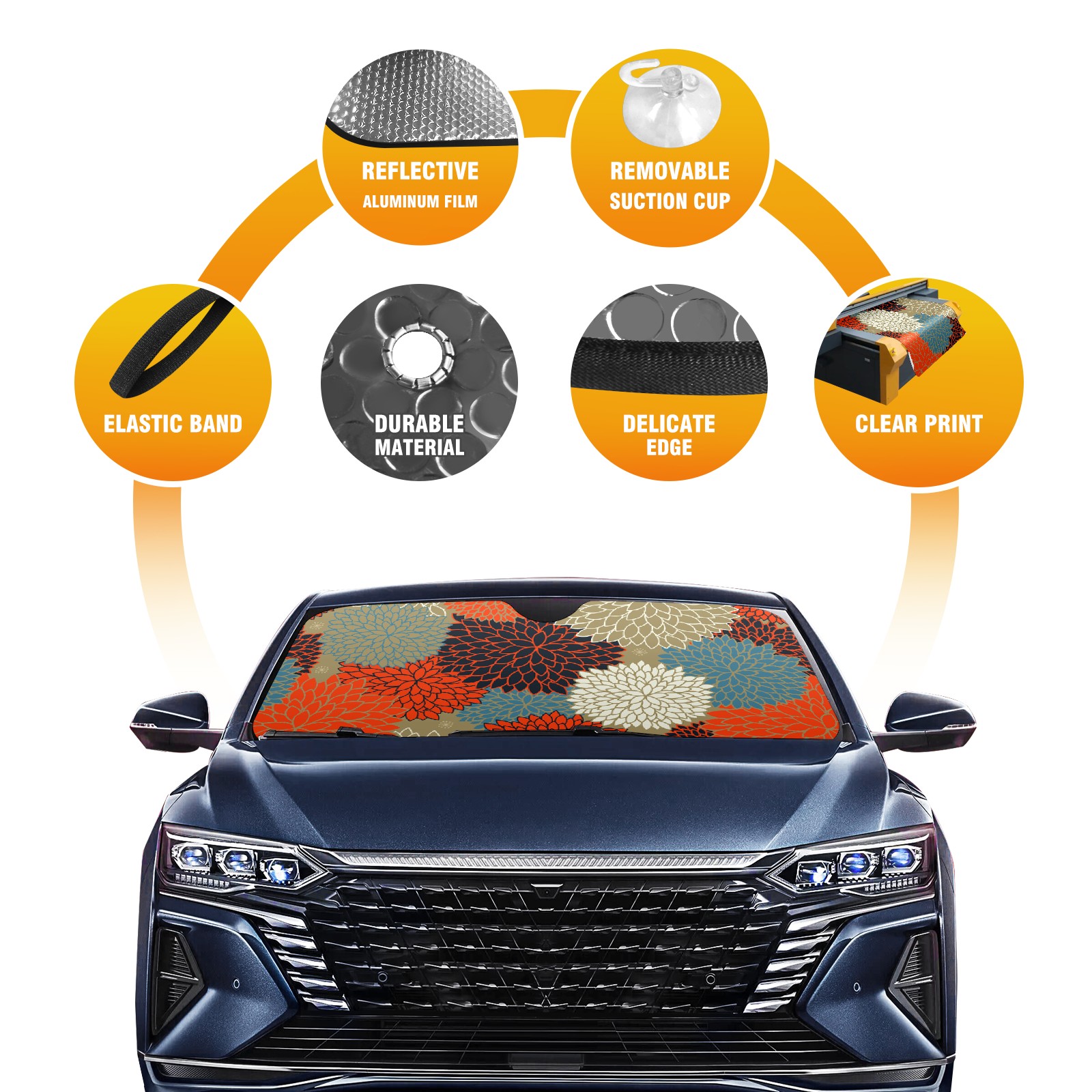 Car Windshield Sun Shade For Front Window Colorful Flowers Foldable Vehicle Windshield Car Sun Visor Covers Automotive Window Protector Car Camping Privacy Sun Blocker