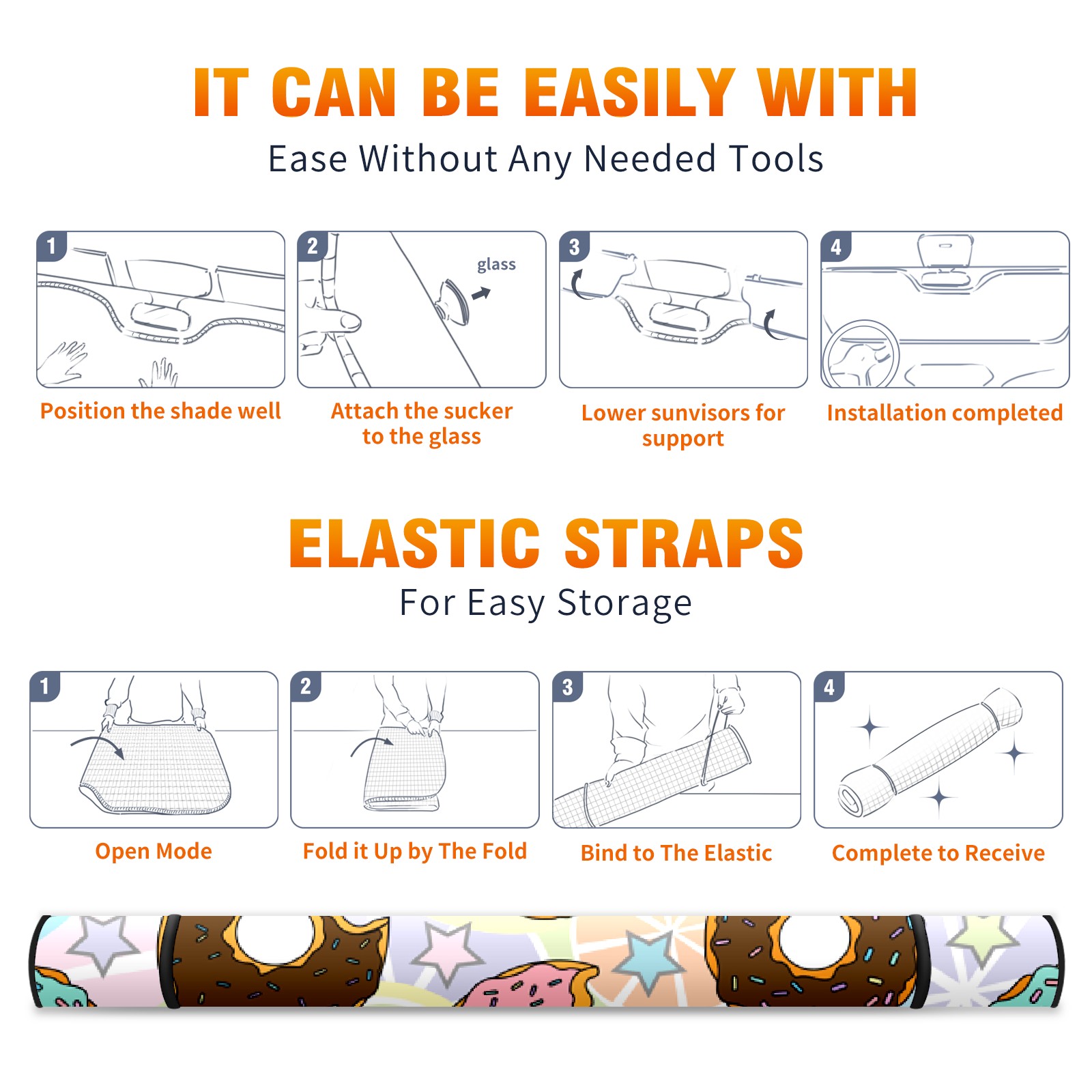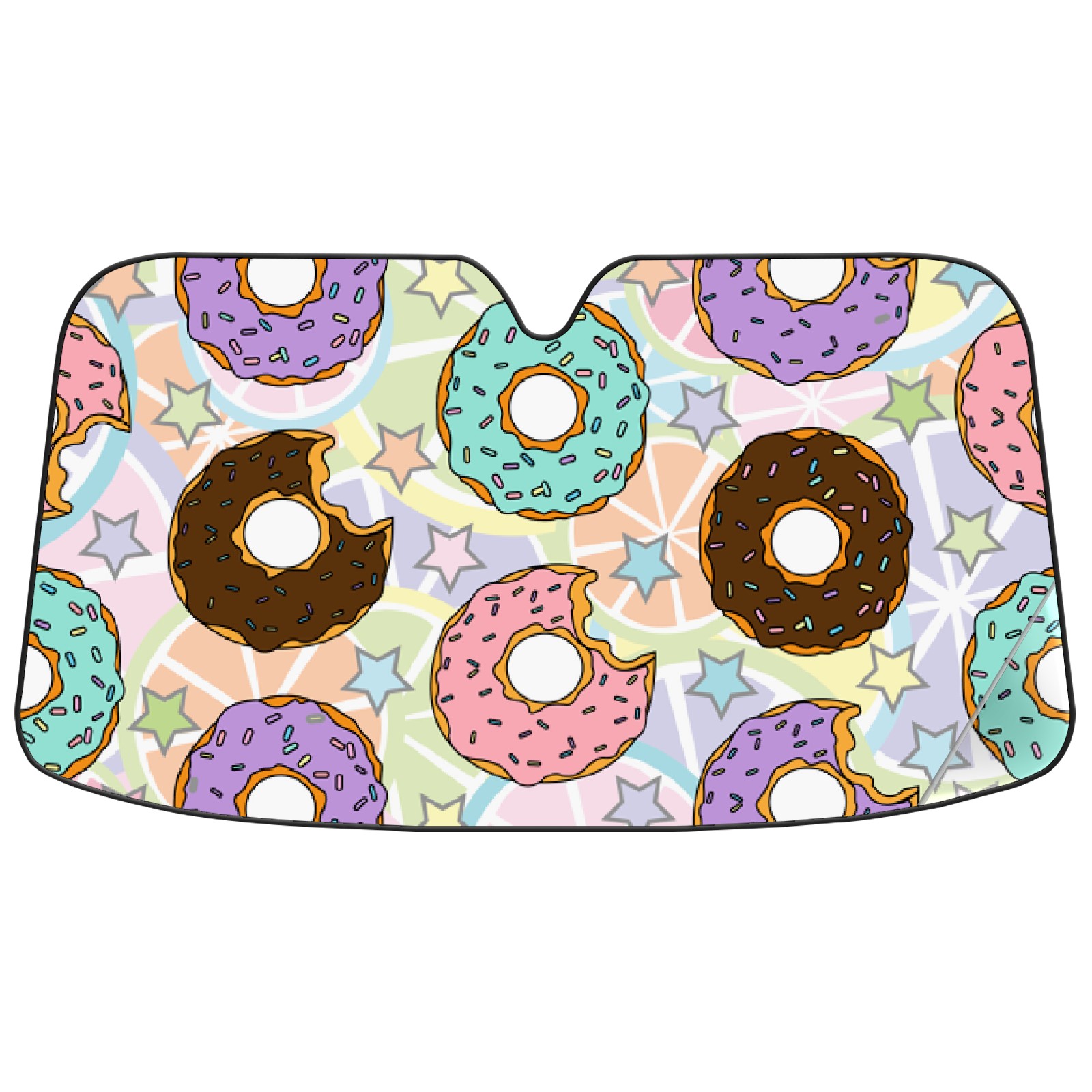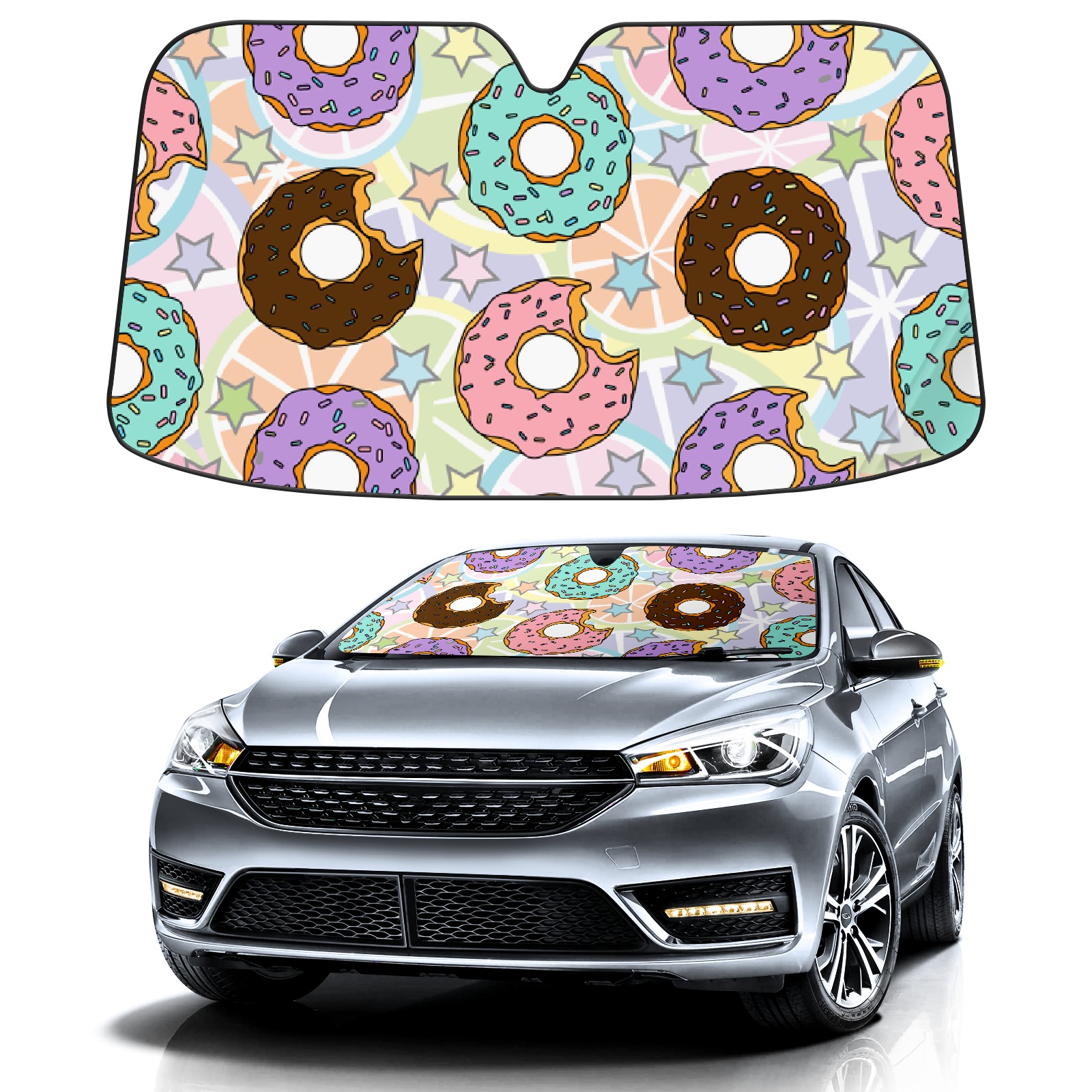 Car Windshield Sun Shade For Front Window Colorful Donut Foldable Vehicle Windshield Car Sun Visor Covers Automotive Window Protector Car Camping Privacy Sun Blocker