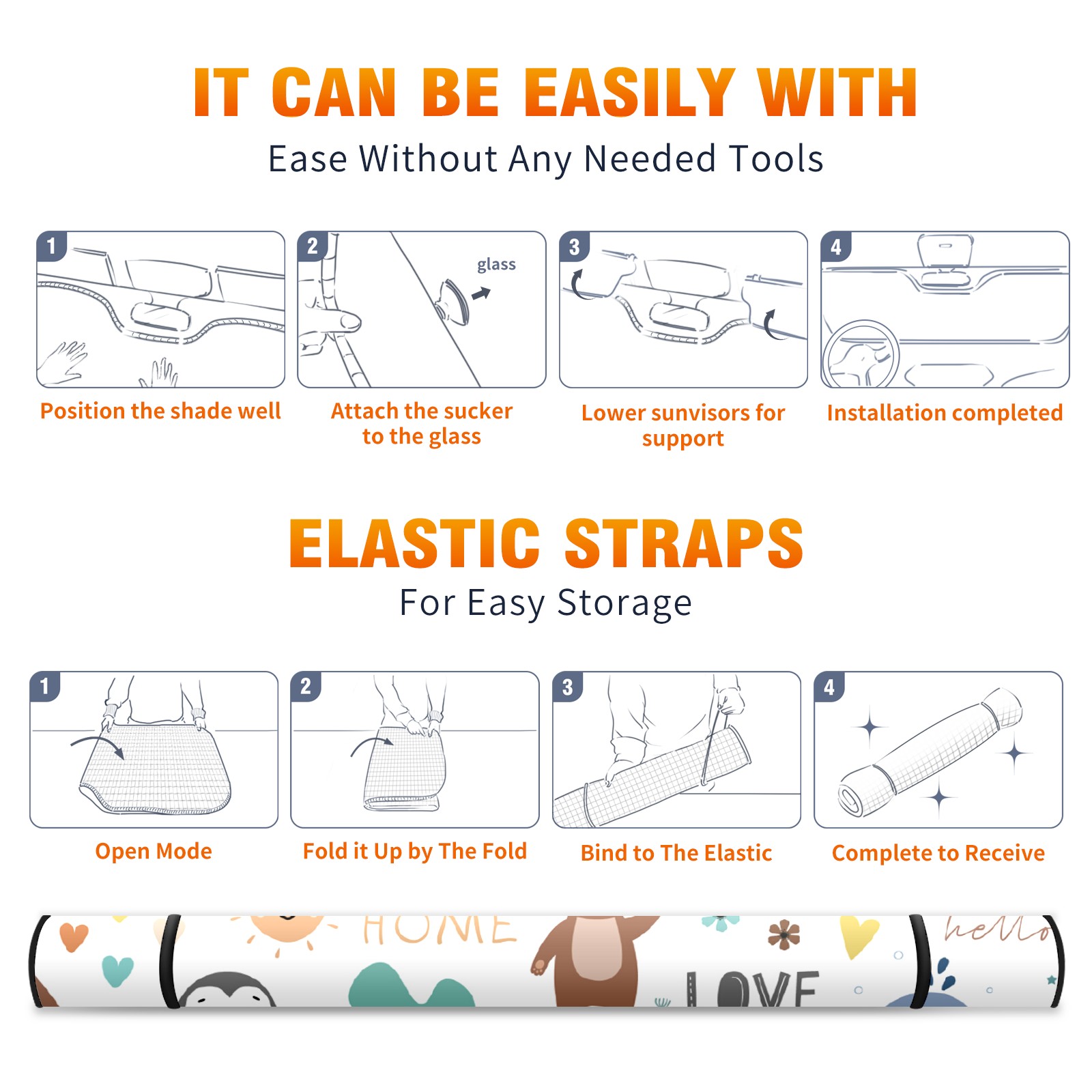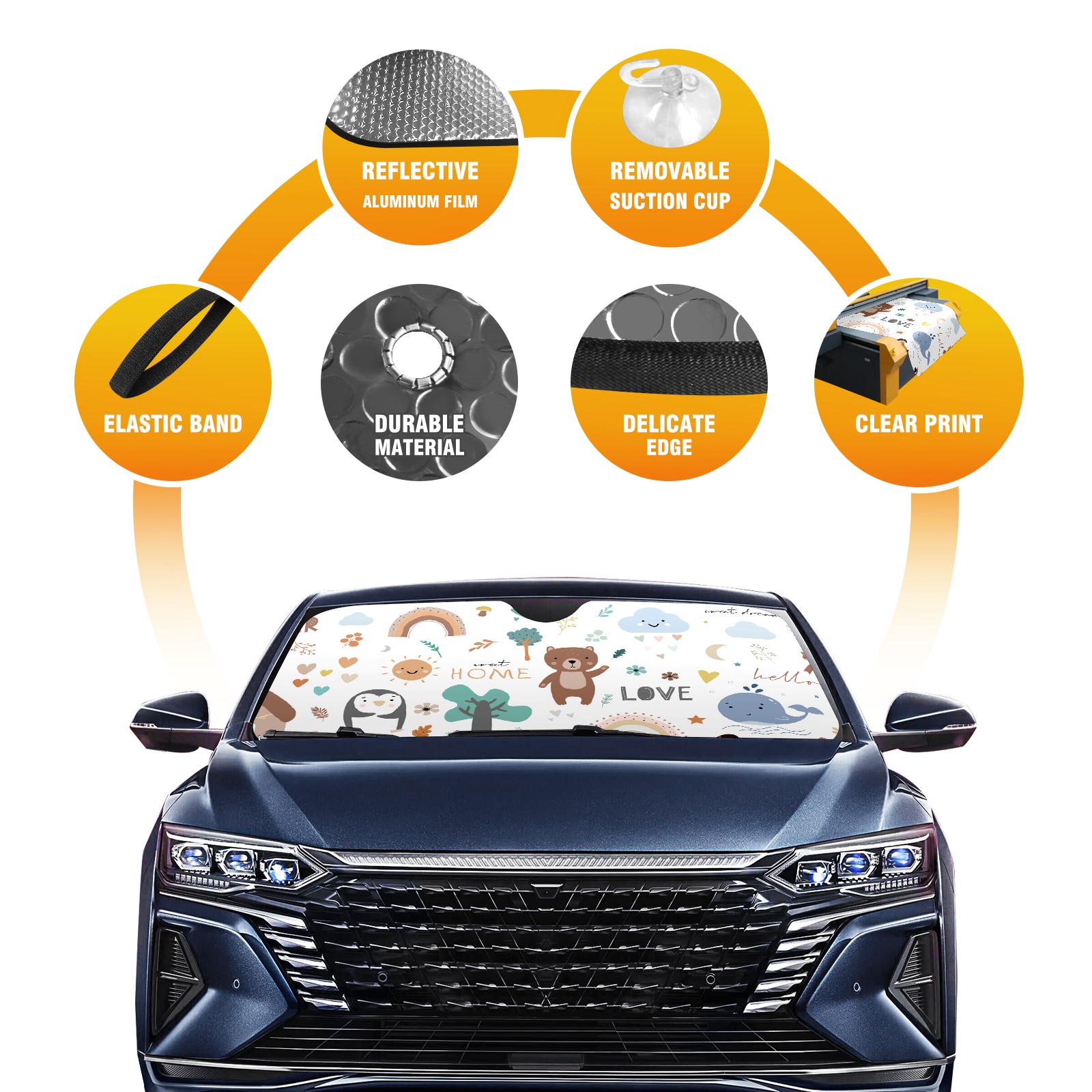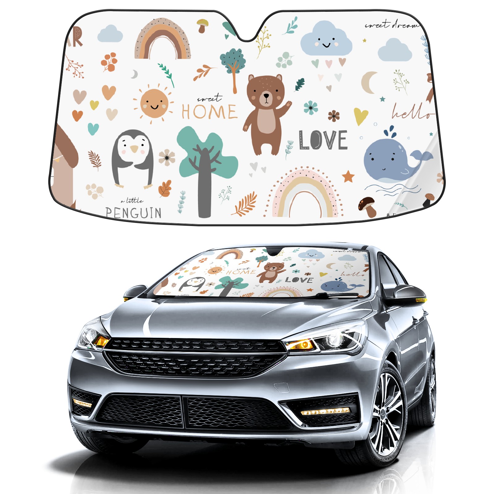 Car Windshield Sun Shade For Front Window Cartoon Animal Foldable Vehicle Windshield Car Sun Visor Covers Automotive Window Protector Car Camping Privacy Sun Blocker