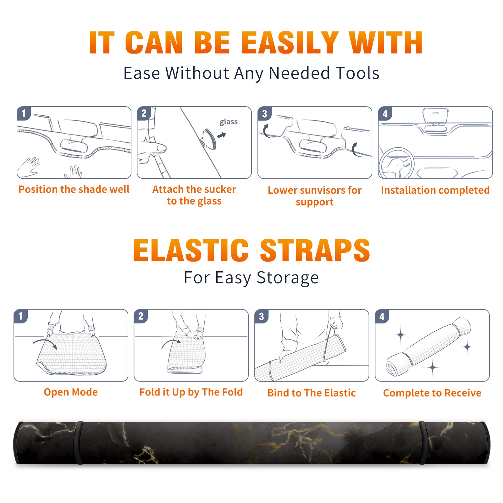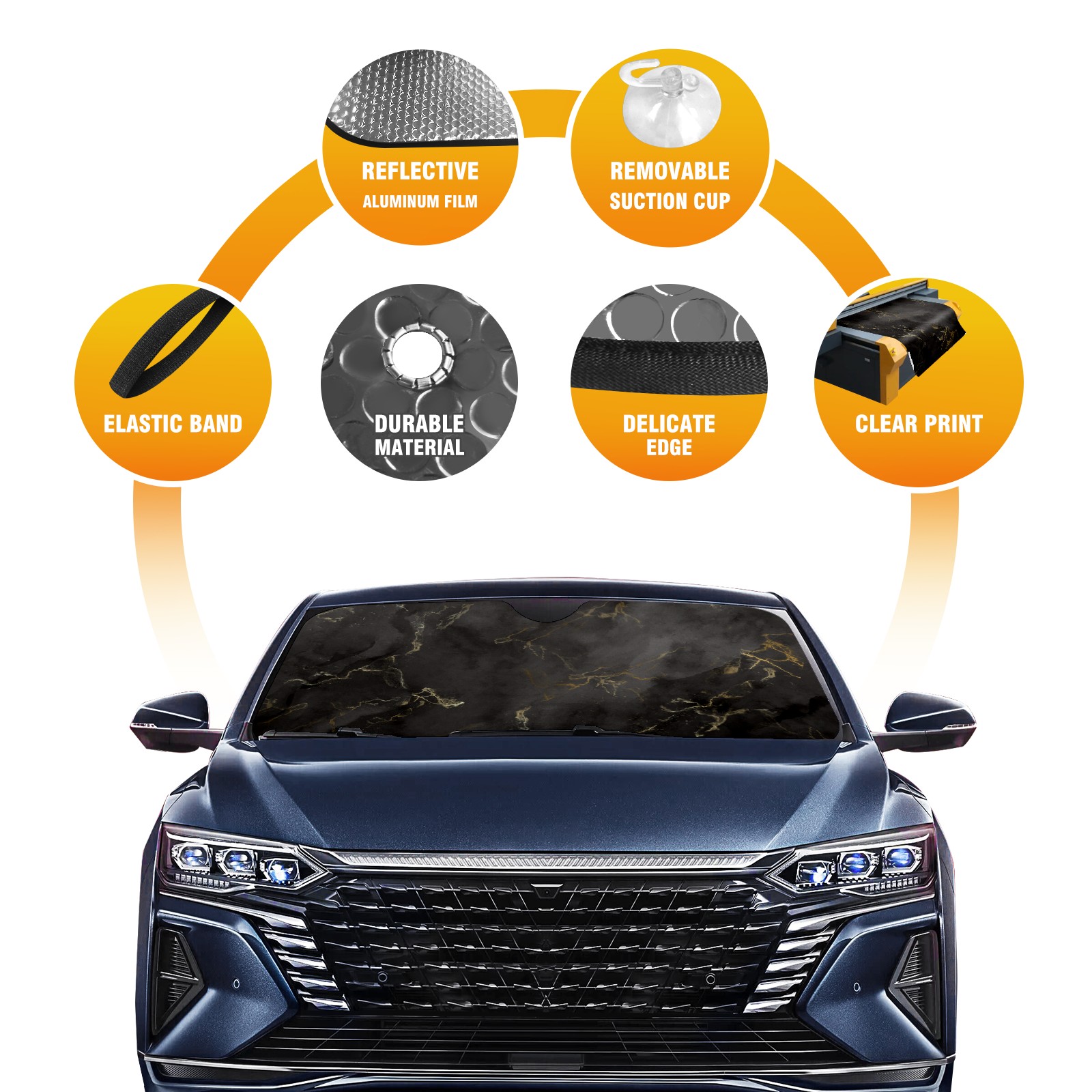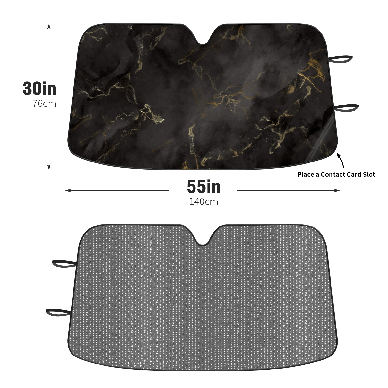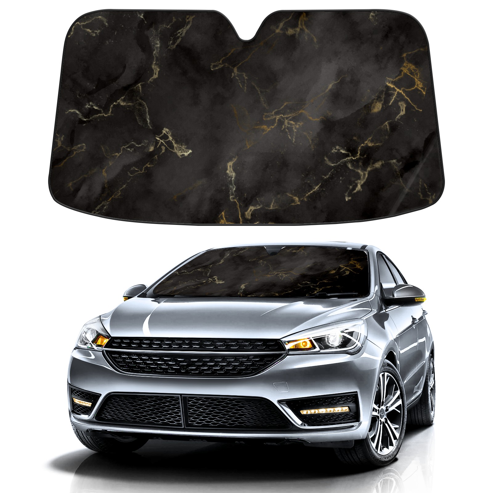 Car Windshield Sun Shade For Front Window Black And Gold Marble Foldable Vehicle Windshield Car Sun Visor Covers Automotive Window Protector Car Camping Privacy Sun Blocker
