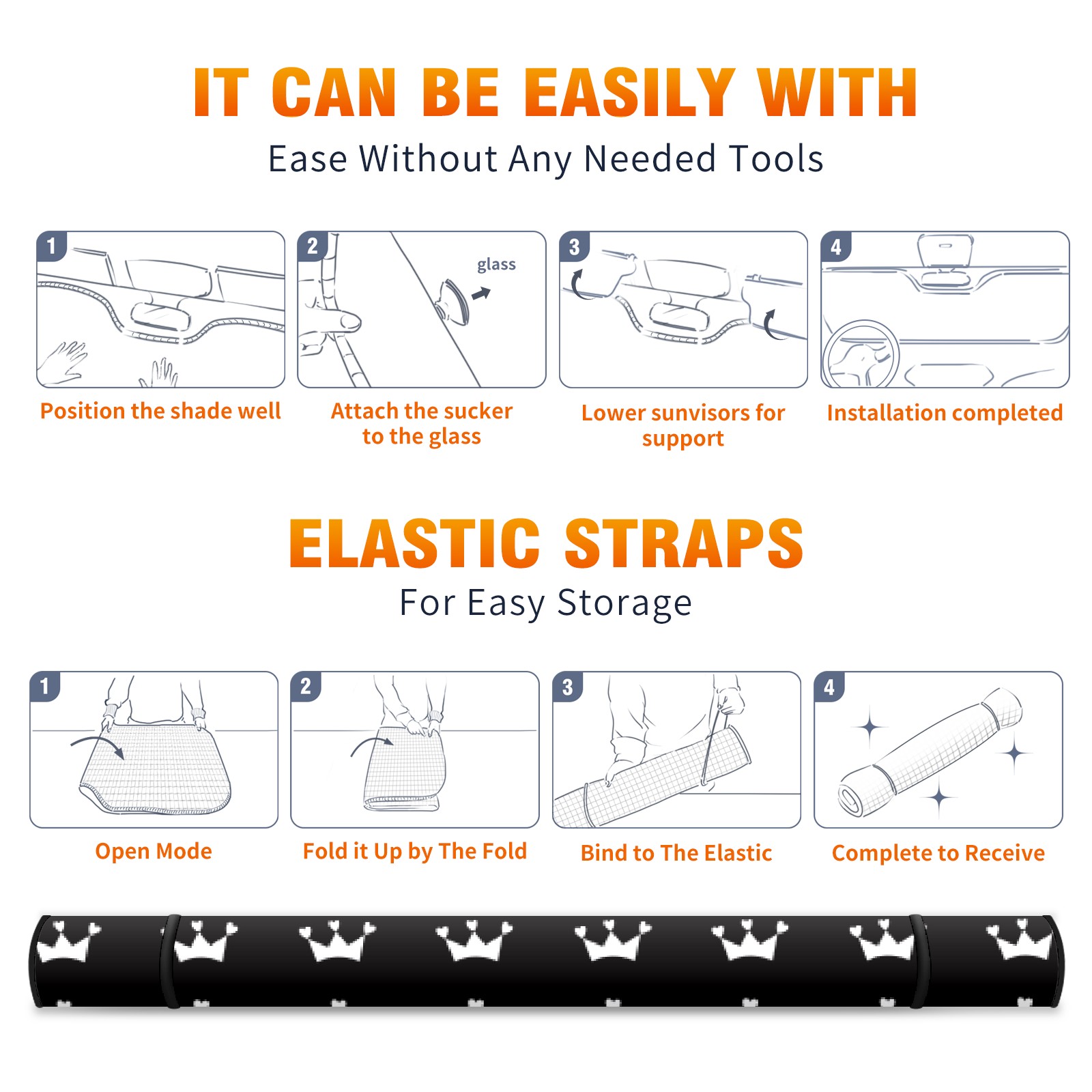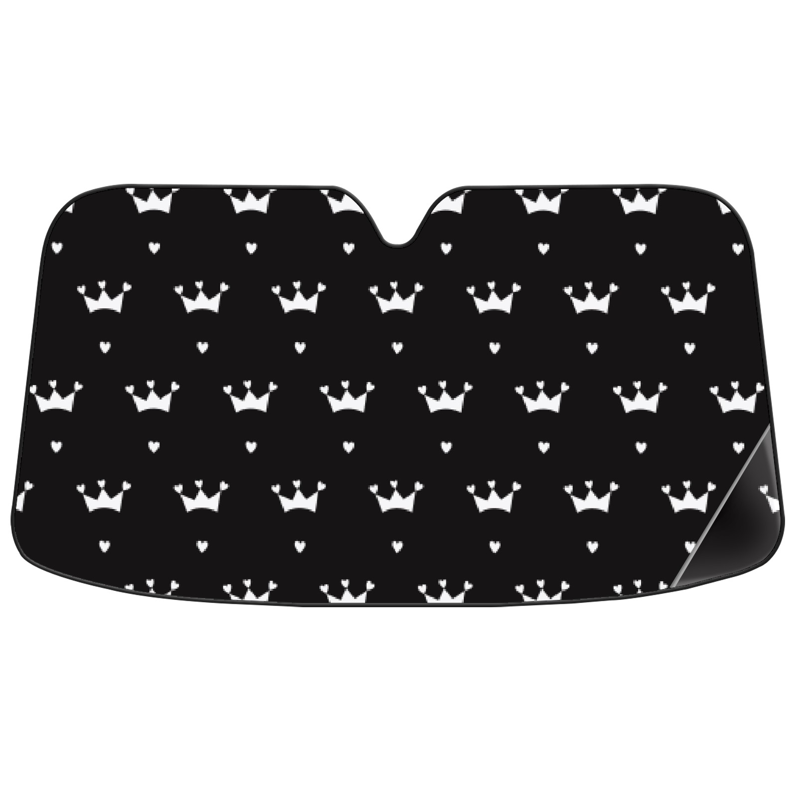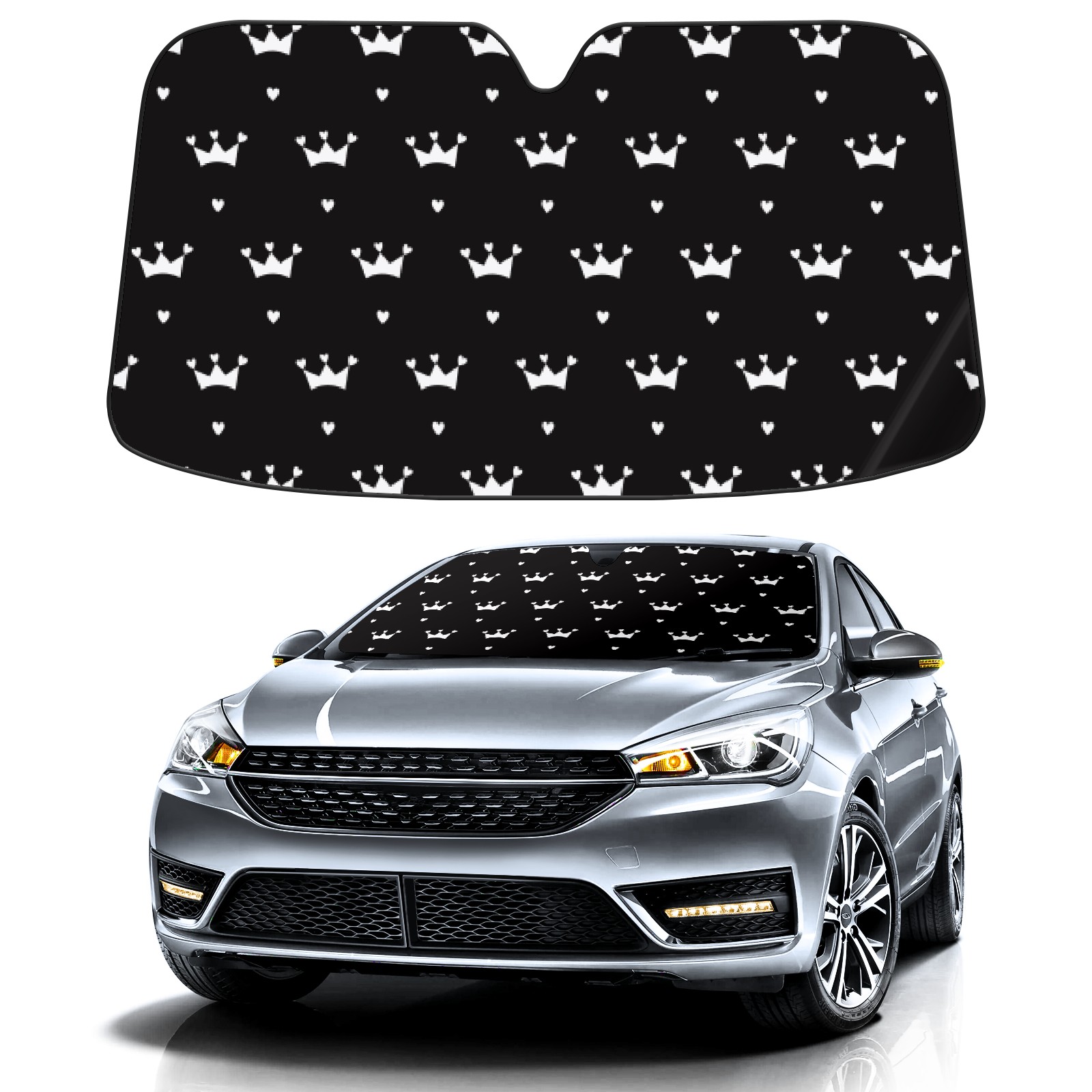 Car Windshield Sun Shade For Front Window Black And White Crown Heart Foldable Vehicle Windshield Car Sun Visor Covers Automotive Window Protector Car Camping Privacy Sun Blocker