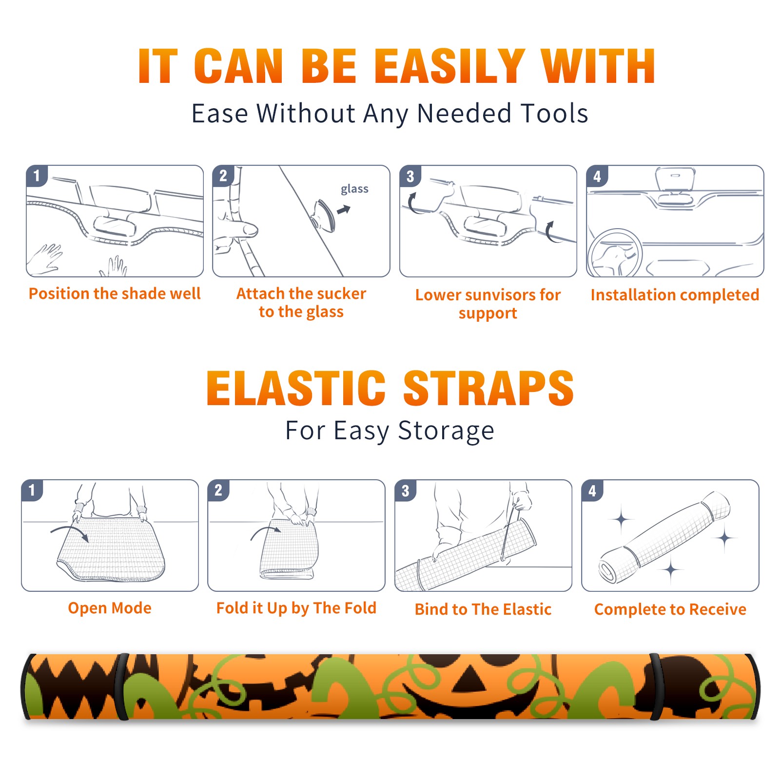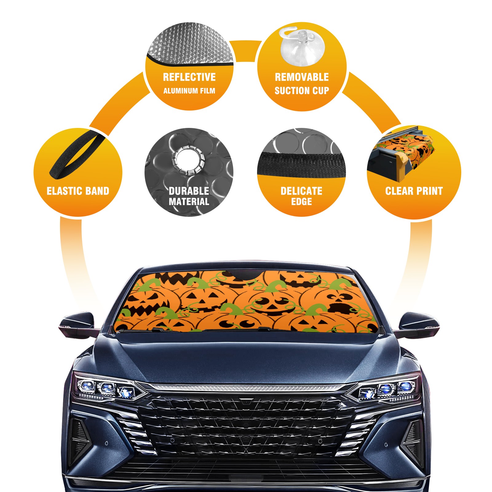 Car Windshield Sun Shade For Front Window Autumn Pumpkins Foldable Vehicle Windshield Car Sun Visor Covers Automotive Window Protector Car Camping Privacy Sun Blocker