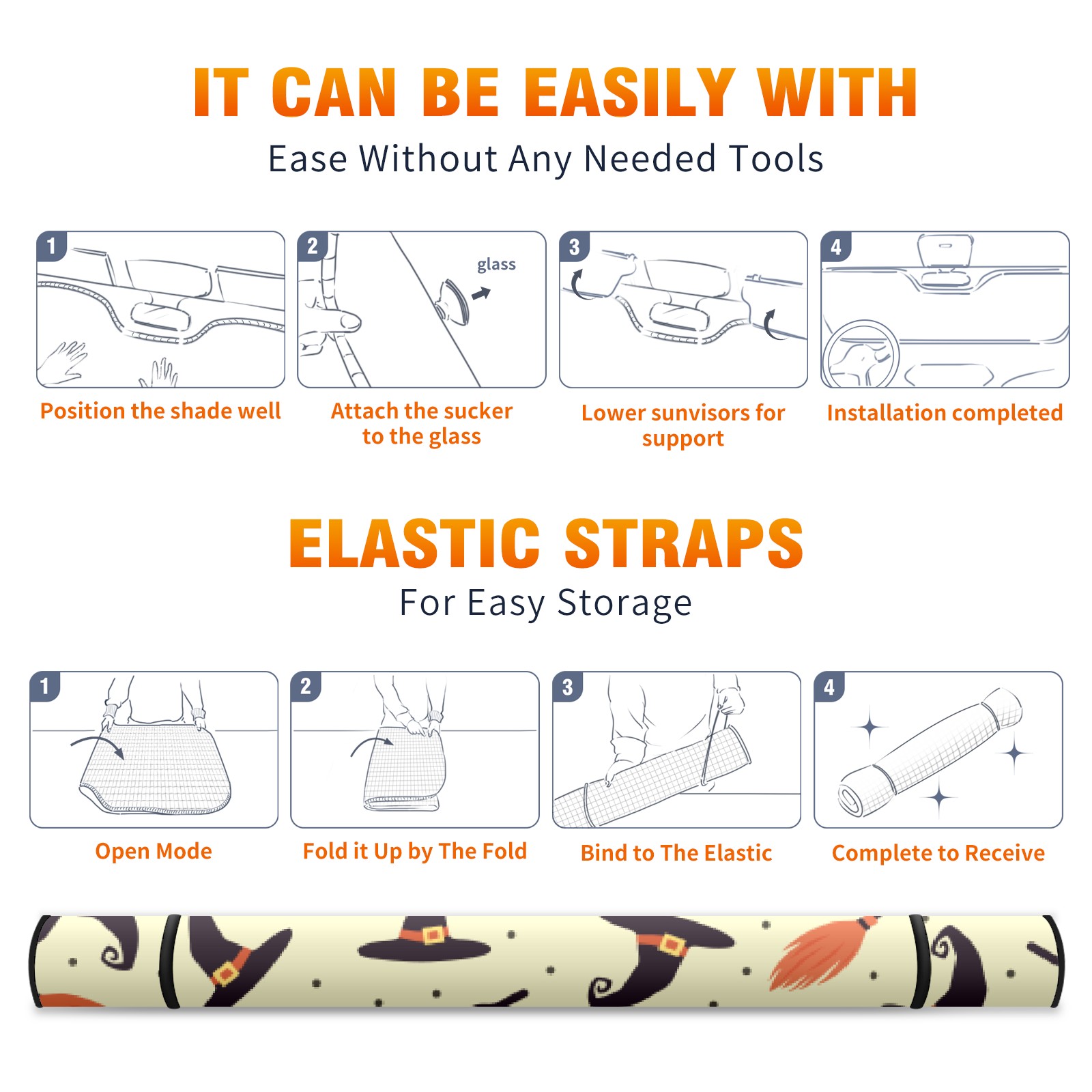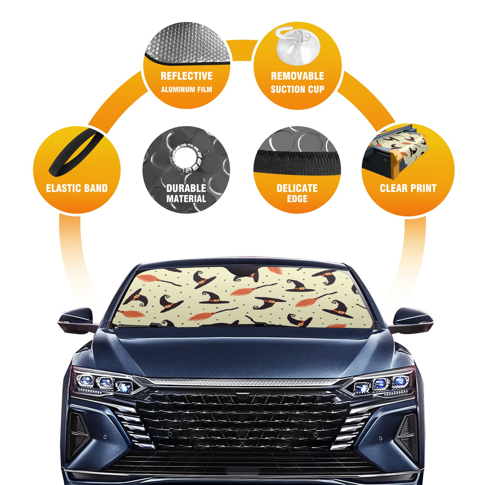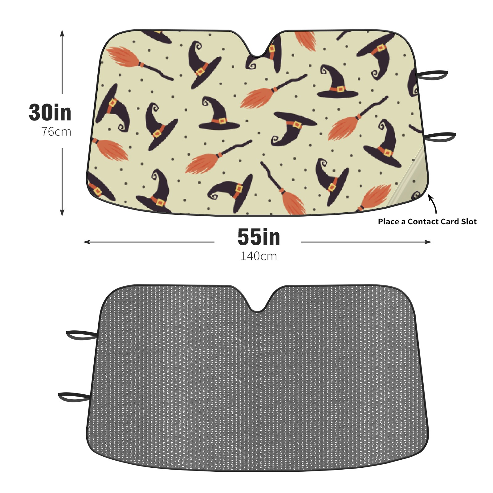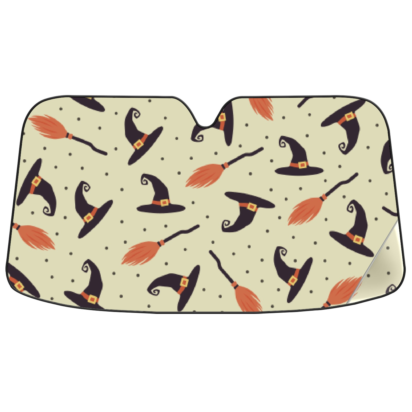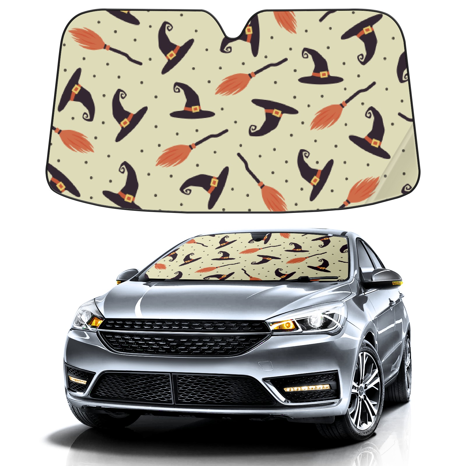Car Windshield Sun Shade For Front Window Halloween Hat Brooms Candy Foldable Vehicle Windshield Car Sun Visor Covers Automotive Window Protector Car Camping Privacy Sun Blocker