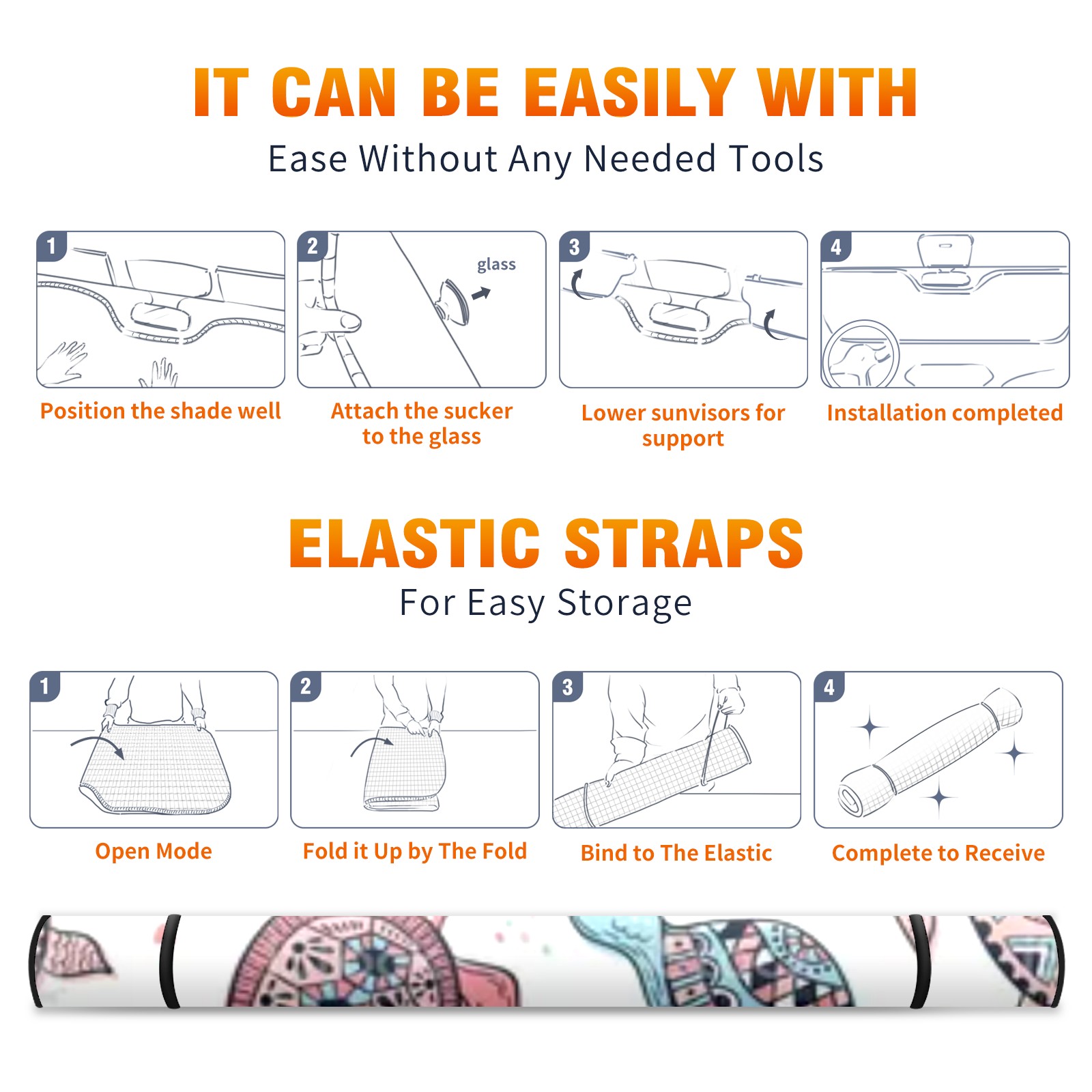 • Diameter /Size 63"L x 33.5"W Made from excellent materials which makes it sturdy and protects the car from the sun. Easy to use and pack. Makes the interior of the car cooler.You can easily stash the sunshade in the storage bag or store long term.It open and closes easy. Also the leather storage bag is durable and easy to put the umbrella back into.This windshield sunshade provides complete coverage and keeps your car interior cool under direct sun. It is easy to open and position under the windshield and around the rear-view mirror. Makes Your Car Easy To Identify, Perfect For Finding Your Car In Crowded Parking Lots And Garages.Great Choice: It Is A Great Gift For Dad, Boyfriend, Brother, Brother And Uncle, Friends, Classmates, Family And So On. Notice: Due To Difference Computer Monitors, The Color Maybe Slightly Different From Picture. As Different Measurement Methods, Measurement Data Will Float Within 2%.I Hope You Understand. If You Have Any Question About The Item Please Do Not Hesitate To Contact Us Immediately And We Will Give You A Satisfactory Reply Within 24 Hours.