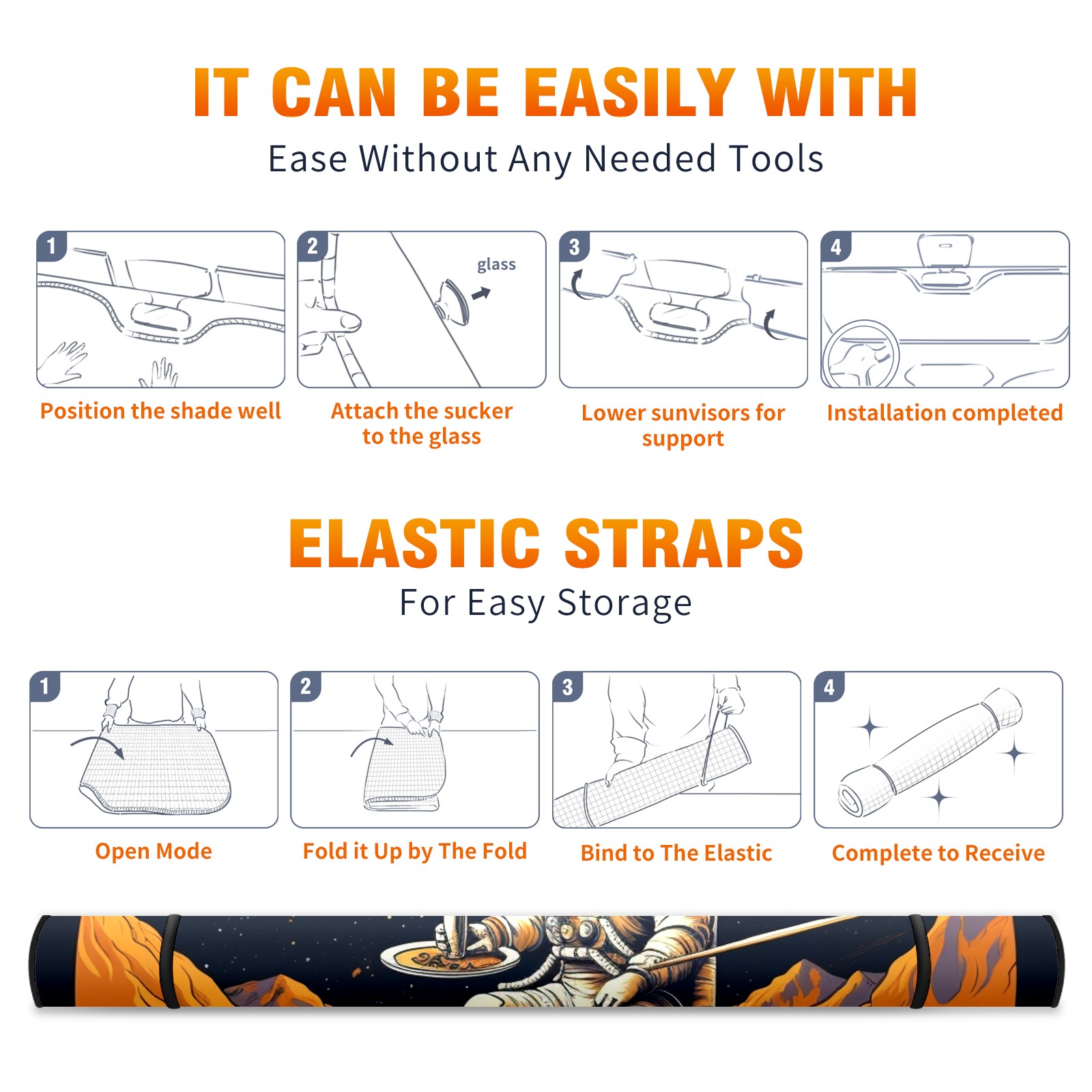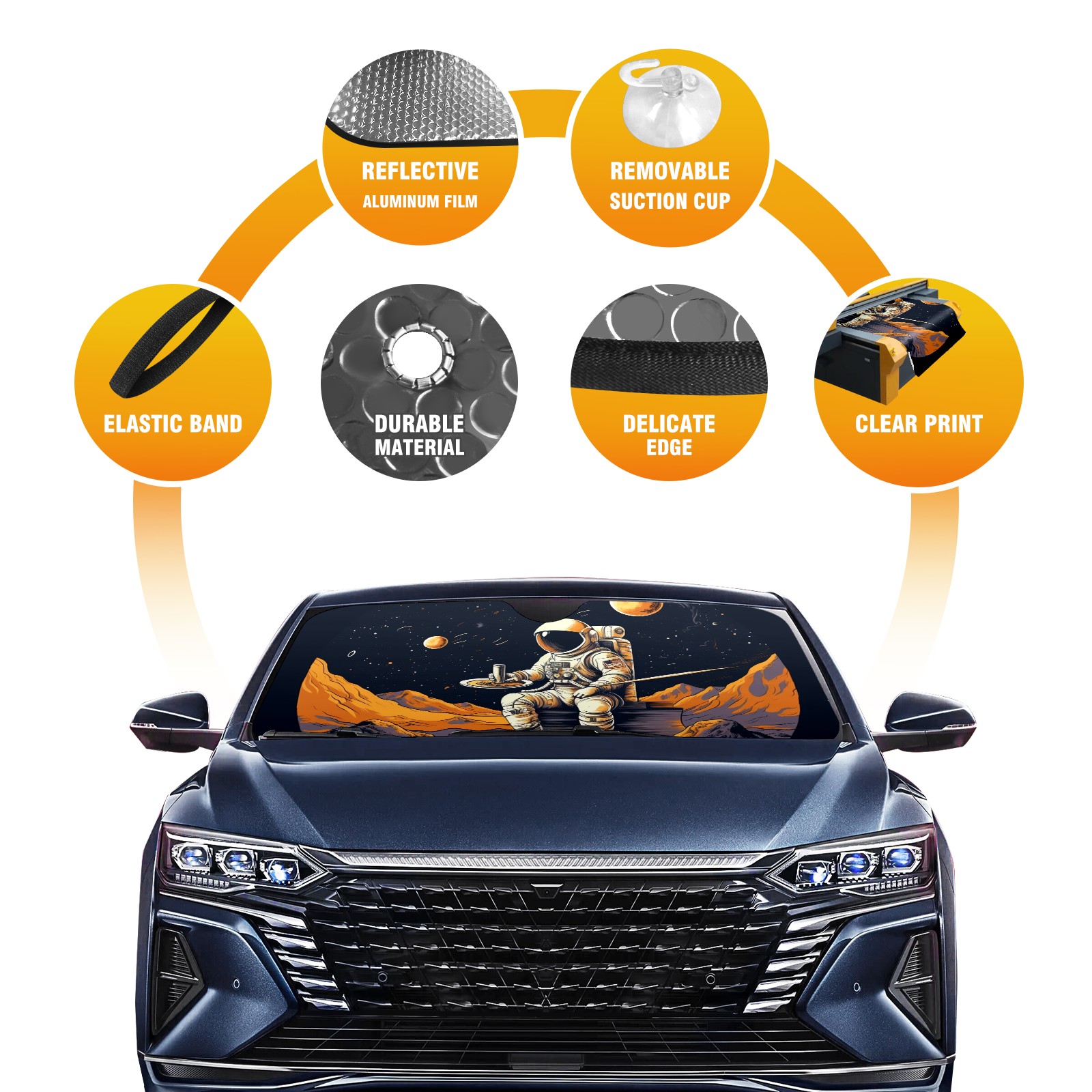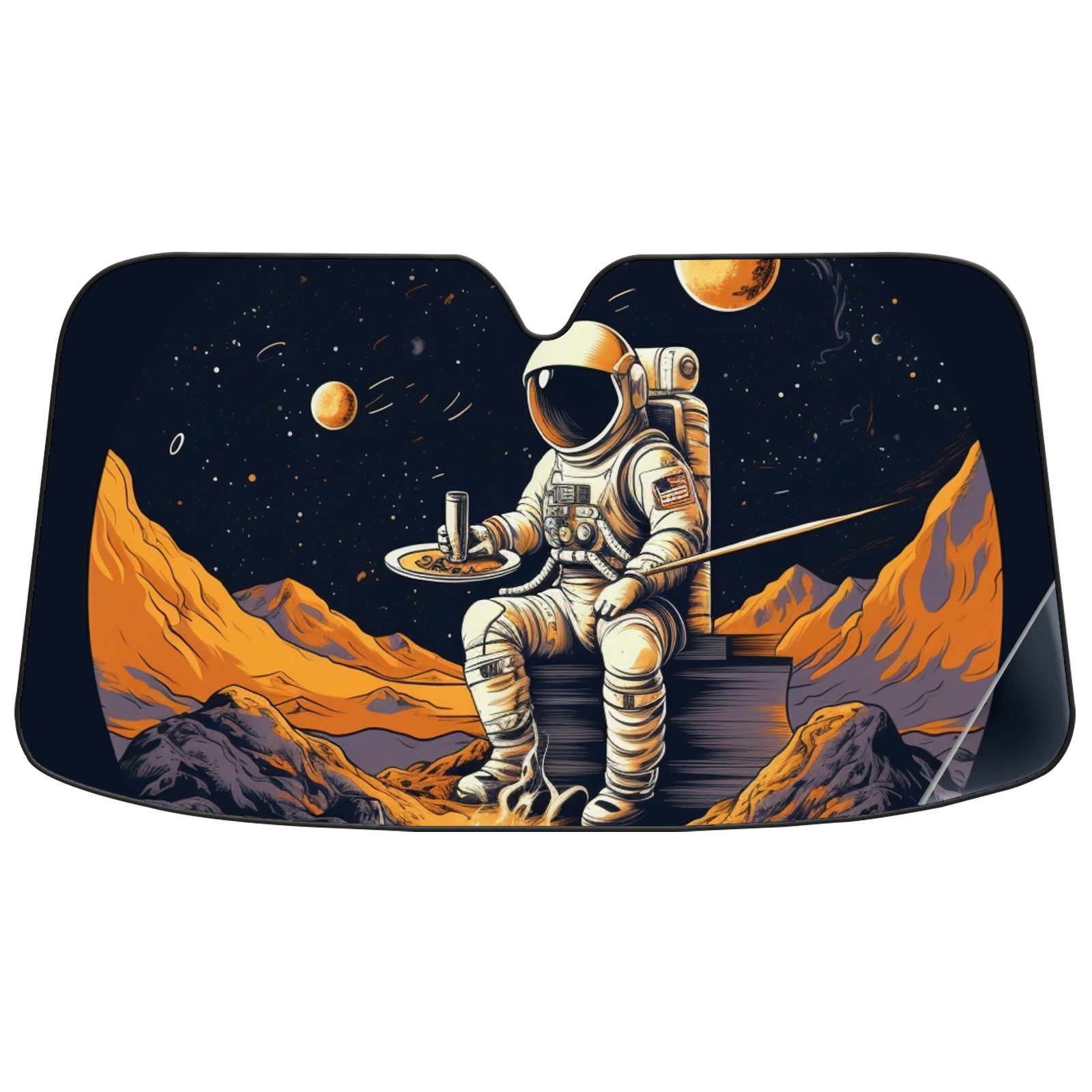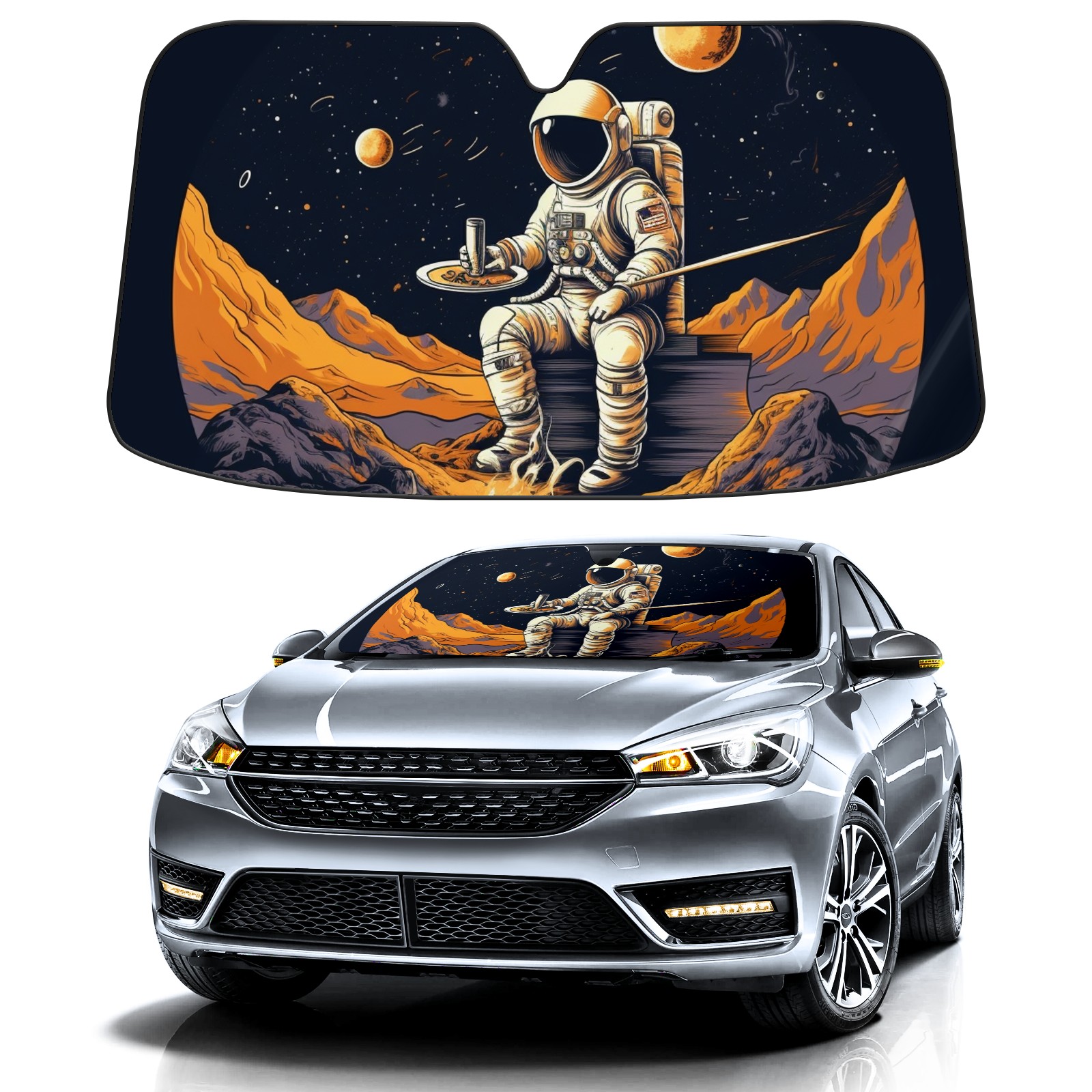 Car Windshield Sun Shade For Front Window Astronaut Bonfire Foldable Vehicle Windshield Car Sun Visor Covers Automotive Window Protector Car Camping Privacy Sun Blocker