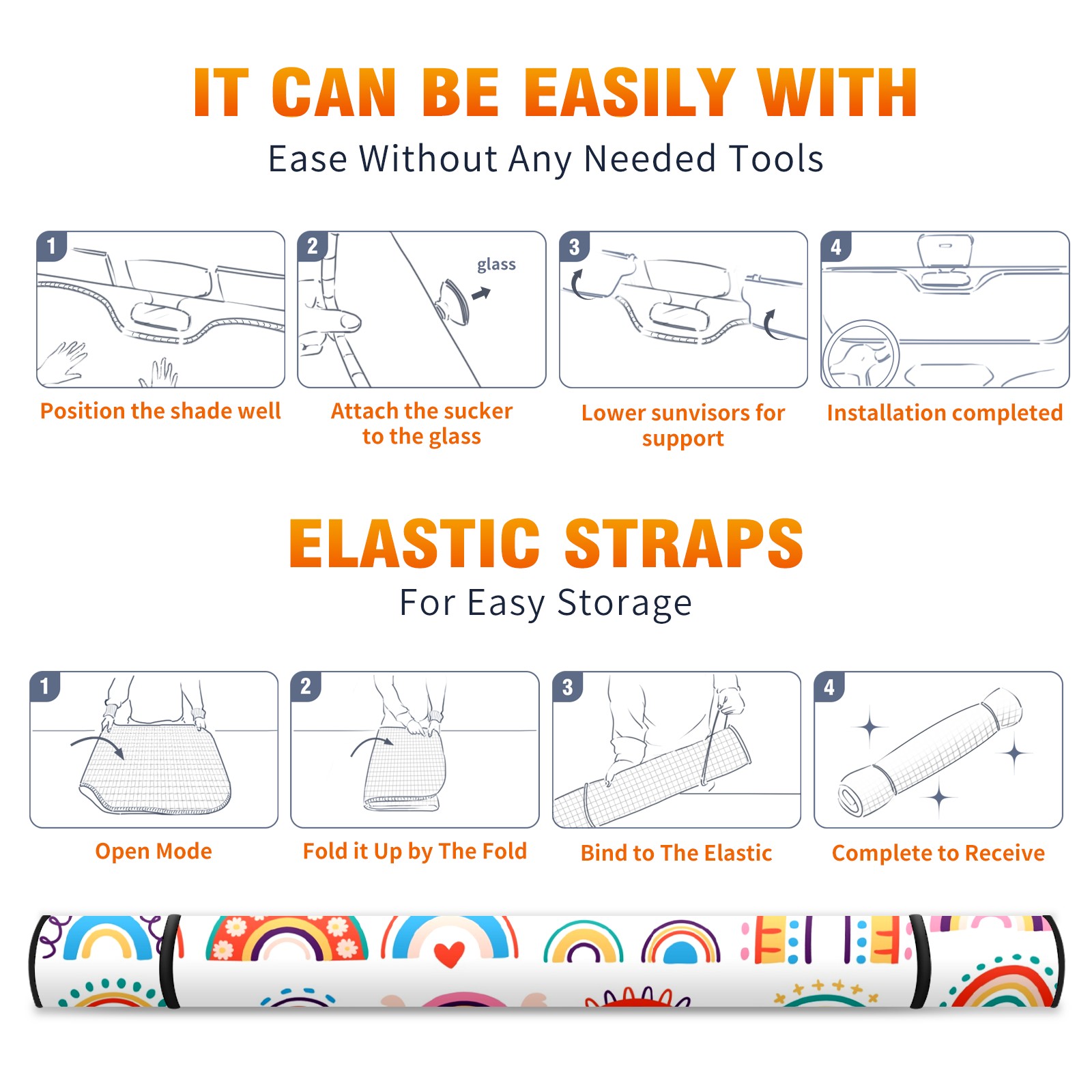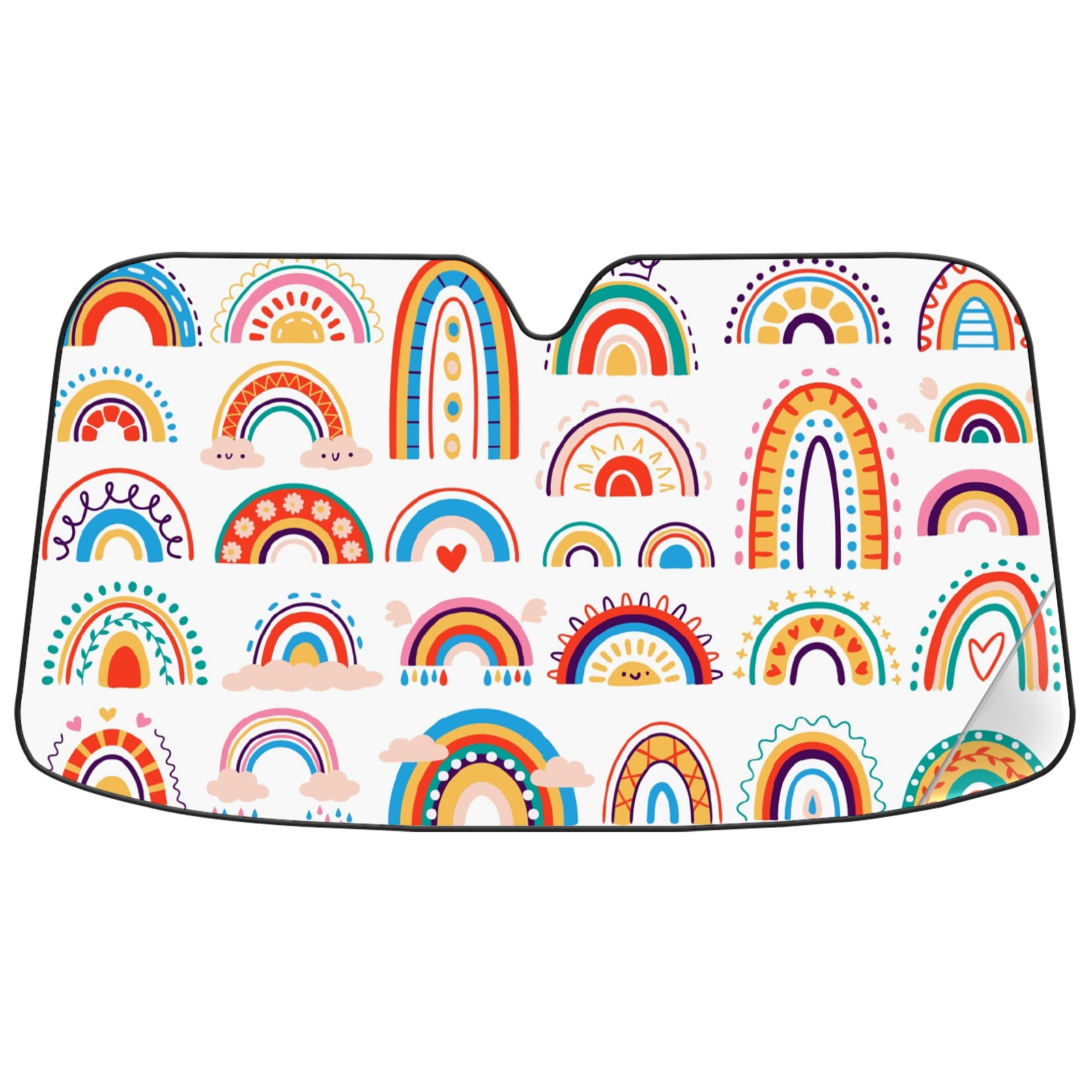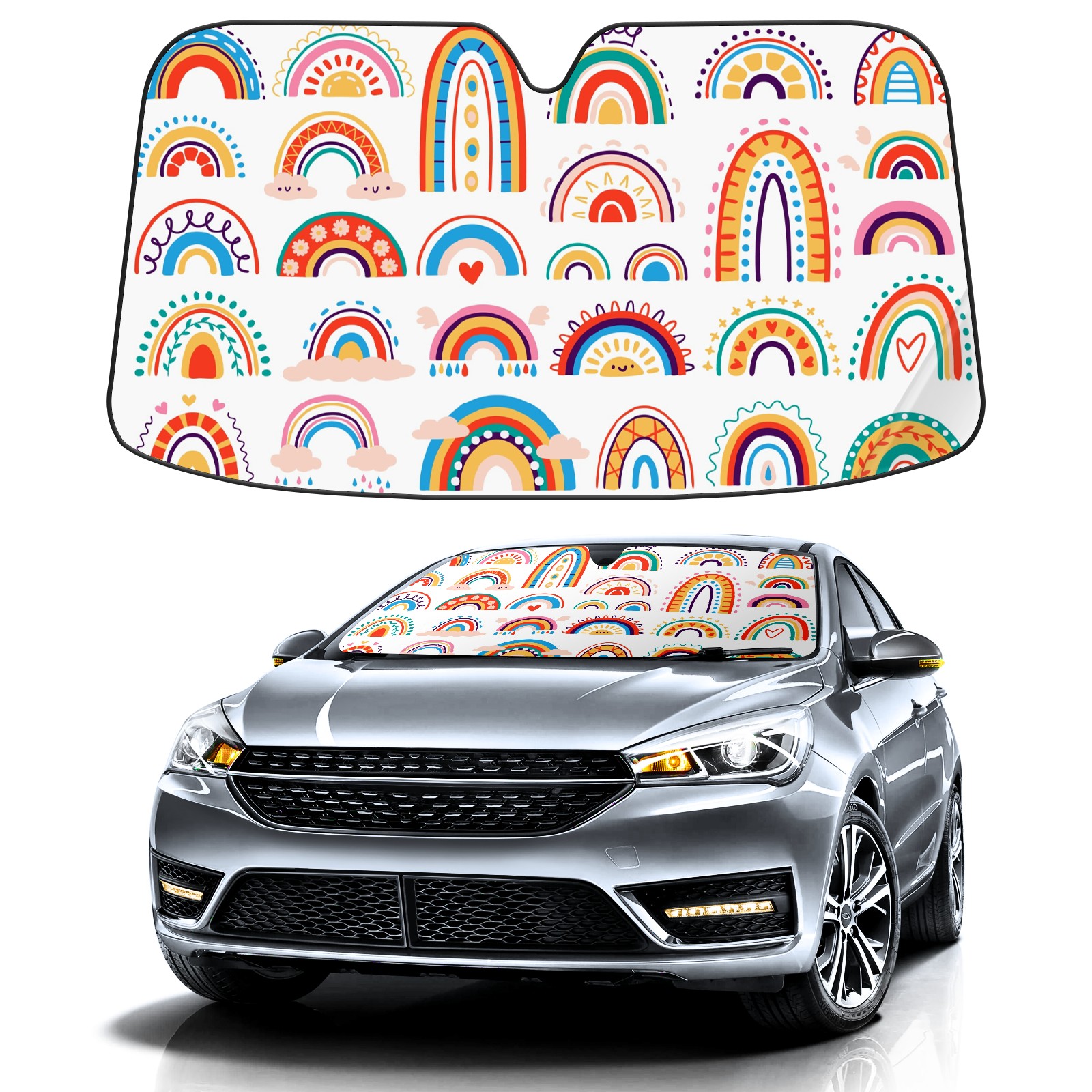Car Windshield Sun Shade For Front Window Rainbow Boho Foldable Vehicle Windshield Car Sun Visor Covers Automotive Window Protector Car Camping Privacy Sun Blocker