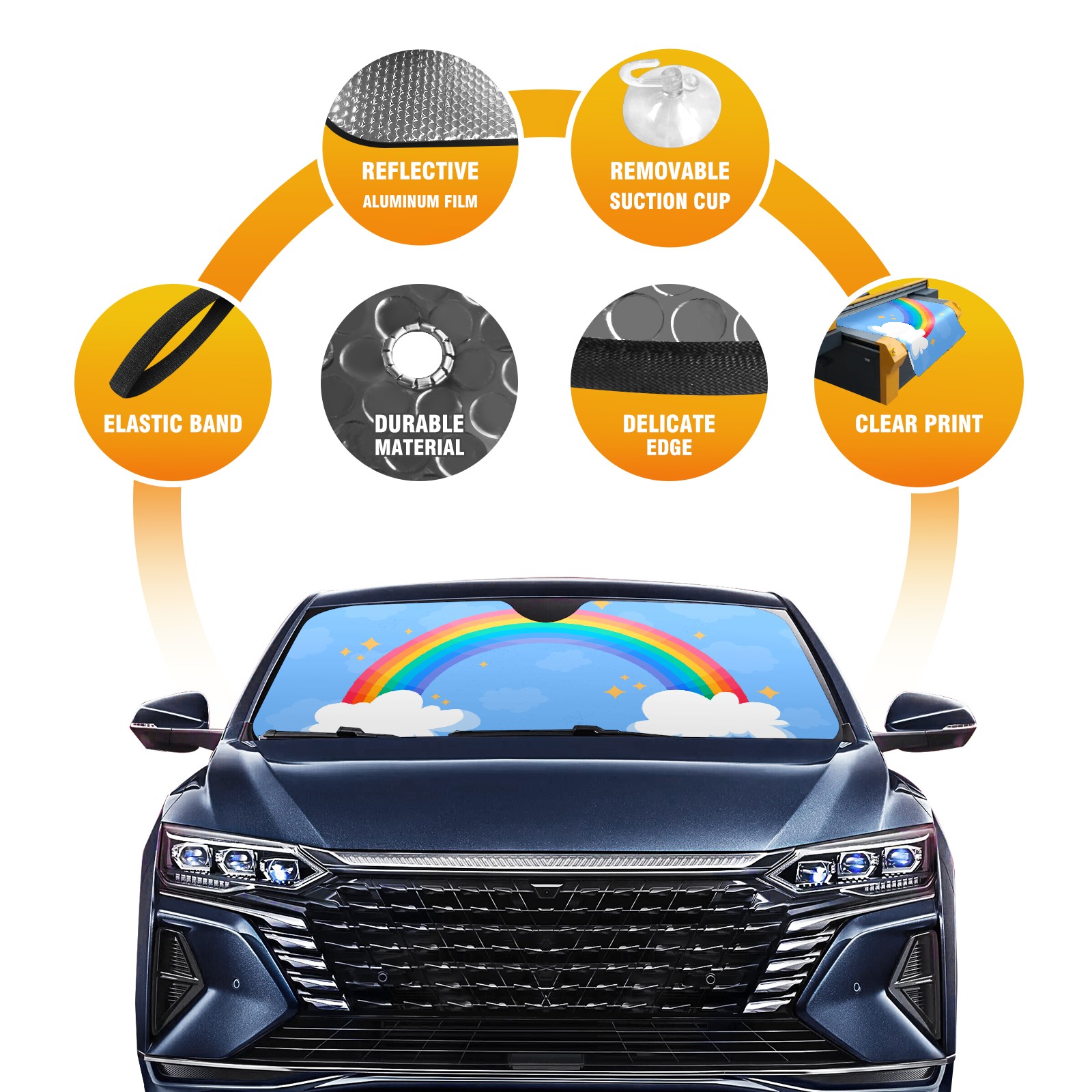 Car Windshield Sun Shade For Front Window Rainbow Blue Sky Foldable Vehicle Windshield Car Sun Visor Covers Automotive Window Protector Car Camping Privacy Sun Blocker