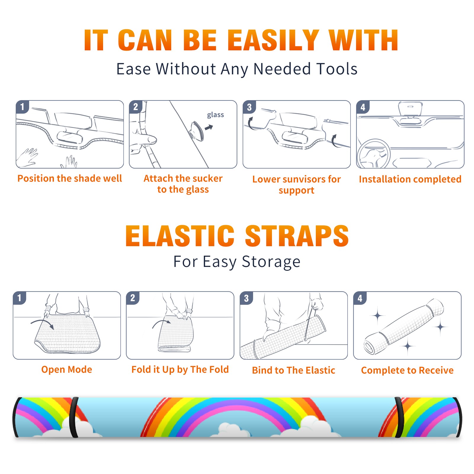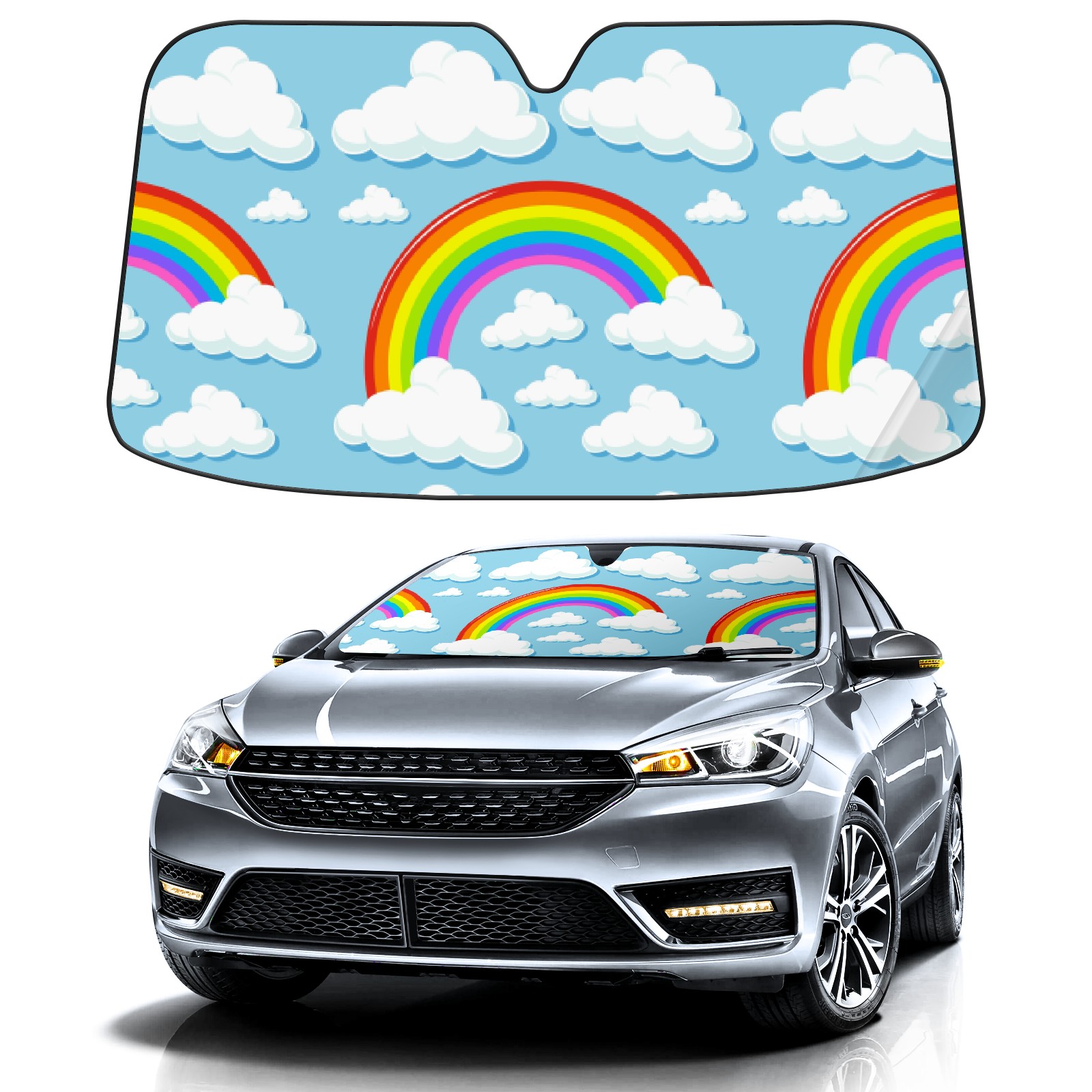 Car Windshield Sun Shade For Front Window Colorful Rainbow Sky Foldable Vehicle Windshield Car Sun Visor Covers Automotive Window Protector Car Camping Privacy Sun Blocker