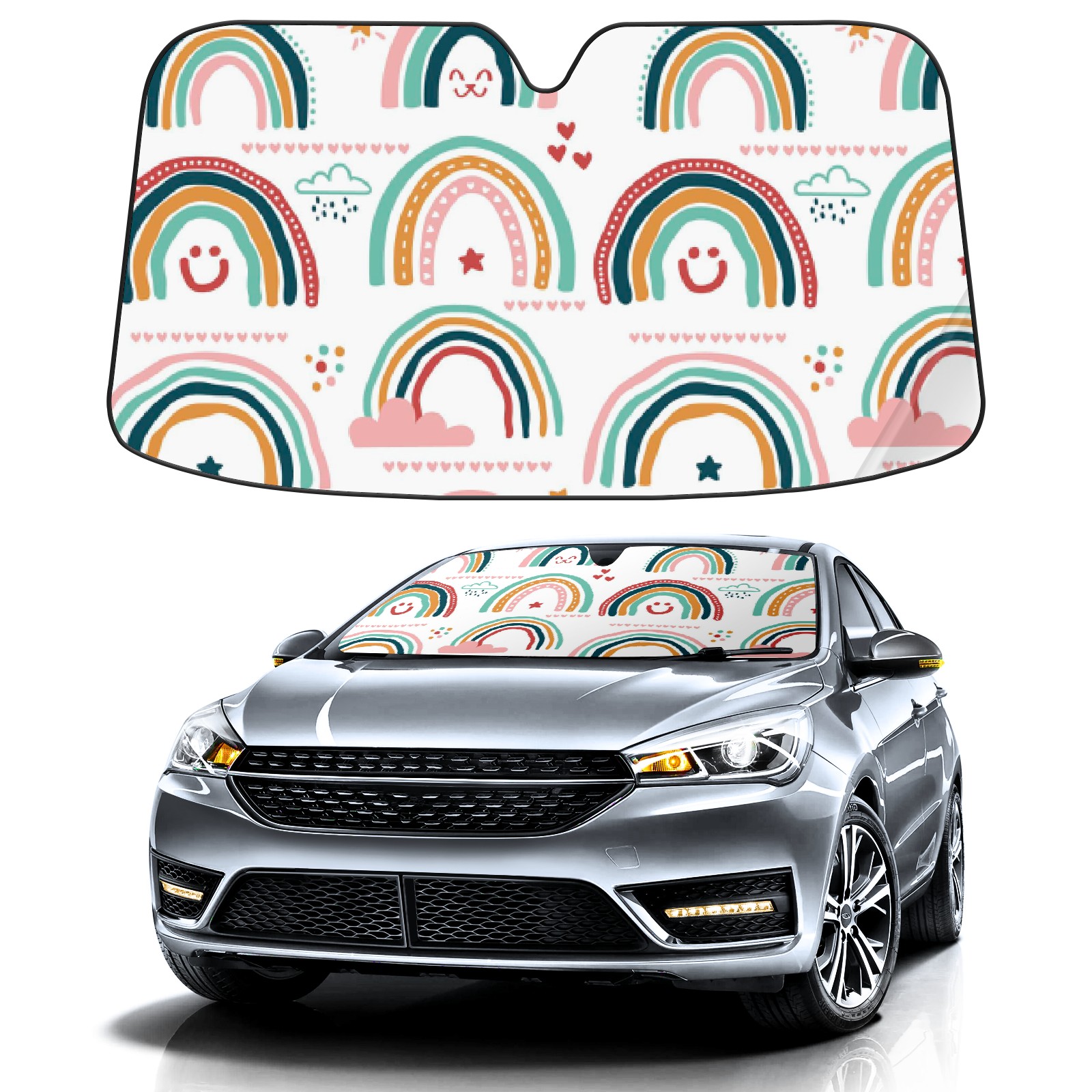 Car Windshield Sun Shade For Front Window Colorful Rainbow Boho Ethnic Foldable Vehicle Windshield Car Sun Visor Covers Automotive Window Protector Car Camping Privacy Sun Blocker