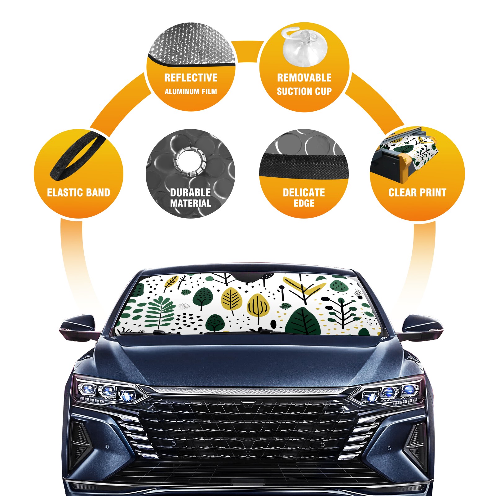 • Diameter /Size 63"L x 33.5"W Made from excellent materials which makes it sturdy and protects the car from the sun. Easy to use and pack. Makes the interior of the car cooler.You can easily stash the sunshade in the storage bag or store long term.It open and closes easy. Also the leather storage bag is durable and easy to put the umbrella back into.This windshield sunshade provides complete coverage and keeps your car interior cool under direct sun. It is easy to open and position under the windshield and around the rear-view mirror. Makes Your Car Easy To Identify, Perfect For Finding Your Car In Crowded Parking Lots And Garages.Great Choice: It Is A Great Gift For Dad, Boyfriend, Brother, Brother And Uncle, Friends, Classmates, Family And So On. Notice: Due To Difference Computer Monitors, The Color Maybe Slightly Different From Picture. As Different Measurement Methods, Measurement Data Will Float Within 2%.I Hope You Understand. If You Have Any Question About The Item Please Do Not Hesitate To Contact Us Immediately And We Will Give You A Satisfactory Reply Within 24 Hours.