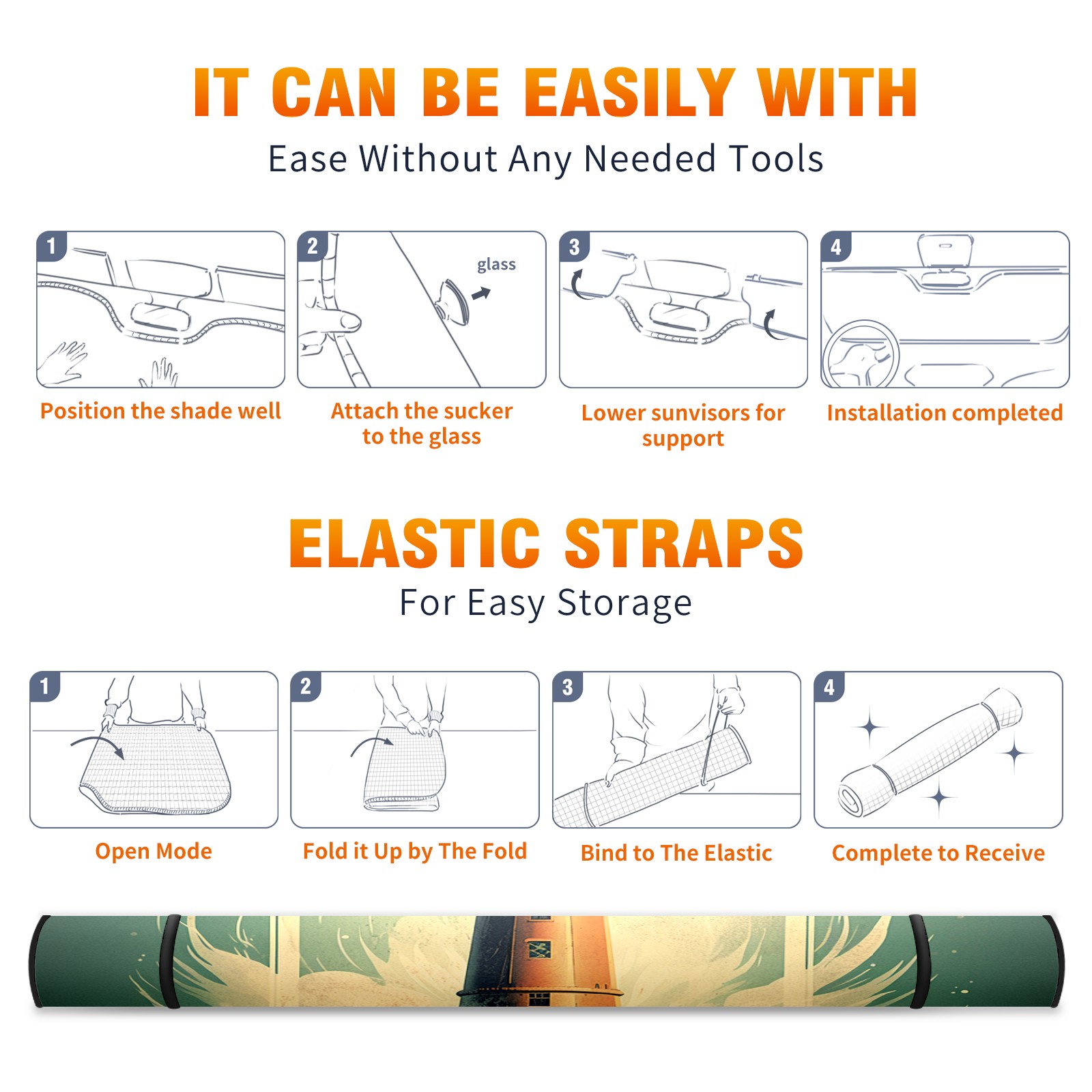• Diameter /Size 63"L x 33.5"W Made from excellent materials which makes it sturdy and protects the car from the sun. Easy to use and pack. Makes the interior of the car cooler.You can easily stash the sunshade in the storage bag or store long term.It open and closes easy. Also the leather storage bag is durable and easy to put the umbrella back into.This windshield sunshade provides complete coverage and keeps your car interior cool under direct sun. It is easy to open and position under the windshield and around the rear-view mirror. Makes Your Car Easy To Identify, Perfect For Finding Your Car In Crowded Parking Lots And Garages.Great Choice: It Is A Great Gift For Dad, Boyfriend, Brother, Brother And Uncle, Friends, Classmates, Family And So On. Notice: Due To Difference Computer Monitors, The Color Maybe Slightly Different From Picture. As Different Measurement Methods, Measurement Data Will Float Within 2%.I Hope You Understand. If You Have Any Question About The Item Please Do Not Hesitate To Contact Us Immediately And We Will Give You A Satisfactory Reply Within 24 Hours.