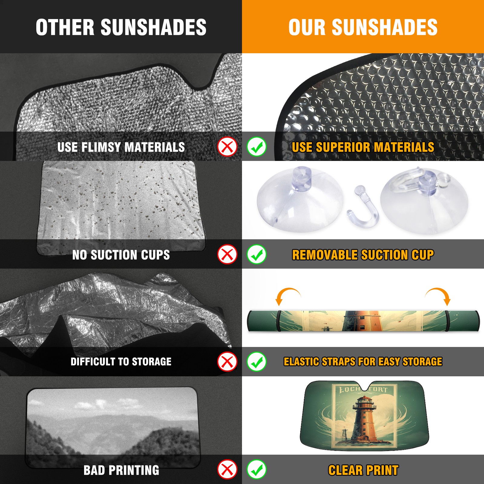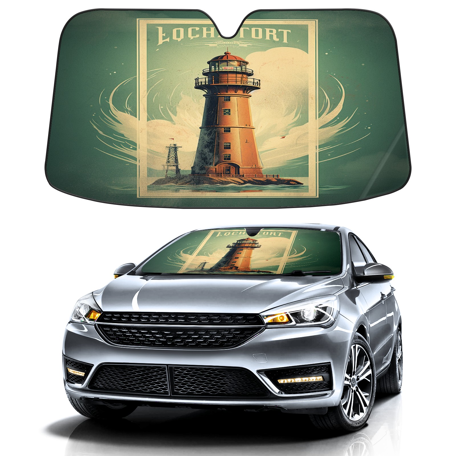 Car Windshield Sun Shade For Front Window Retro Lighthouse Foldable Vehicle Windshield Car Sun Visor Covers Automotive Window Protector Car Camping Privacy Sun Blocker