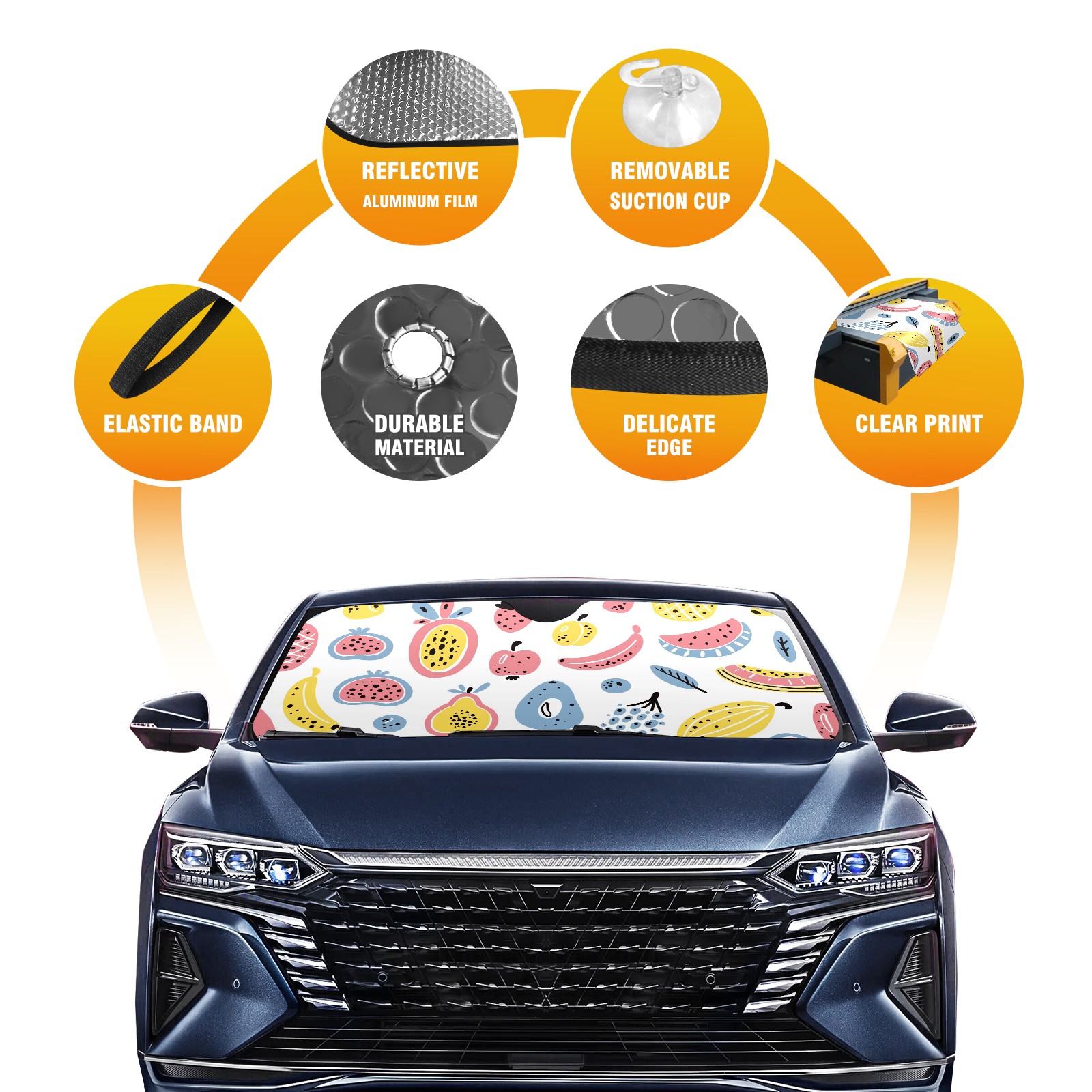 Car Windshield Sun Shade For Front Window Tropical Fruits Foldable Vehicle Windshield Car Sun Visor Covers Automotive Window Protector Car Camping Privacy Sun Blocker