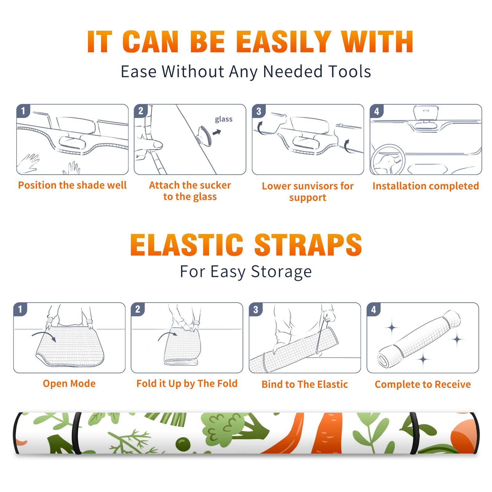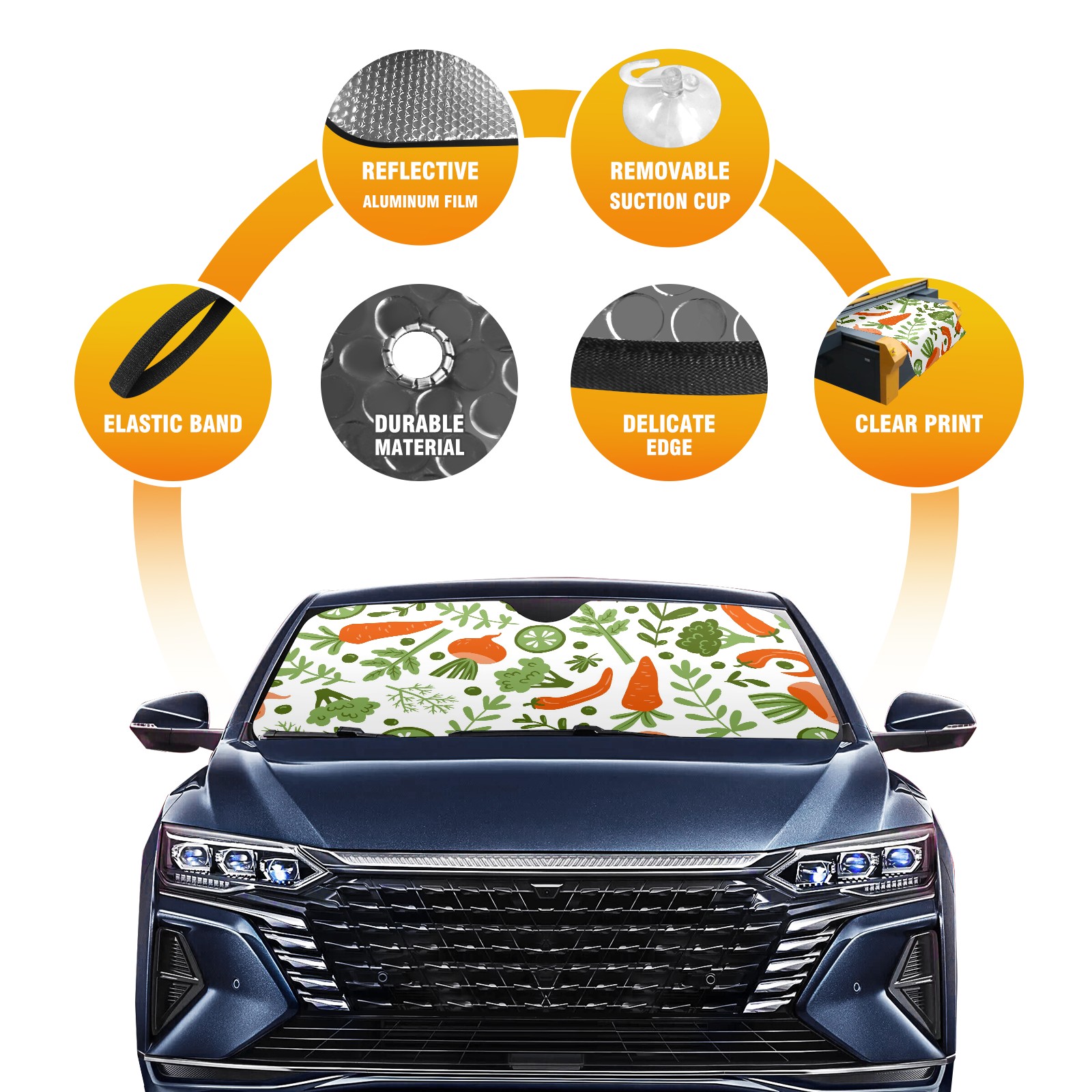Car Windshield Sun Shade For Front Window Vegetables Carrots Foldable Vehicle Windshield Car Sun Visor Covers Automotive Window Protector Car Camping Privacy Sun Blocker