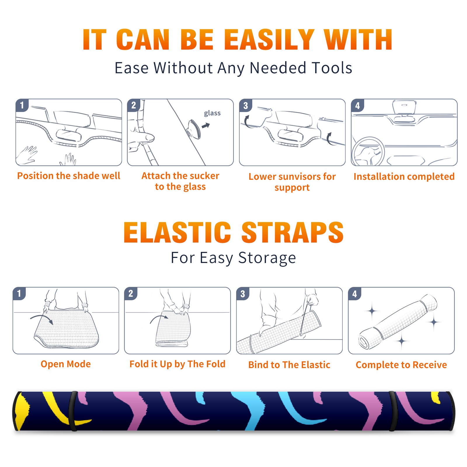 • Diameter /Size 63"L x 33.5"W Made from excellent materials which makes it sturdy and protects the car from the sun. Easy to use and pack. Makes the interior of the car cooler.You can easily stash the sunshade in the storage bag or store long term.It open and closes easy. Also the leather storage bag is durable and easy to put the umbrella back into.This windshield sunshade provides complete coverage and keeps your car interior cool under direct sun. It is easy to open and position under the windshield and around the rear-view mirror. Makes Your Car Easy To Identify, Perfect For Finding Your Car In Crowded Parking Lots And Garages.Great Choice: It Is A Great Gift For Dad, Boyfriend, Brother, Brother And Uncle, Friends, Classmates, Family And So On. Notice: Due To Difference Computer Monitors, The Color Maybe Slightly Different From Picture. As Different Measurement Methods, Measurement Data Will Float Within 2%.I Hope You Understand. If You Have Any Question About The Item Please Do Not Hesitate To Contact Us Immediately And We Will Give You A Satisfactory Reply Within 24 Hours.