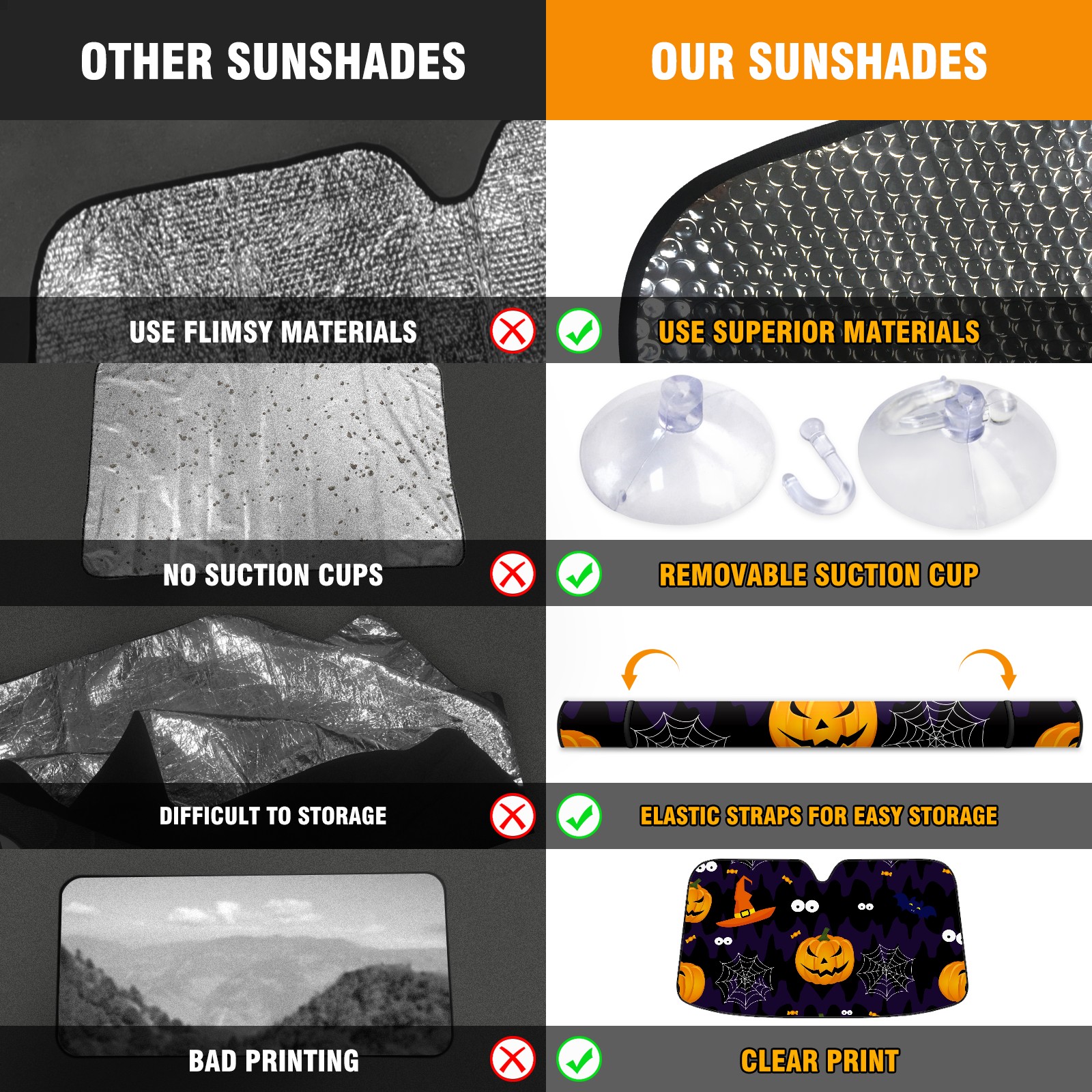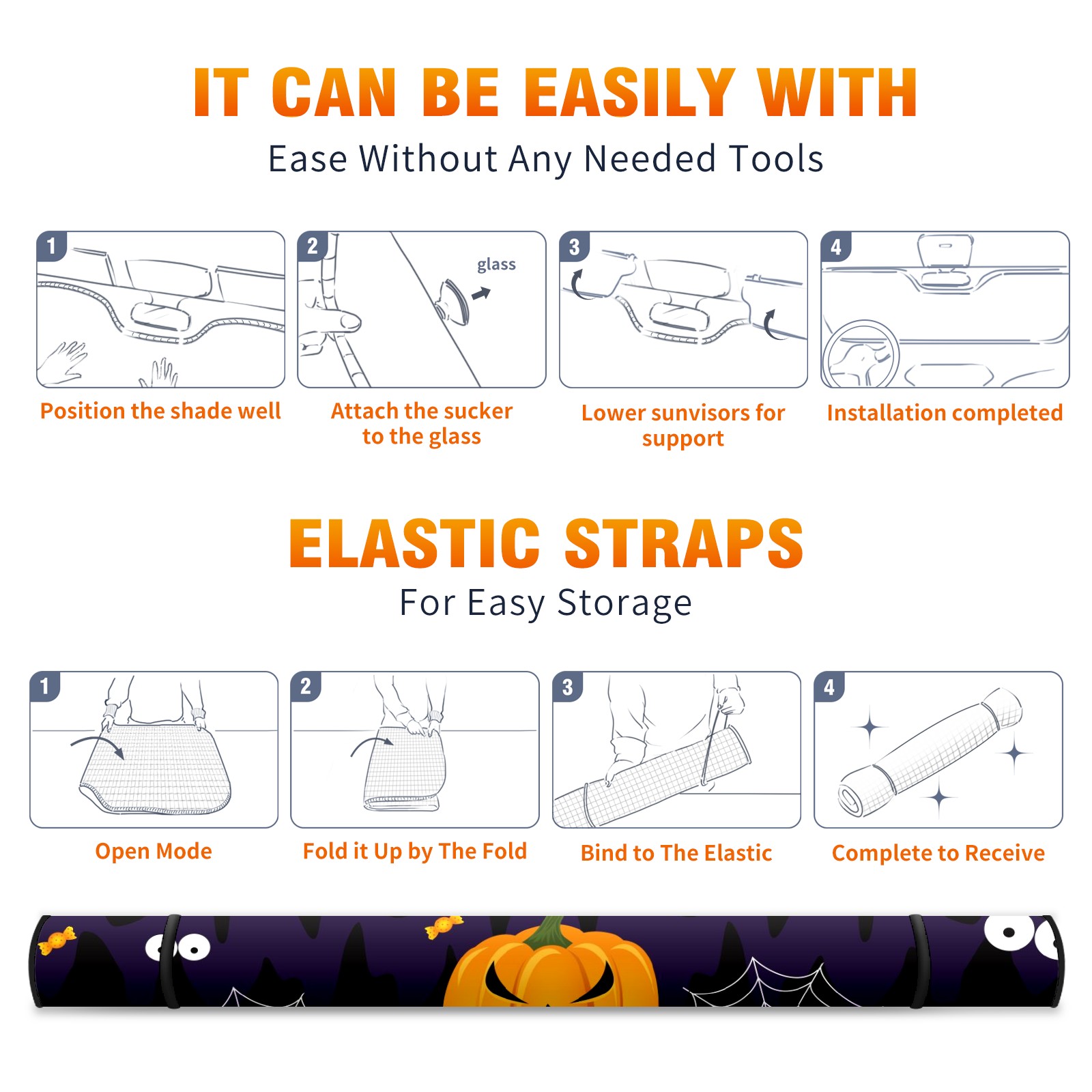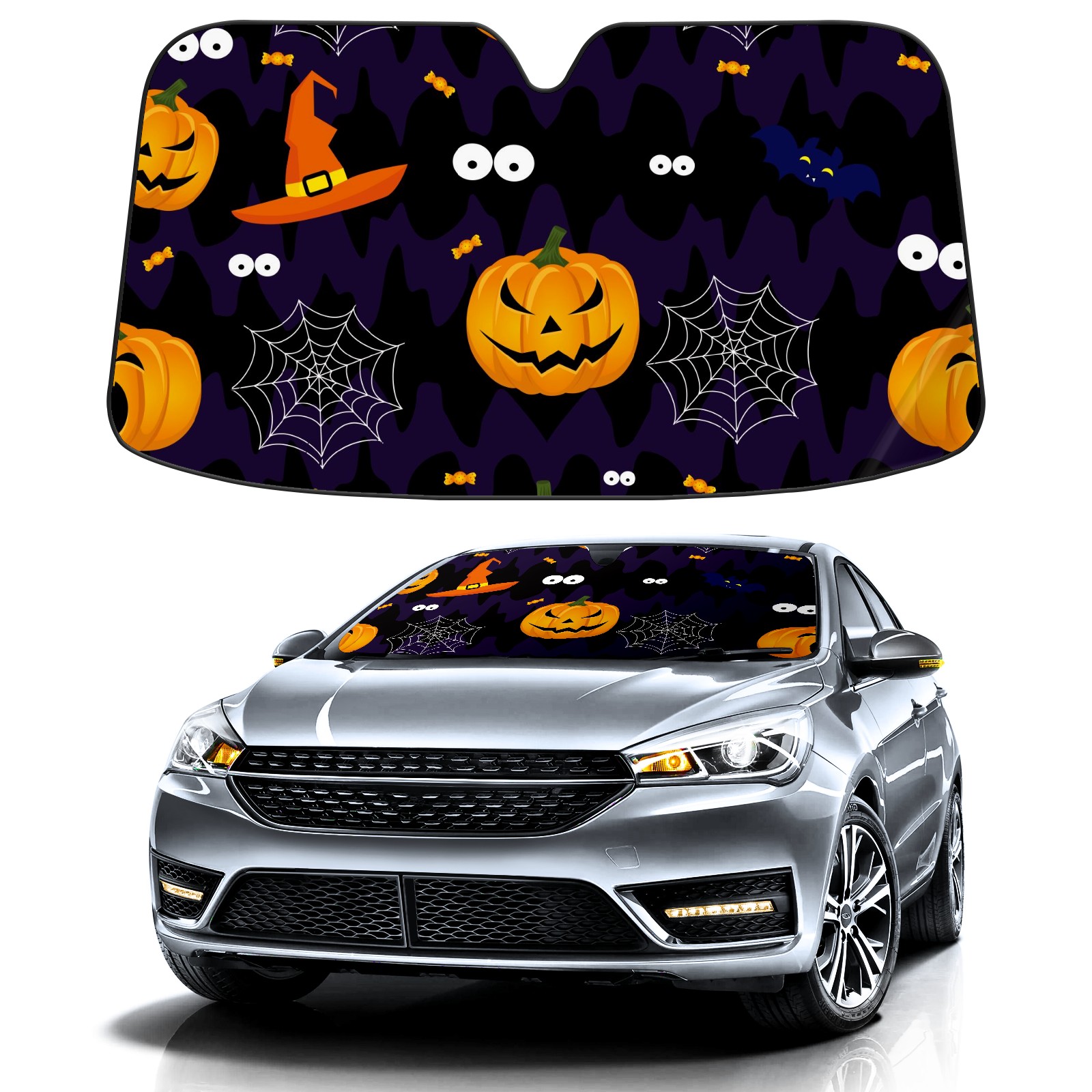 Car Windshield Sun Shade For Front Window Halloween Pumpkins Foldable Vehicle Windshield Car Sun Visor Covers Automotive Window Protector Car Camping Privacy Sun Blocker