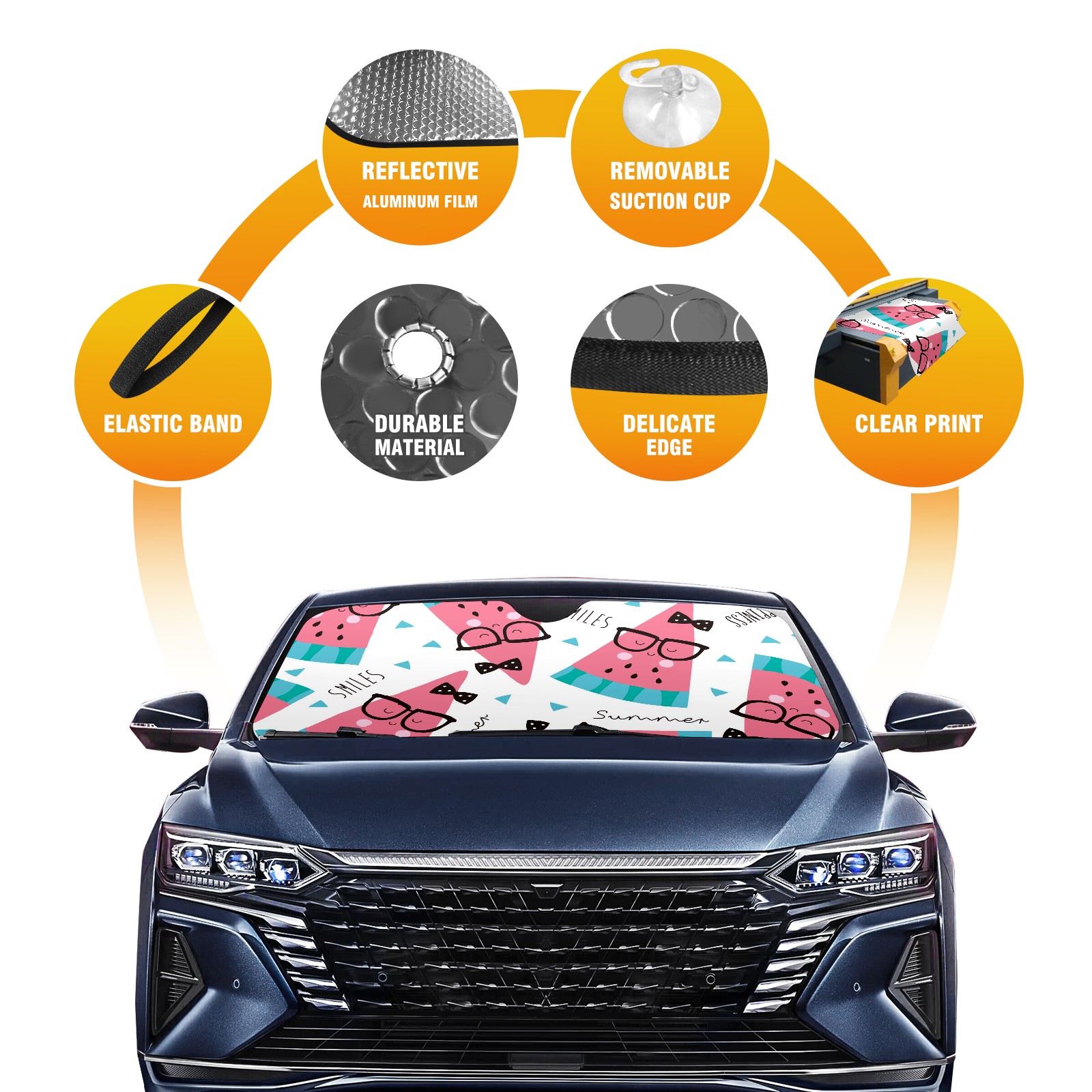 Car Windshield Sun Shade For Front Window Mr. Watermelon Foldable Vehicle Windshield Car Sun Visor Covers Automotive Window Protector Car Camping Privacy Sun Blocker