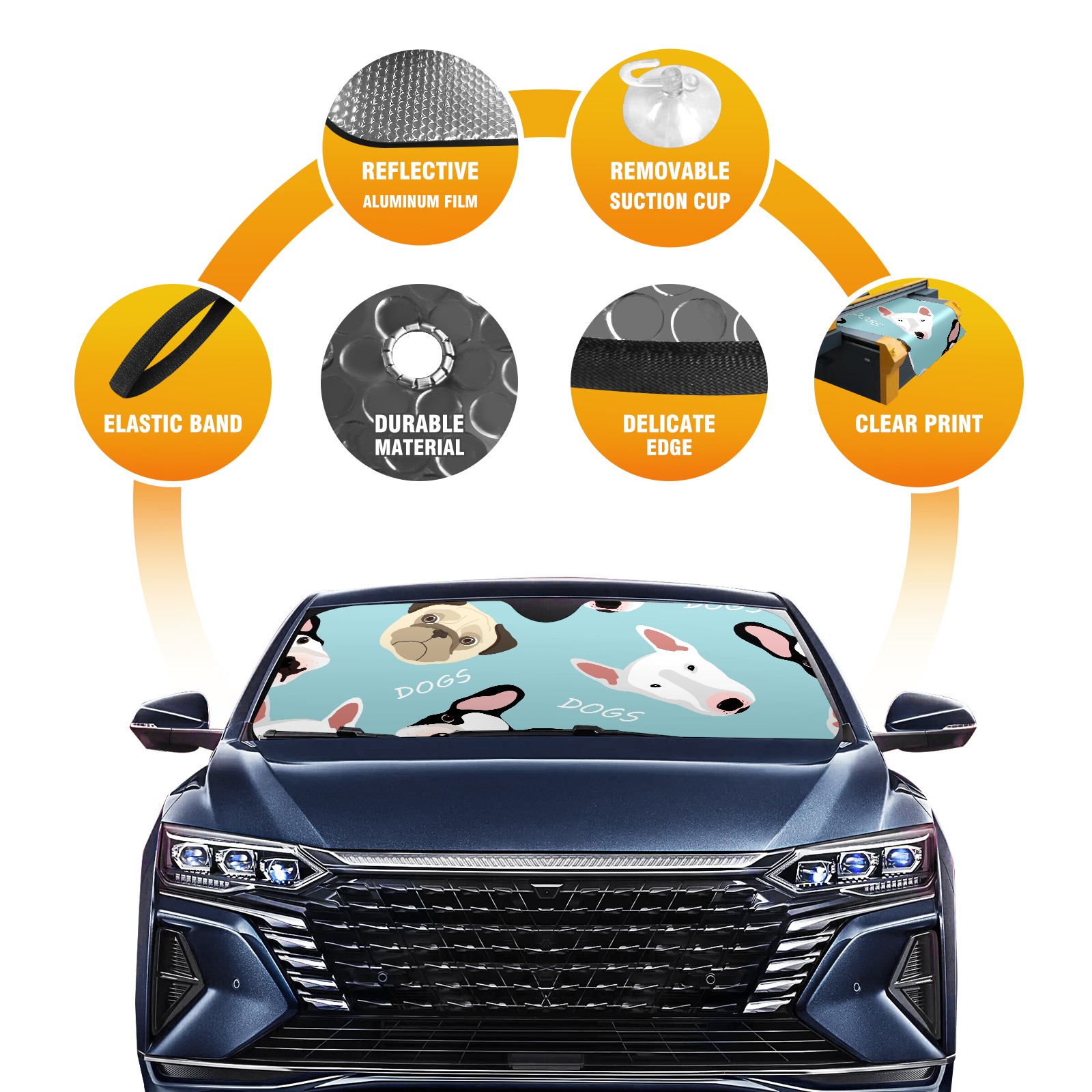 Car Windshield Sun Shade For Front Window Dogs Foldable Vehicle Windshield Car Sun Visor Covers Automotive Window Protector Car Camping Privacy Sun Blocker
