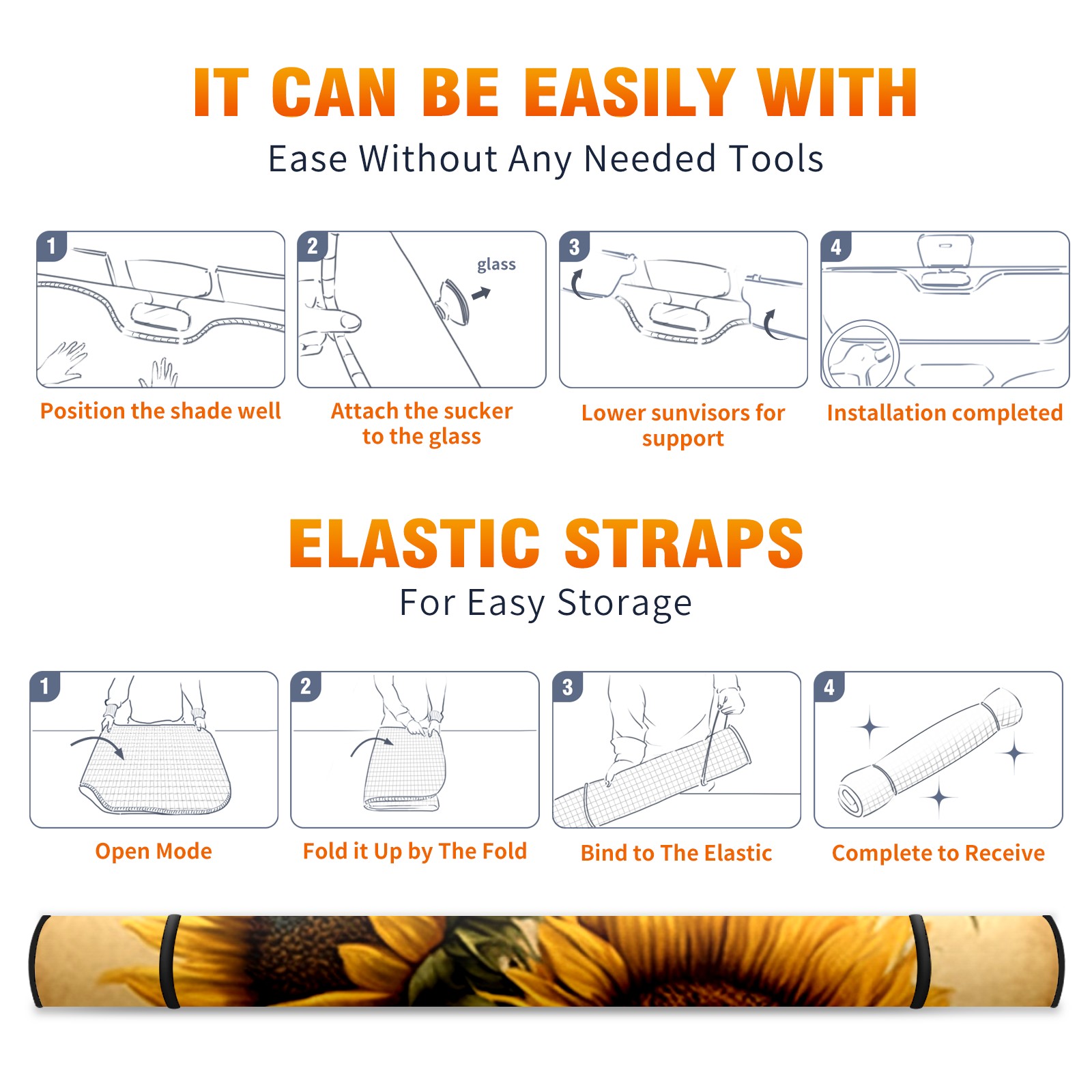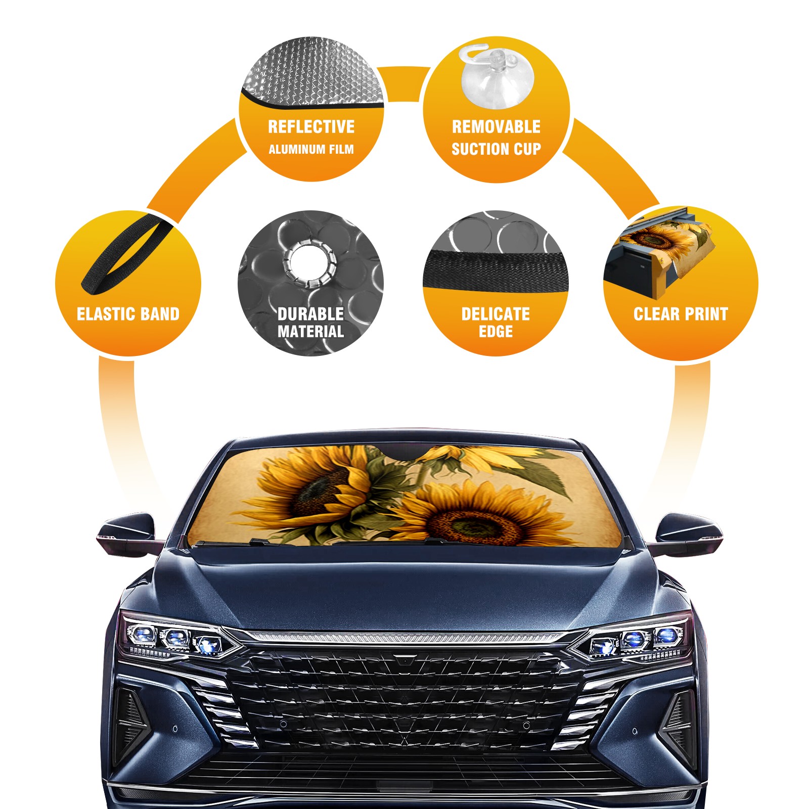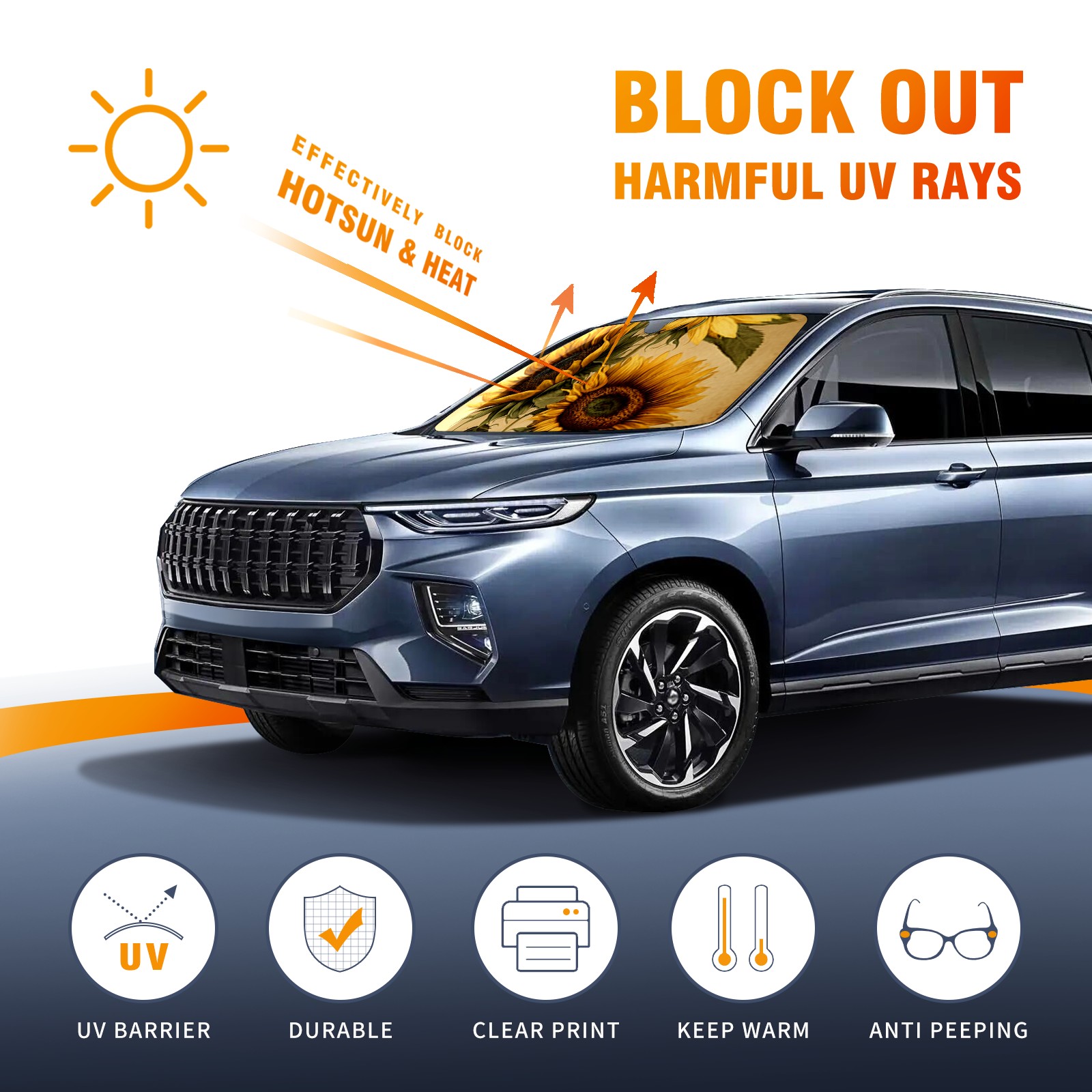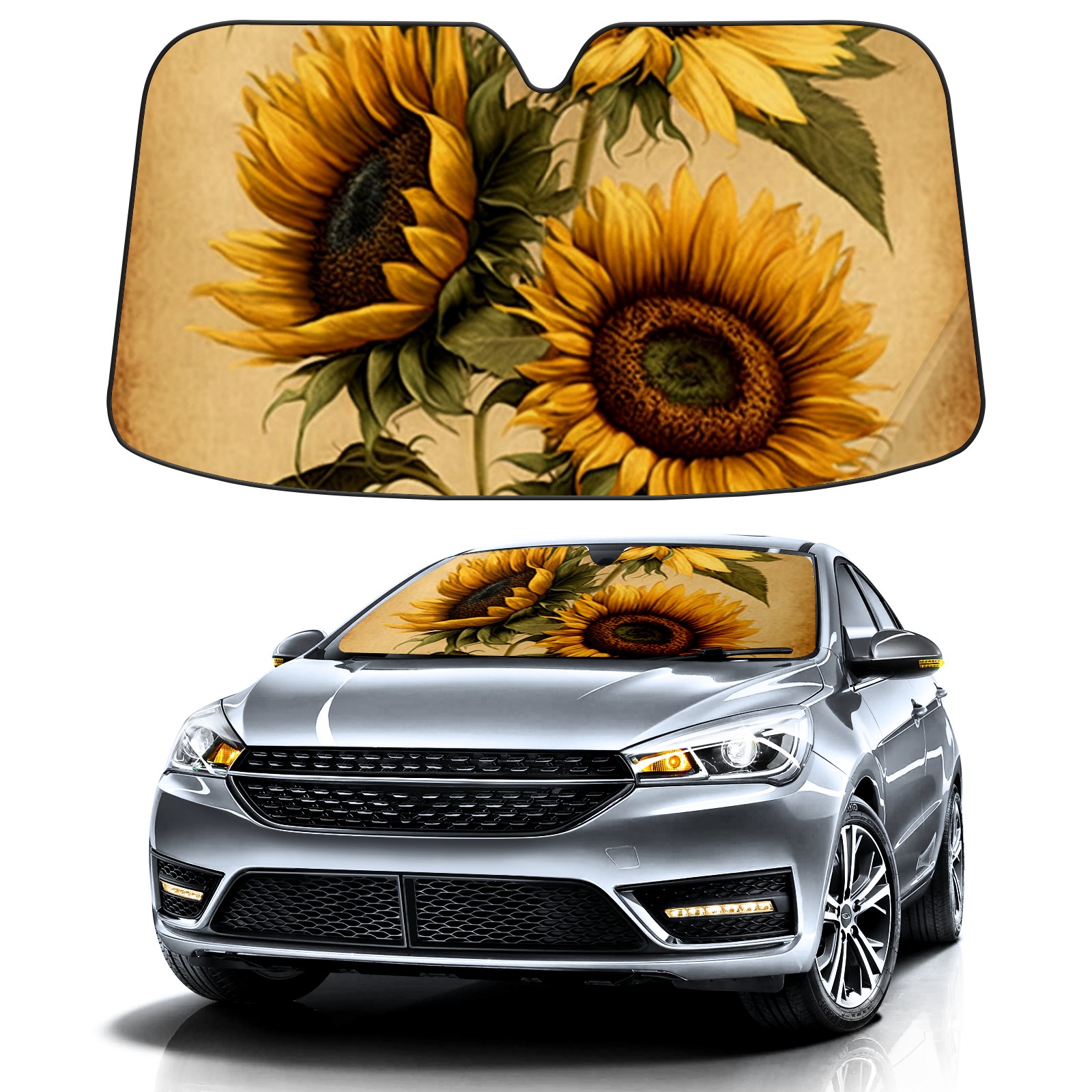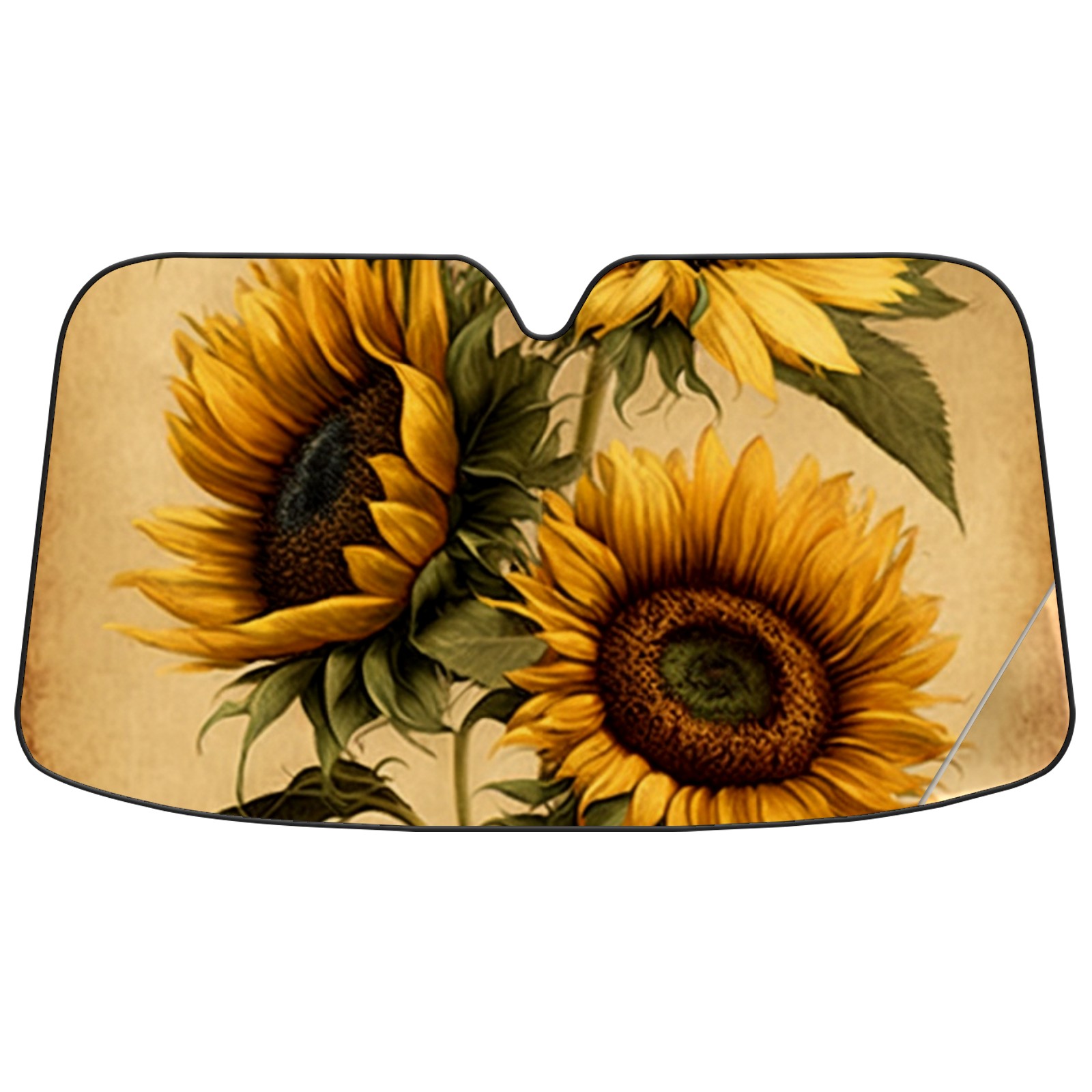 Car Windshield Sun Shade For Front Window Sunflowers Foldable Vehicle Windshield Car Sun Visor Covers Automotive Window Protector Car Camping Privacy Sun Blocker