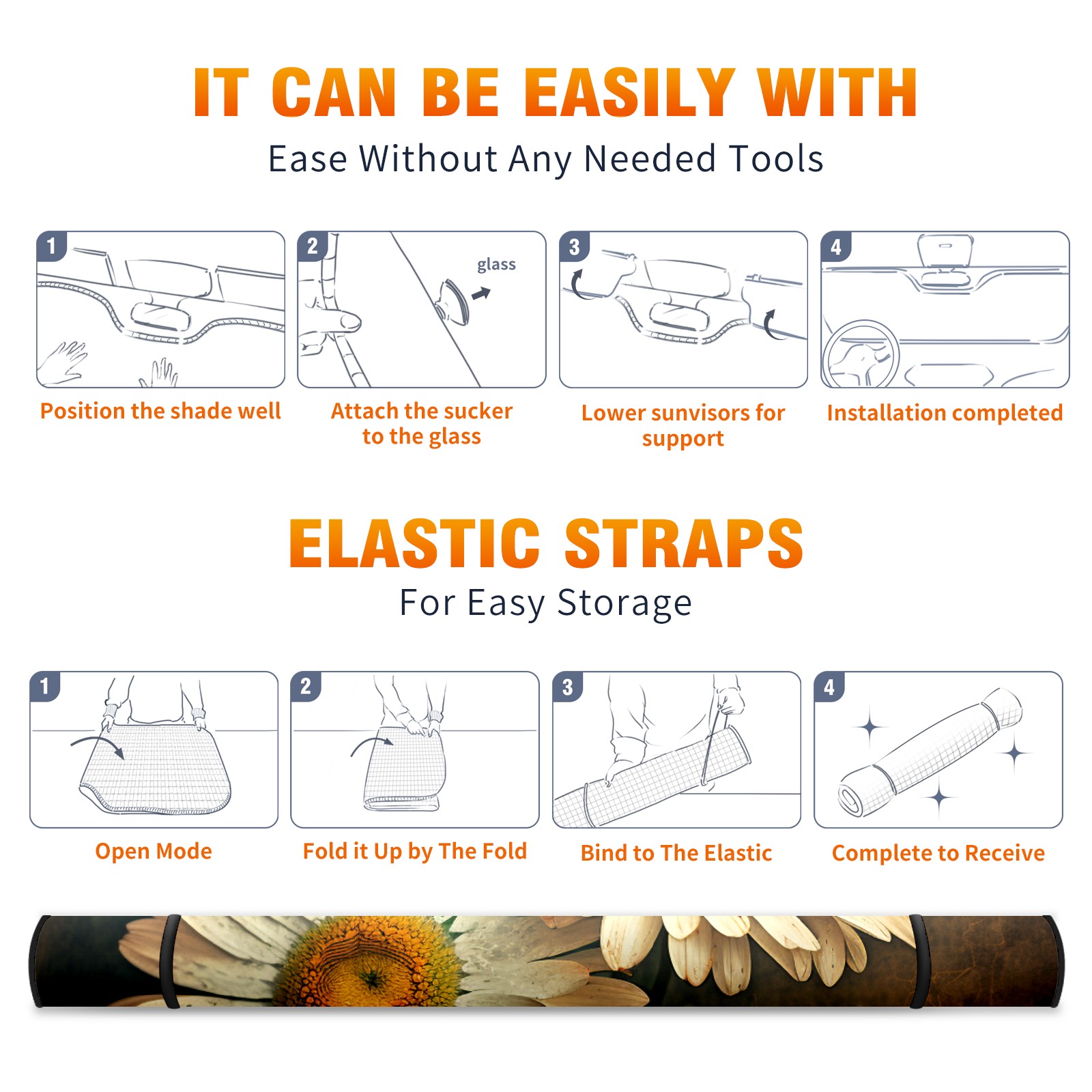 • Diameter /Size 63"L x 33.5"W Made from excellent materials which makes it sturdy and protects the car from the sun. Easy to use and pack. Makes the interior of the car cooler.You can easily stash the sunshade in the storage bag or store long term.It open and closes easy. Also the leather storage bag is durable and easy to put the umbrella back into.This windshield sunshade provides complete coverage and keeps your car interior cool under direct sun. It is easy to open and position under the windshield and around the rear-view mirror. Makes Your Car Easy To Identify, Perfect For Finding Your Car In Crowded Parking Lots And Garages.Great Choice: It Is A Great Gift For Dad, Boyfriend, Brother, Brother And Uncle, Friends, Classmates, Family And So On. Notice: Due To Difference Computer Monitors, The Color Maybe Slightly Different From Picture. As Different Measurement Methods, Measurement Data Will Float Within 2%.I Hope You Understand. If You Have Any Question About The Item Please Do Not Hesitate To Contact Us Immediately And We Will Give You A Satisfactory Reply Within 24 Hours.