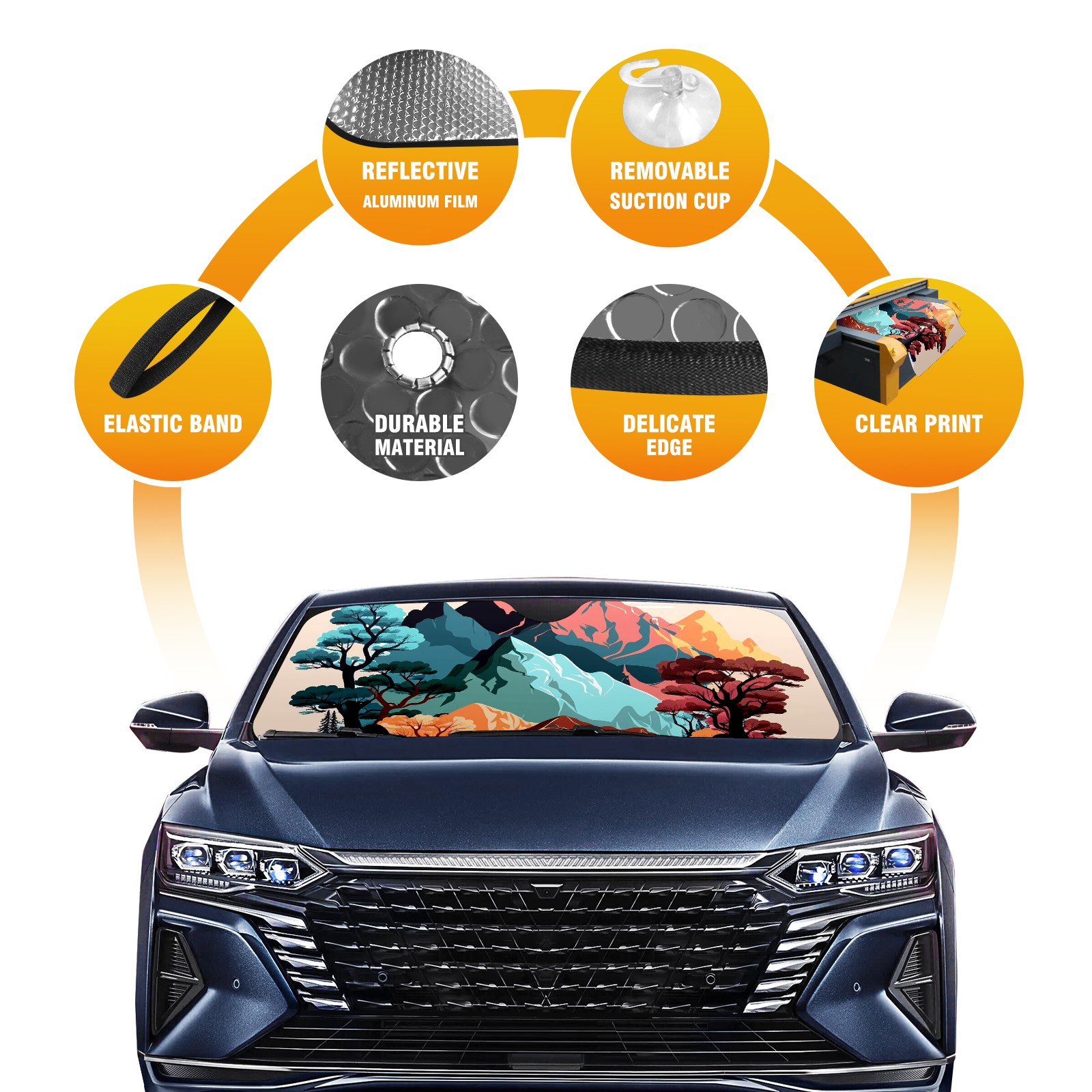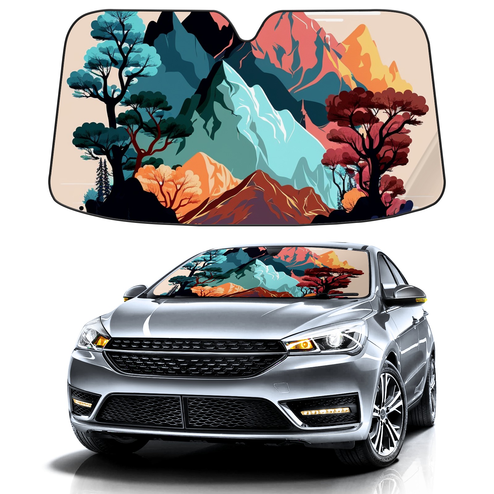 Car Windshield Sun Shade For Front Window Havengep_Mountains_Nature_Scenery_Spare_Vector_color_block_3412d0 Foldable Vehicle Windshield Car Sun Visor Covers Automotive Window Protector Car Camping Privacy Sun Blocker
