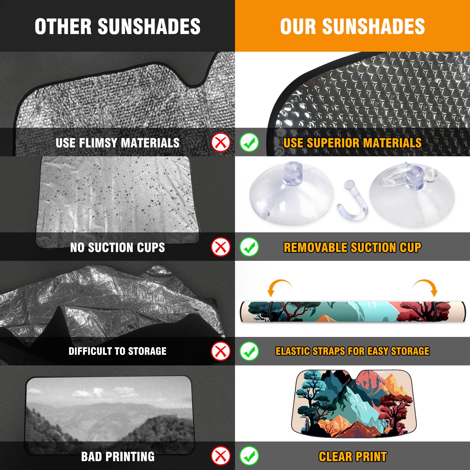 • Diameter /Size 63"L x 33.5"W Made from excellent materials which makes it sturdy and protects the car from the sun. Easy to use and pack. Makes the interior of the car cooler.You can easily stash the sunshade in the storage bag or store long term.It open and closes easy. Also the leather storage bag is durable and easy to put the umbrella back into.This windshield sunshade provides complete coverage and keeps your car interior cool under direct sun. It is easy to open and position under the windshield and around the rear-view mirror. Makes Your Car Easy To Identify, Perfect For Finding Your Car In Crowded Parking Lots And Garages.Great Choice: It Is A Great Gift For Dad, Boyfriend, Brother, Brother And Uncle, Friends, Classmates, Family And So On. Notice: Due To Difference Computer Monitors, The Color Maybe Slightly Different From Picture. As Different Measurement Methods, Measurement Data Will Float Within 2%.I Hope You Understand. If You Have Any Question About The Item Please Do Not Hesitate To Contact Us Immediately And We Will Give You A Satisfactory Reply Within 24 Hours.