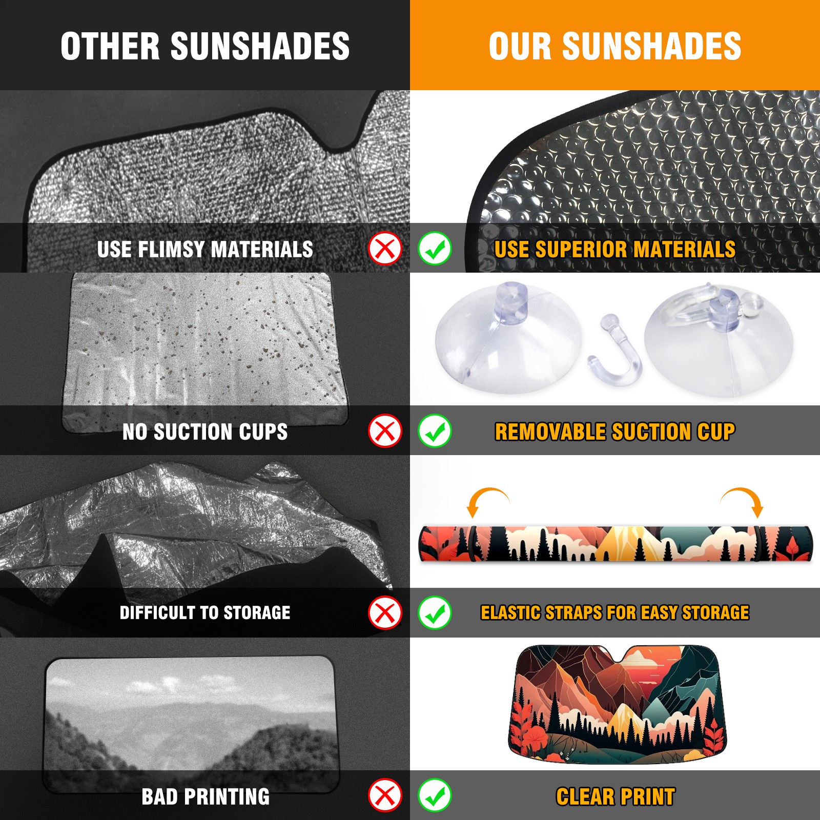 • Diameter /Size 63"L x 33.5"W Made from excellent materials which makes it sturdy and protects the car from the sun. Easy to use and pack. Makes the interior of the car cooler.You can easily stash the sunshade in the storage bag or store long term.It open and closes easy. Also the leather storage bag is durable and easy to put the umbrella back into.This windshield sunshade provides complete coverage and keeps your car interior cool under direct sun. It is easy to open and position under the windshield and around the rear-view mirror. Makes Your Car Easy To Identify, Perfect For Finding Your Car In Crowded Parking Lots And Garages.Great Choice: It Is A Great Gift For Dad, Boyfriend, Brother, Brother And Uncle, Friends, Classmates, Family And So On. Notice: Due To Difference Computer Monitors, The Color Maybe Slightly Different From Picture. As Different Measurement Methods, Measurement Data Will Float Within 2%.I Hope You Understand. If You Have Any Question About The Item Please Do Not Hesitate To Contact Us Immediately And We Will Give You A Satisfactory Reply Within 24 Hours.